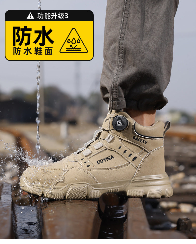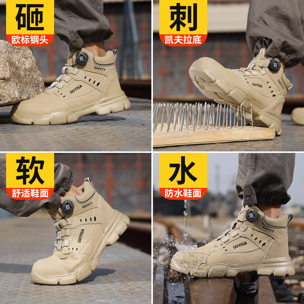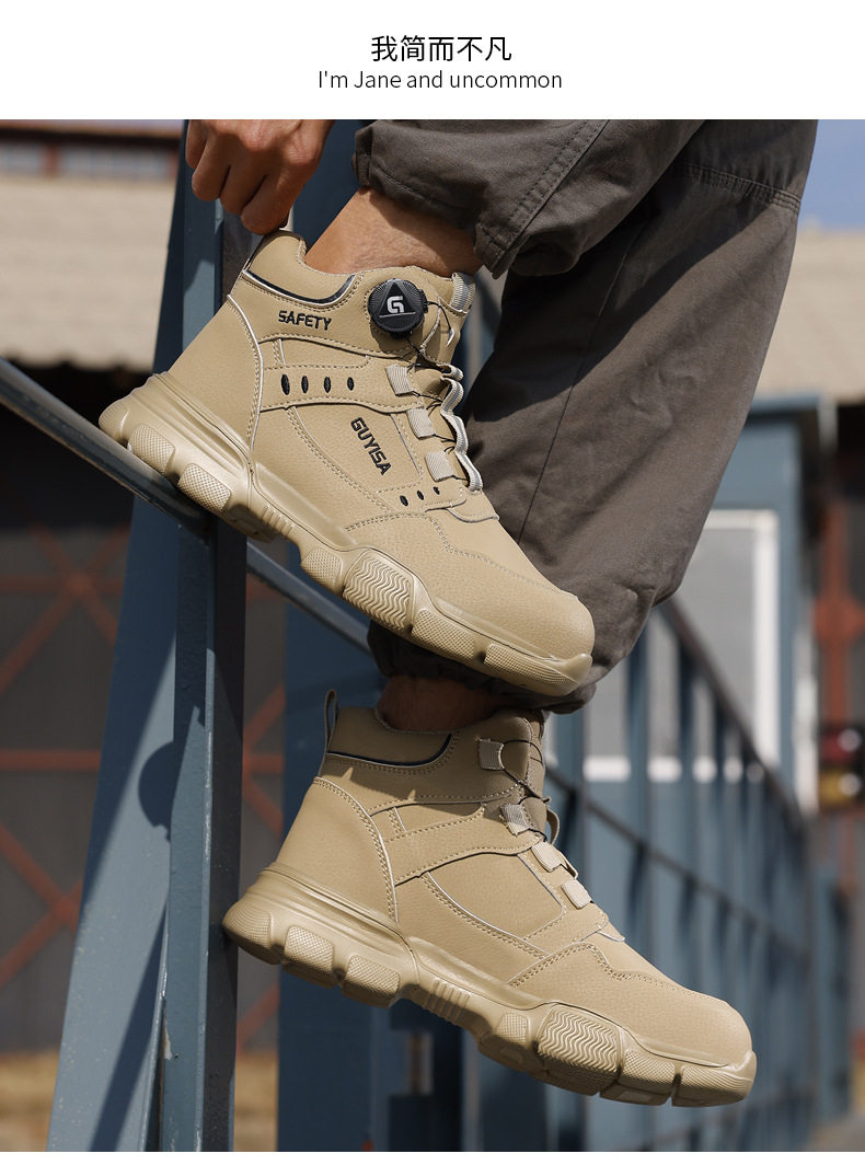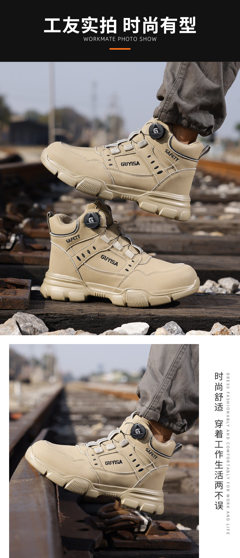 High-Top Fur-Lined Safety Shoes, Anti-Smash, Anti-Puncture, Men's Shoes with Rotating Smart Buckle, Wear-Resistant, No Need to Tie Shoelaces, Safety Shoes