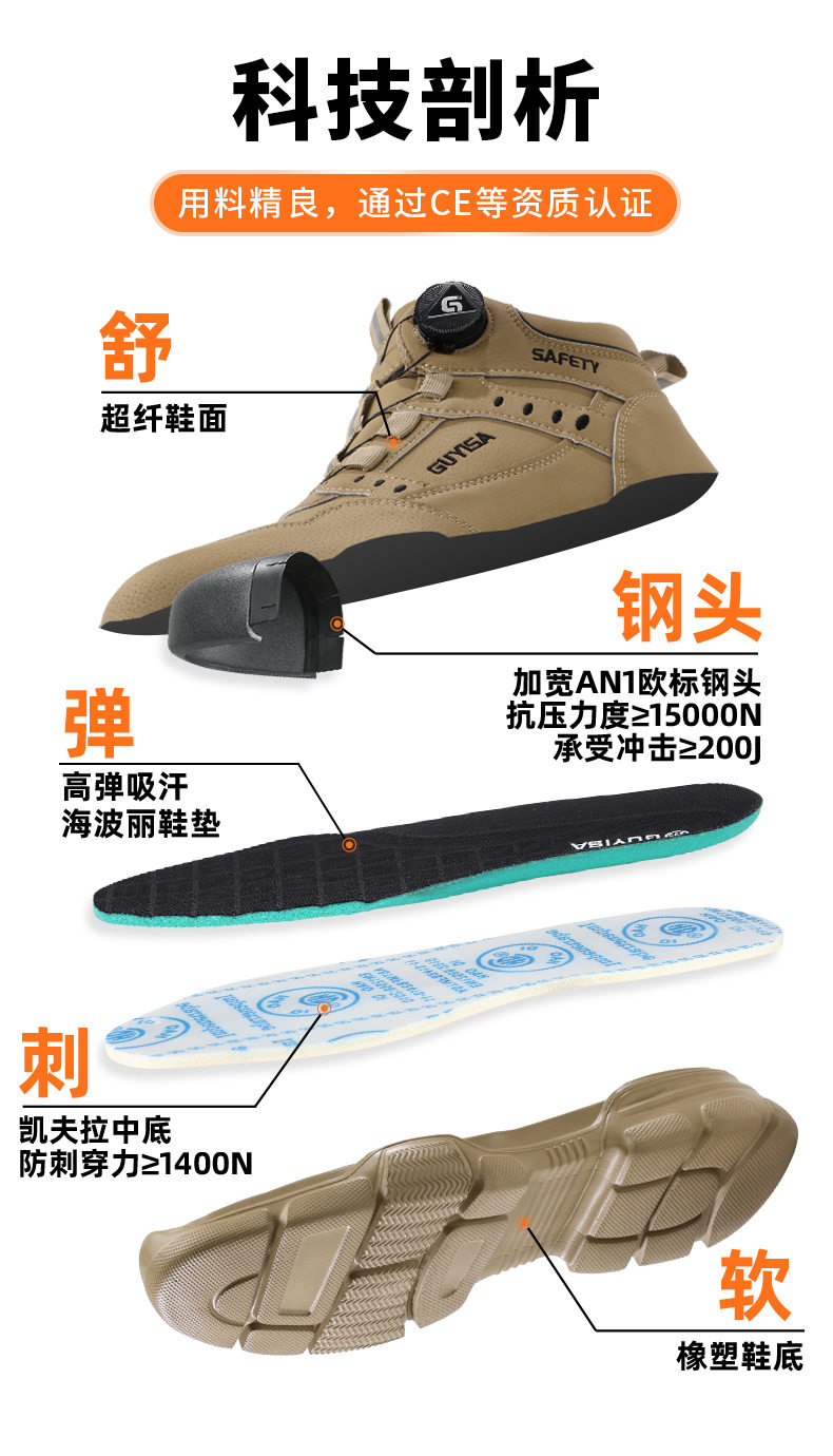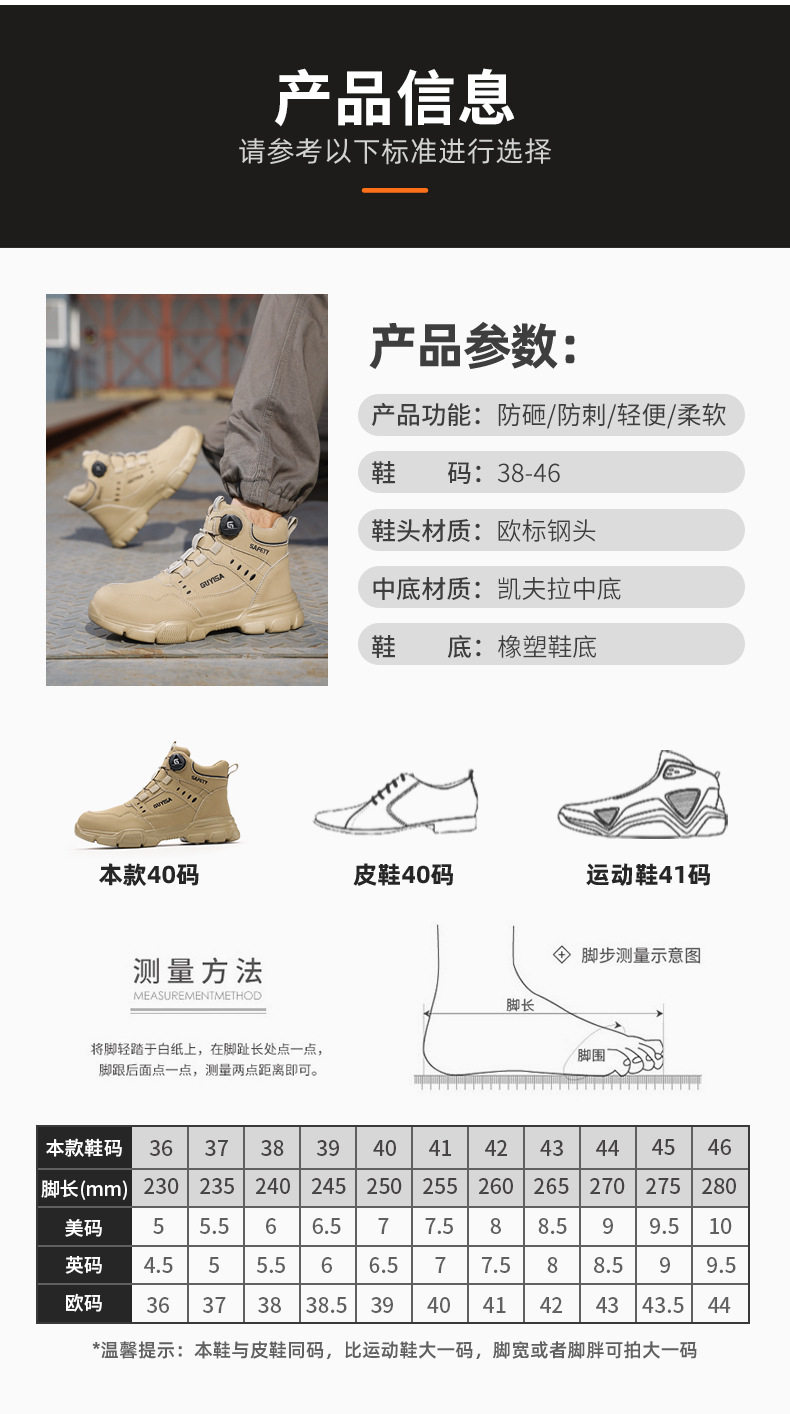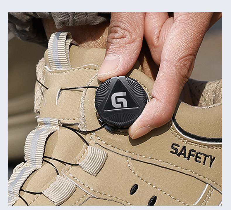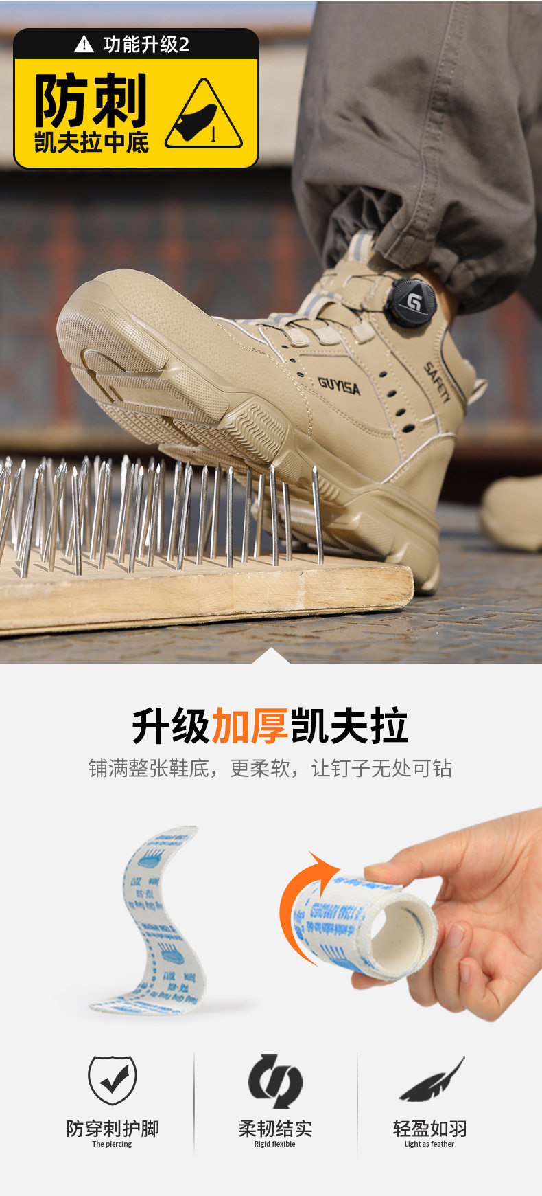High-Top Fur-Lined Safety Shoes, Anti-Smash, Anti-Puncture, Men's Shoes with Rotating Smart Buckle, Wear-Resistant, No Need to Tie Shoelaces, Safety Shoes