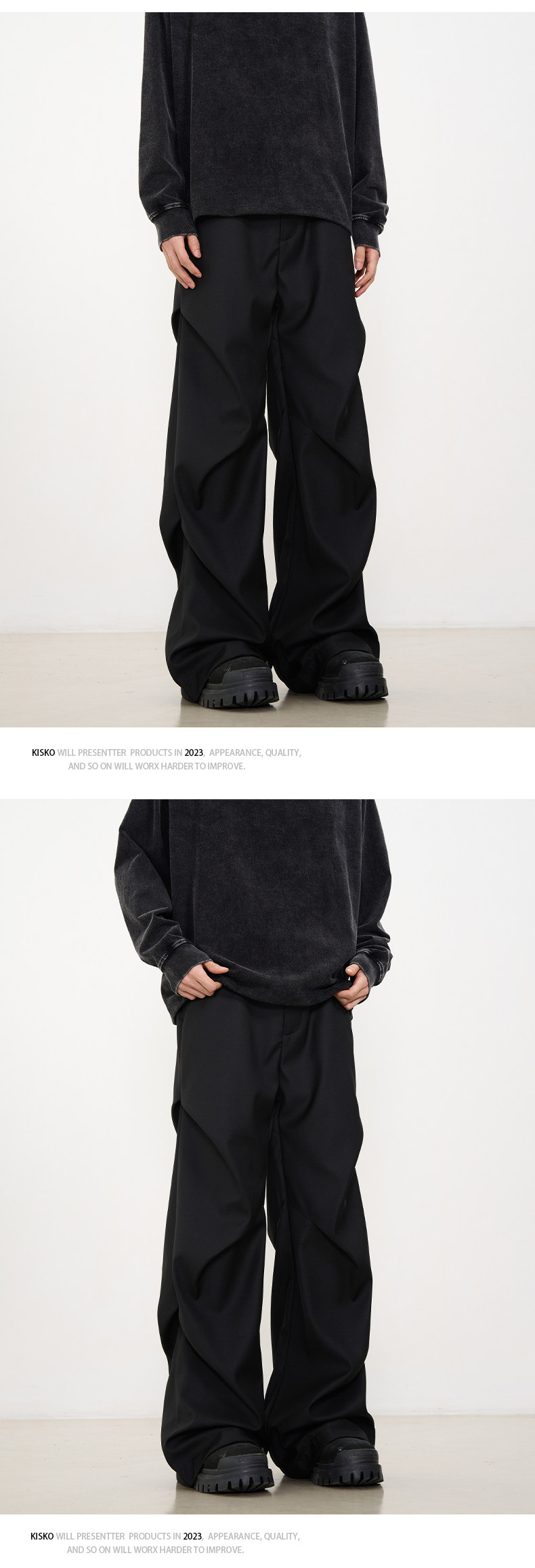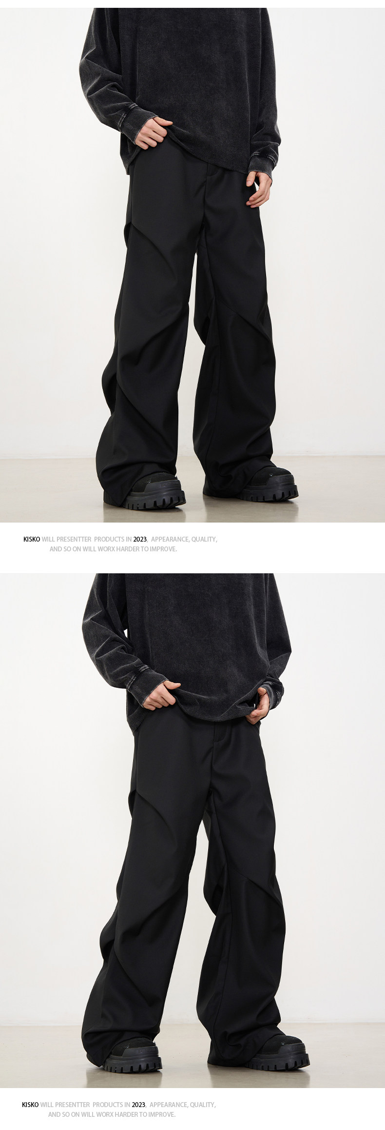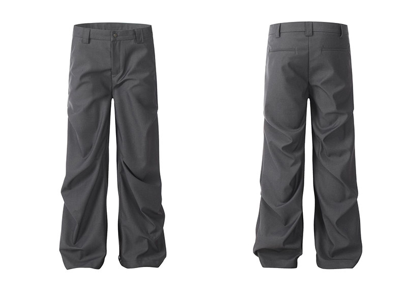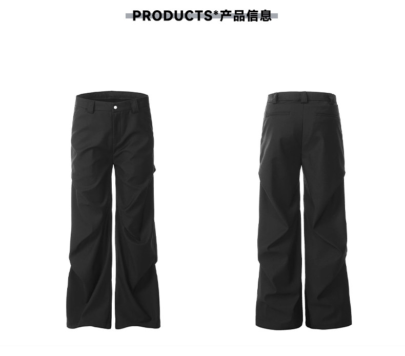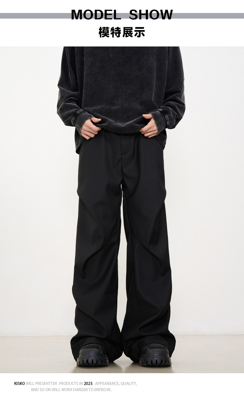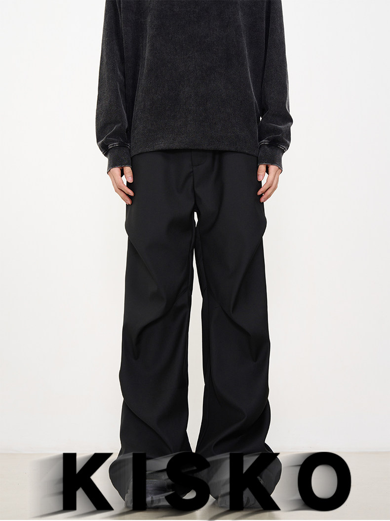 Kisko American-Style Niche Pleated Floor-Length Flared Casual Pants with a High-End Feel, Loose Straight-Leg Drapey Black Dress Pants for Men