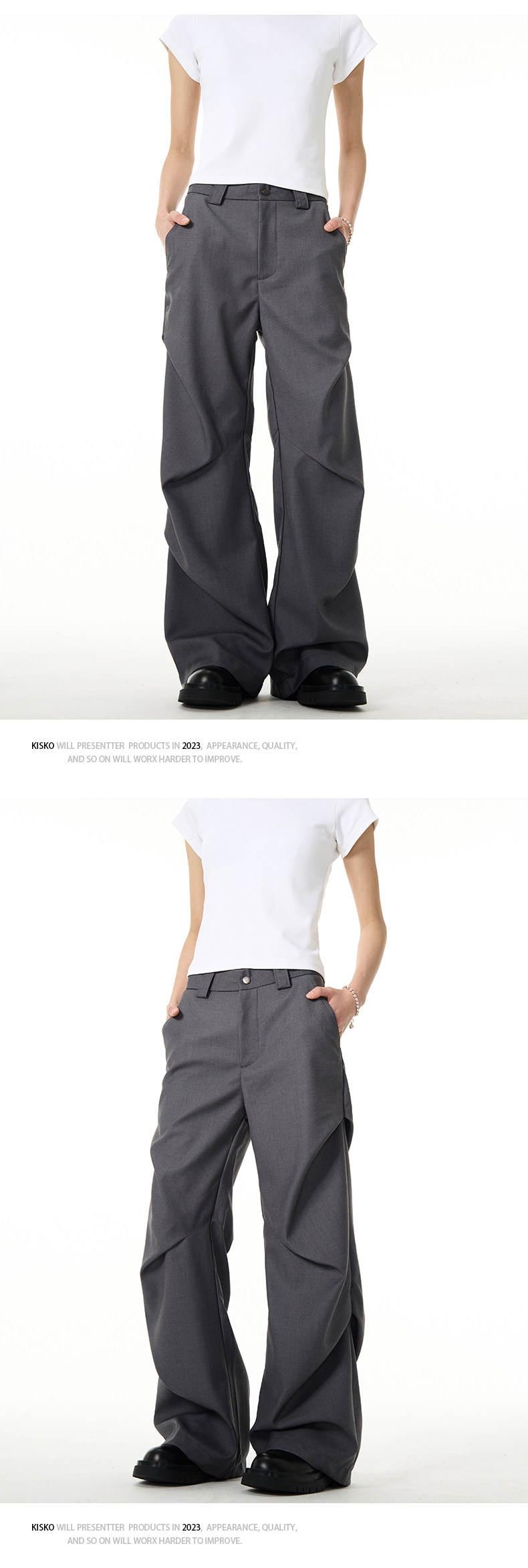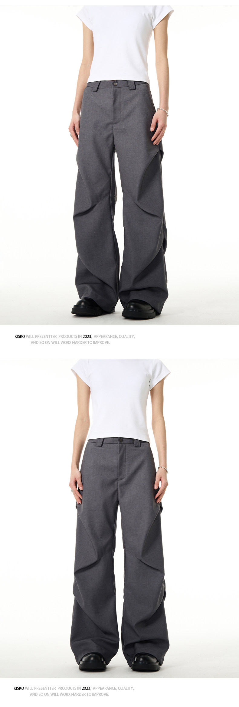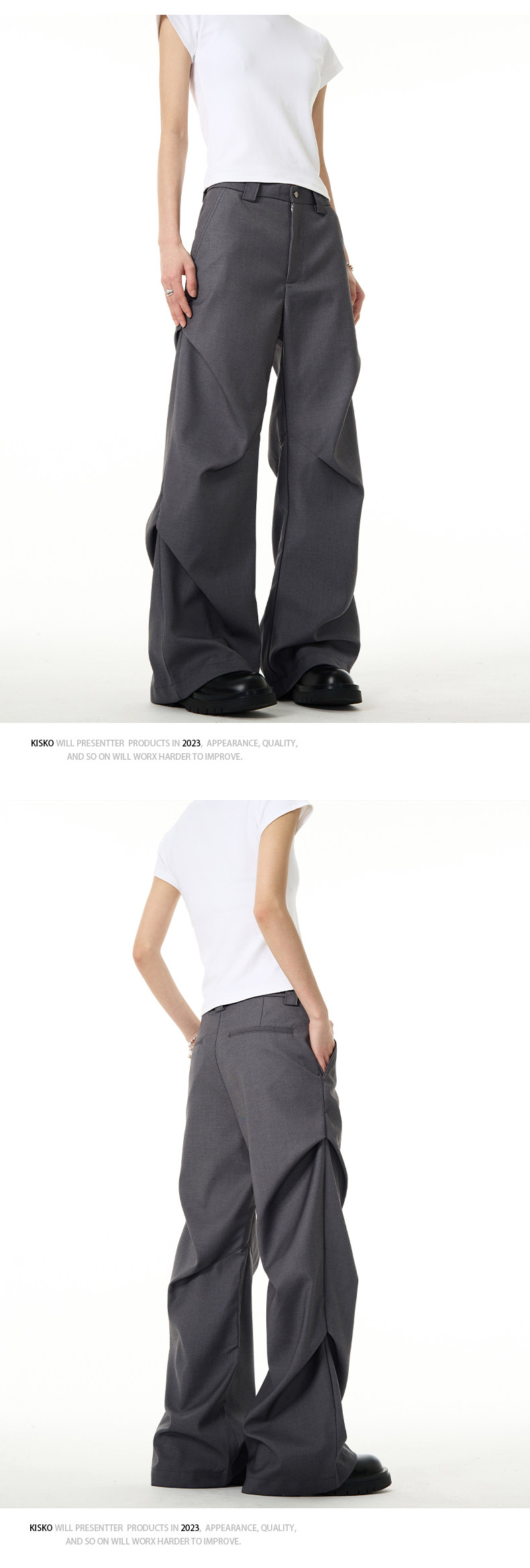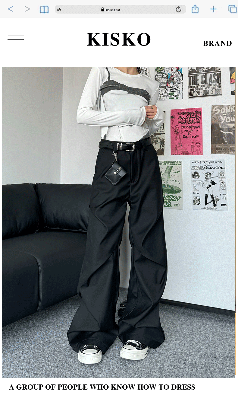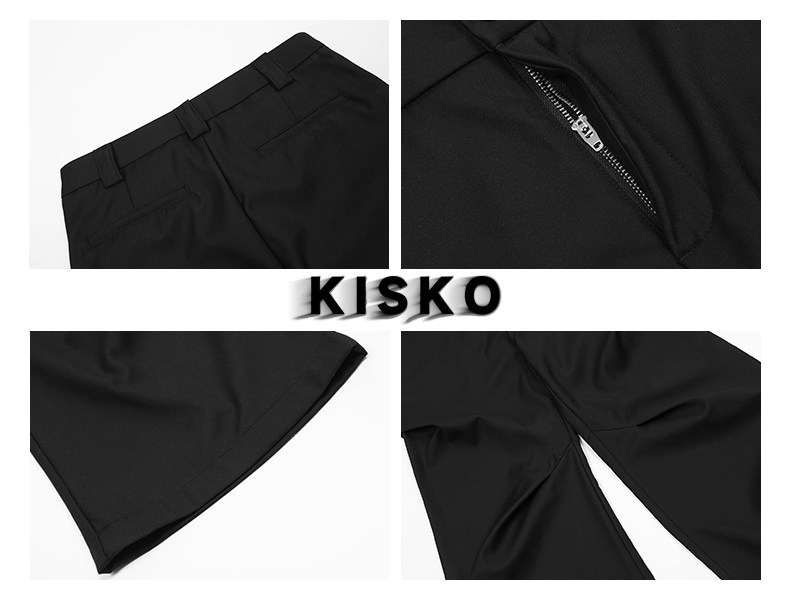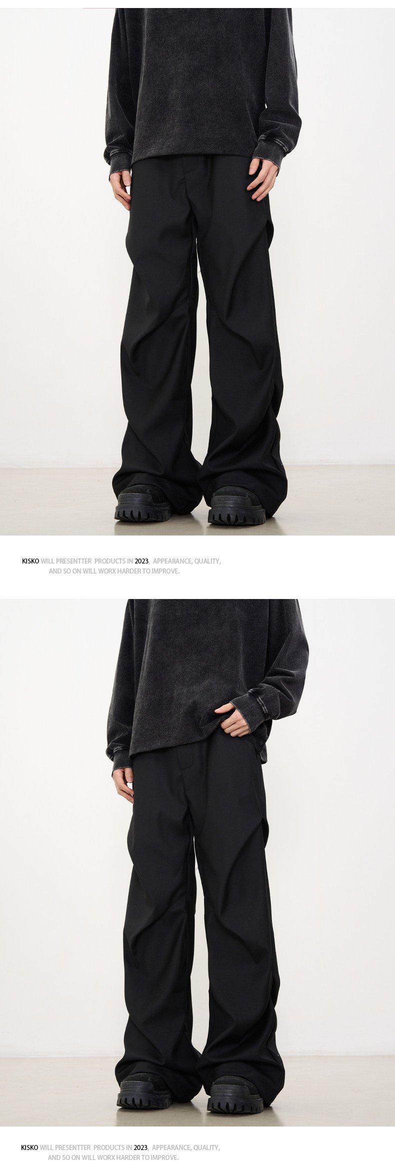 Kisko American-Style Niche Pleated Floor-Length Flared Casual Pants with a High-End Feel, Loose Straight-Leg Drapey Black Dress Pants for Men