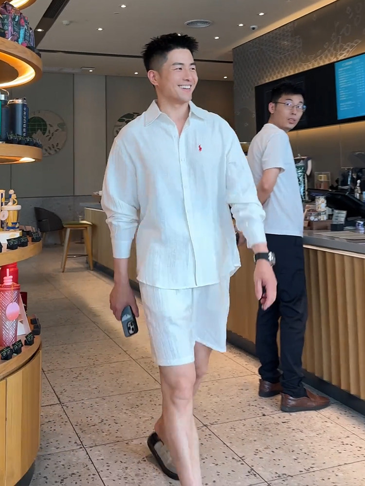 Old Money Style Men's Outfit, a Trendy and Handsome Tencel Linen Shirt Set with a High-End Feel, Breathable Cotton-Linen Shorts