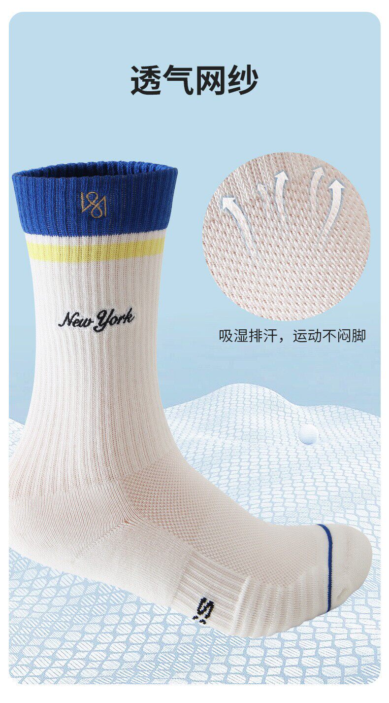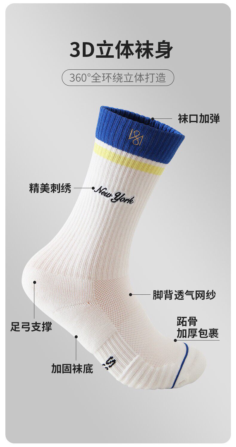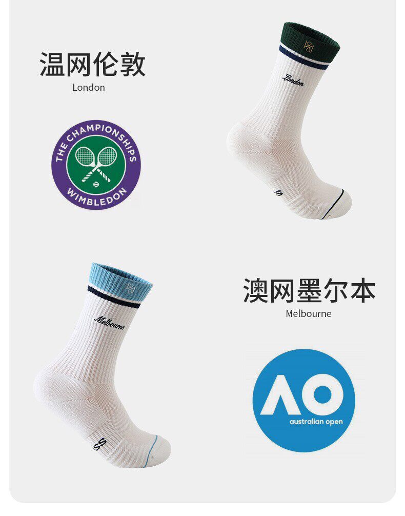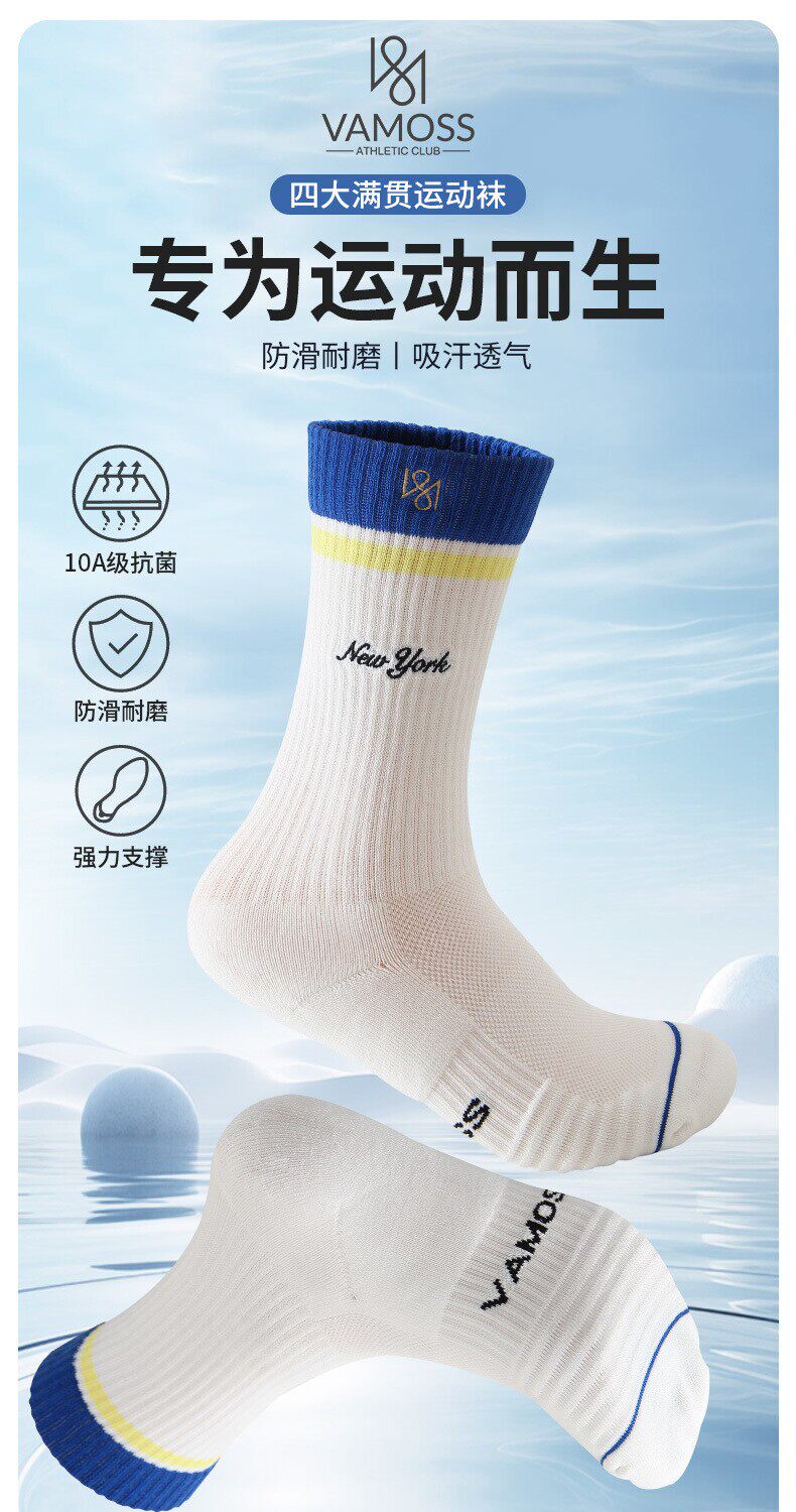 Vamoss Tennis Grand Slam Sports Socks, Antibacterial, Highly Elastic, Breathable, Sweat-Absorbent, Thickened, Original Design Embroidery