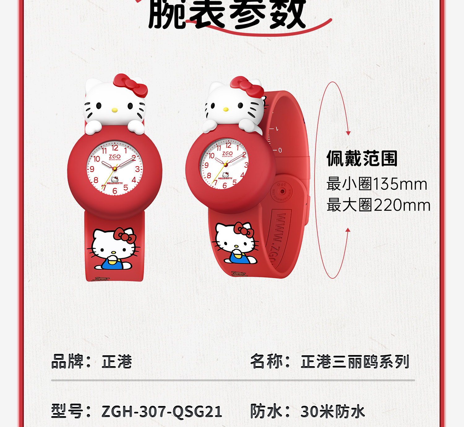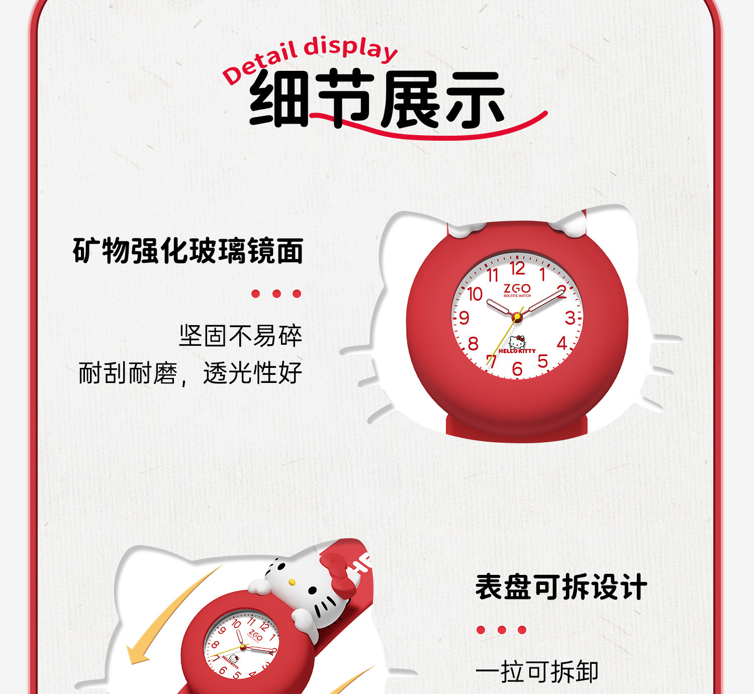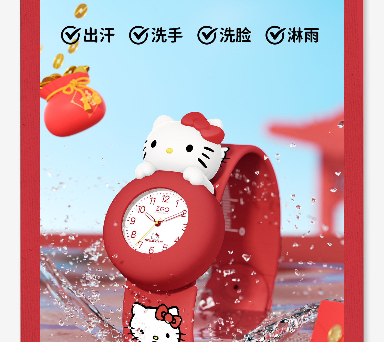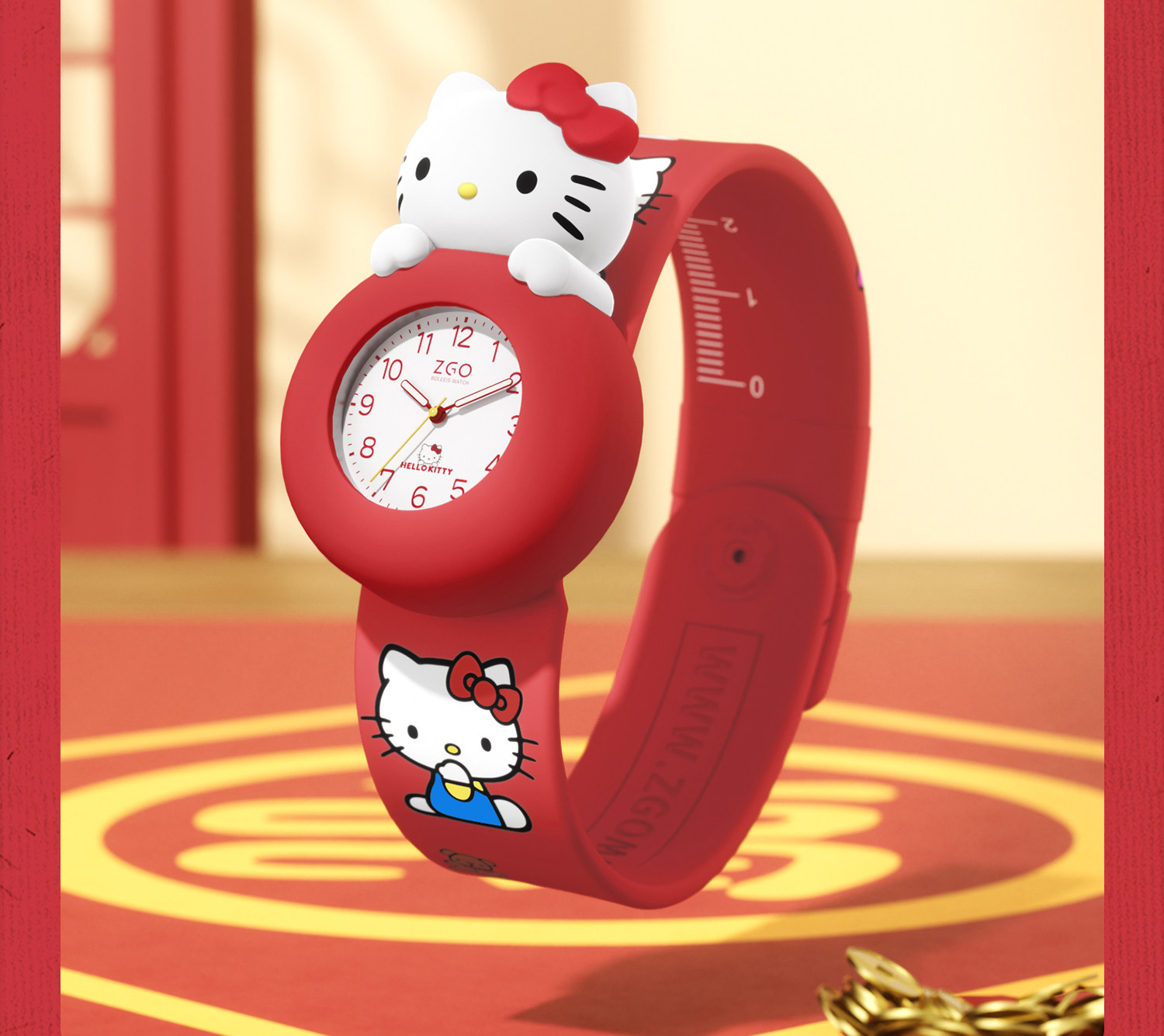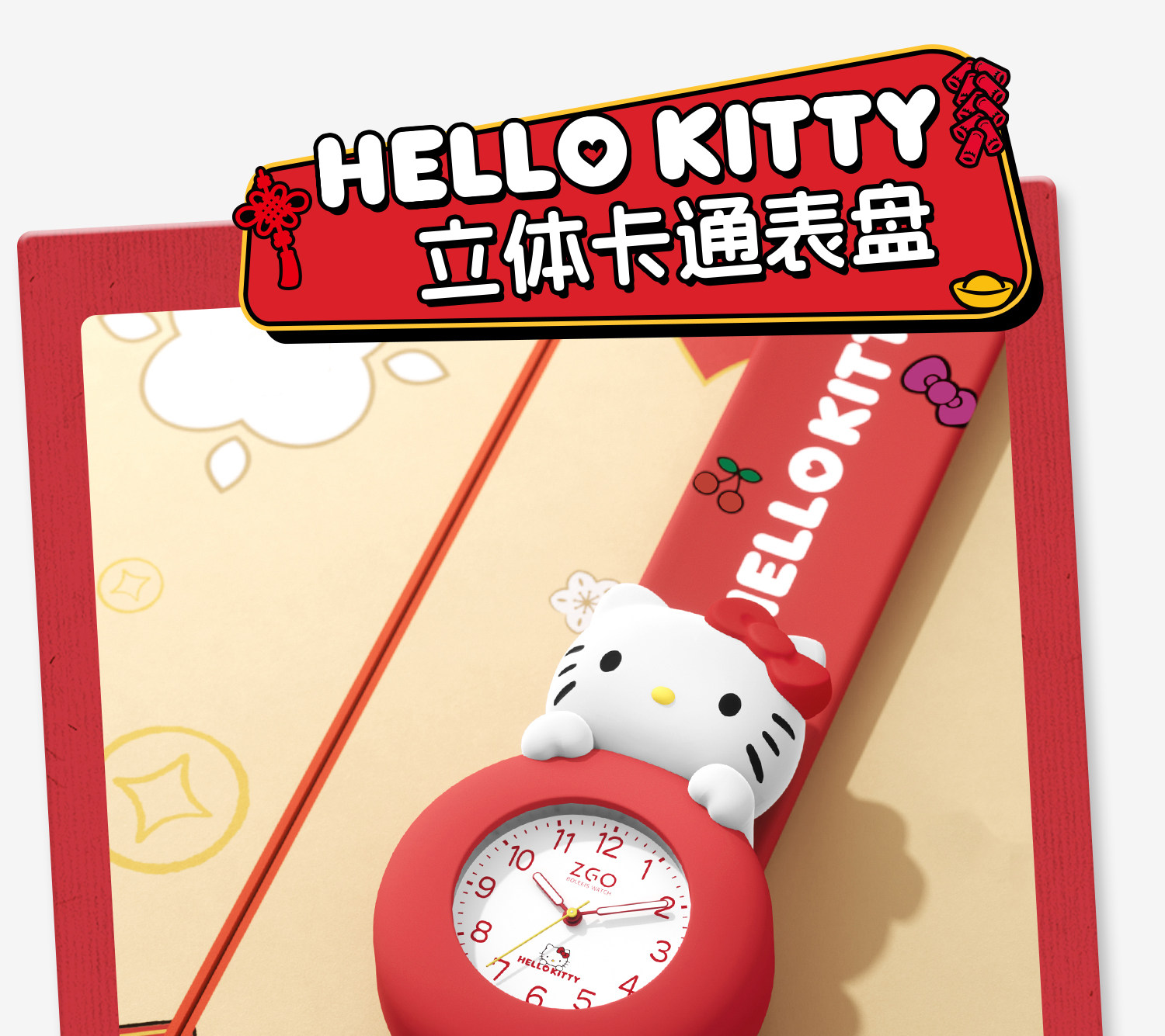 Zhenggang Zgox Hellokitty Red Kidsren's Watch for Girls 3 Years Old Baby 1 Year Old 2 Years Old Toy New Year Gift