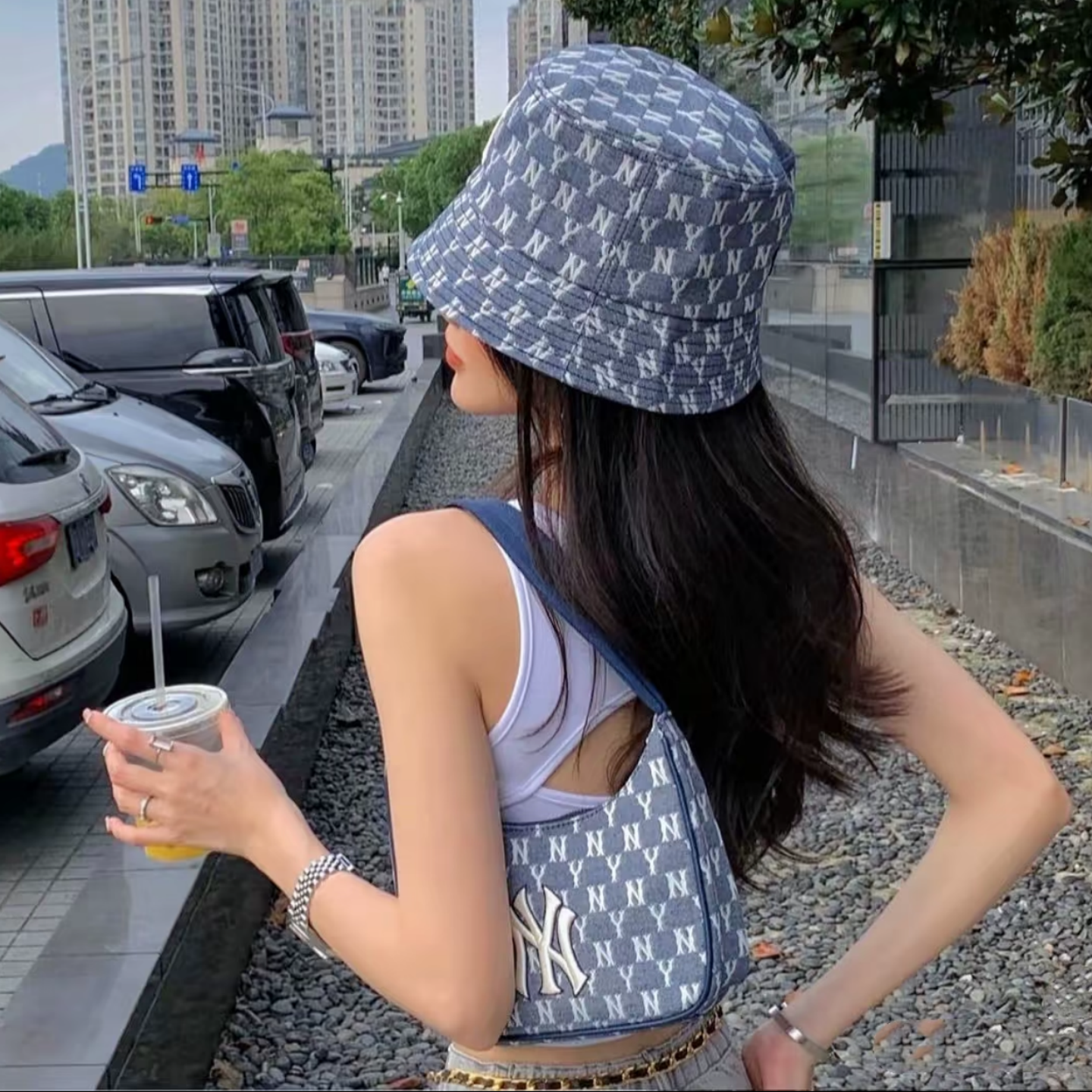 Mlb Genuine Women's Fashion Trendy Full-Print Monogram Shoulder Bag Handbag 25 Summer New Model 3Abqs011N