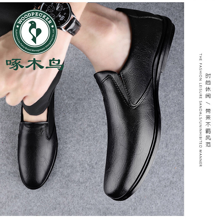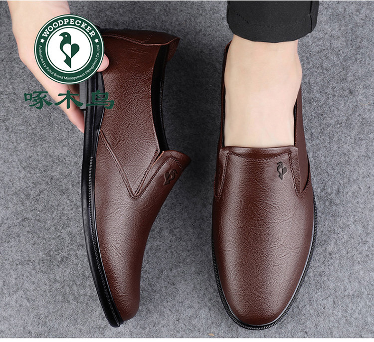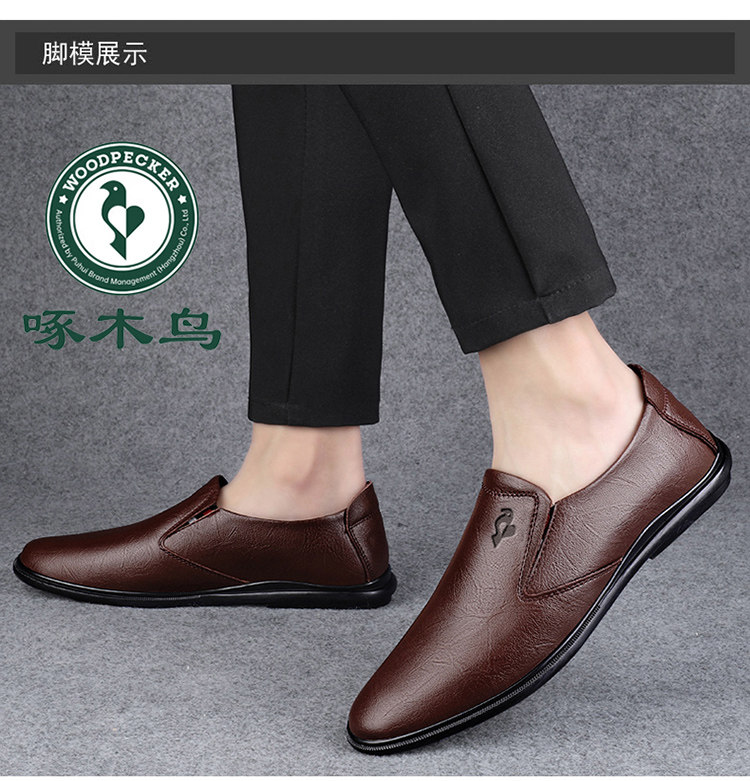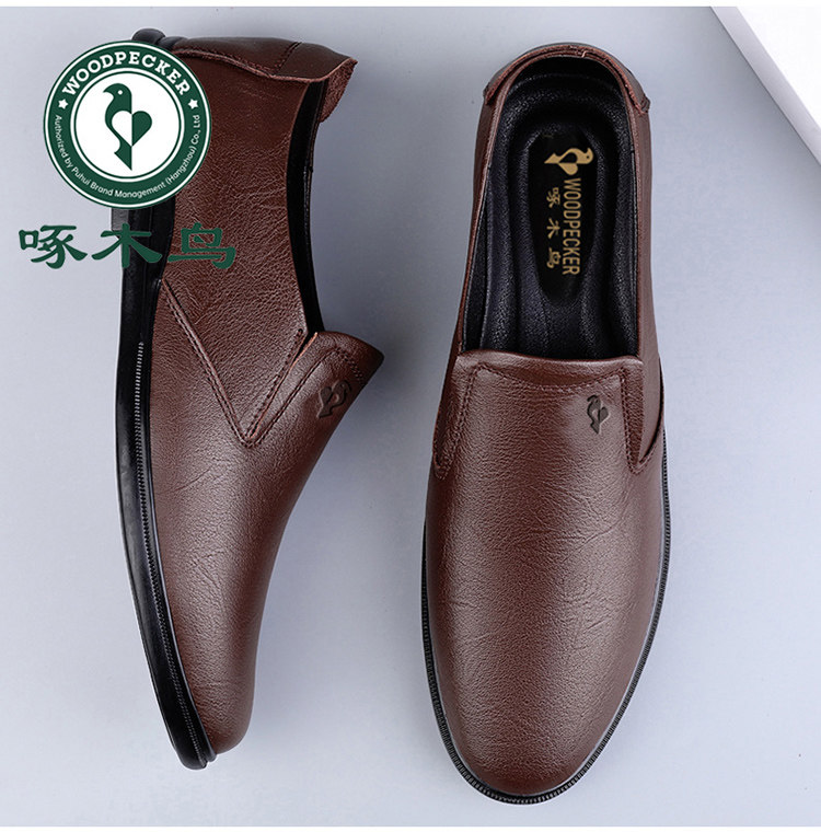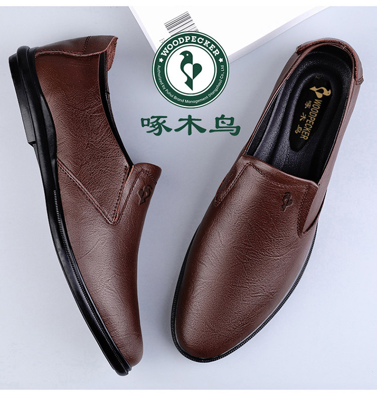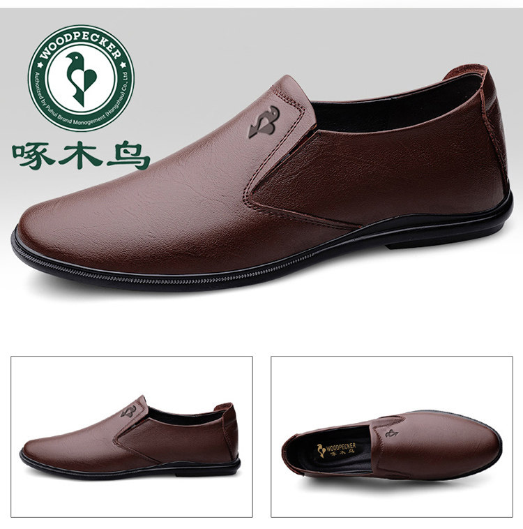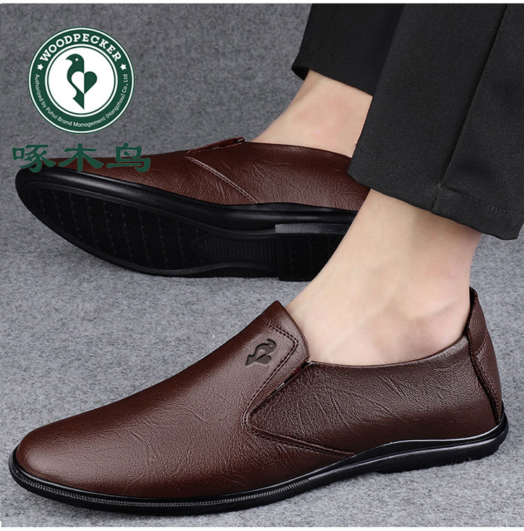Woodpecker Genuine Men's Shoes British Style Men's Casual Business Leather Shoes Men's Genuine Leather Soft Sole Breathable Anti-Odor Loafers