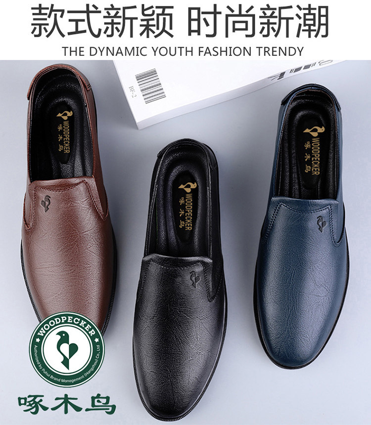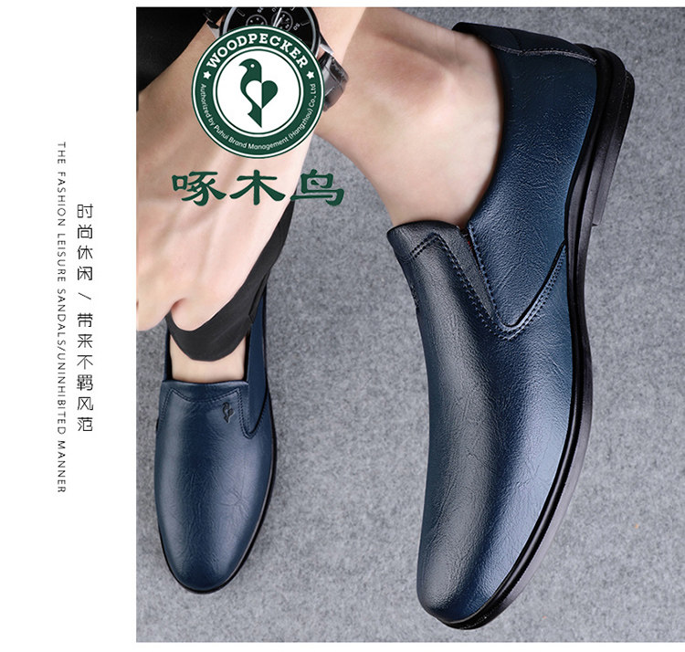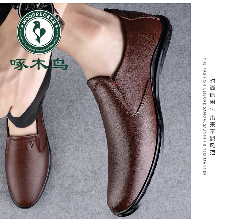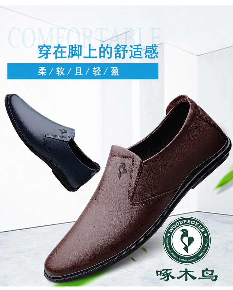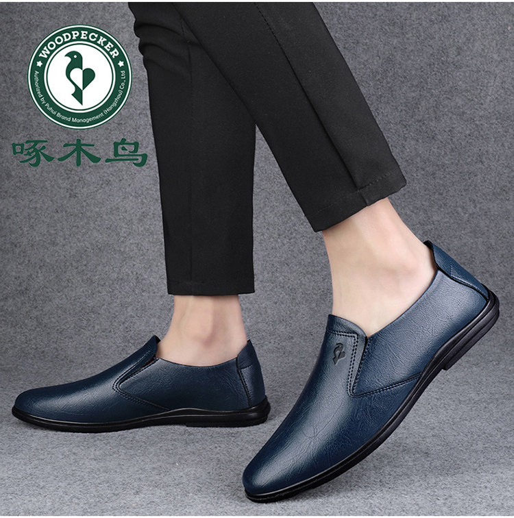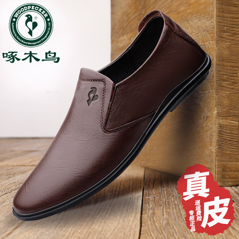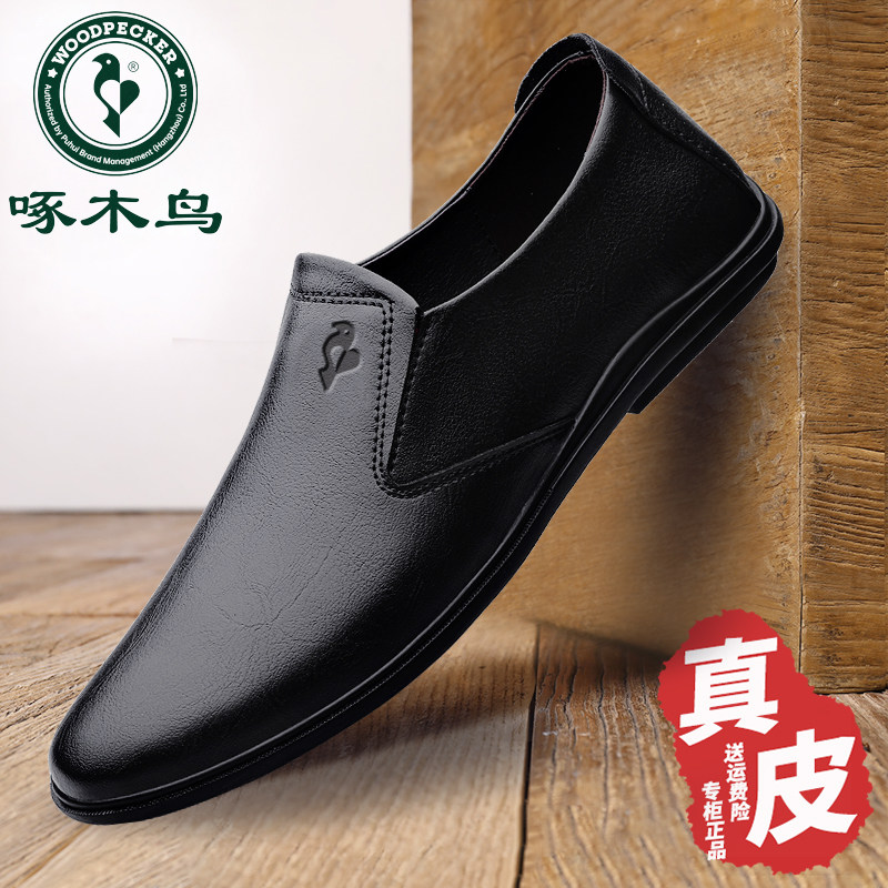 Woodpecker Genuine Men's Shoes British Style Men's Casual Business Leather Shoes Men's Genuine Leather Soft Sole Breathable Anti-Odor Loafers