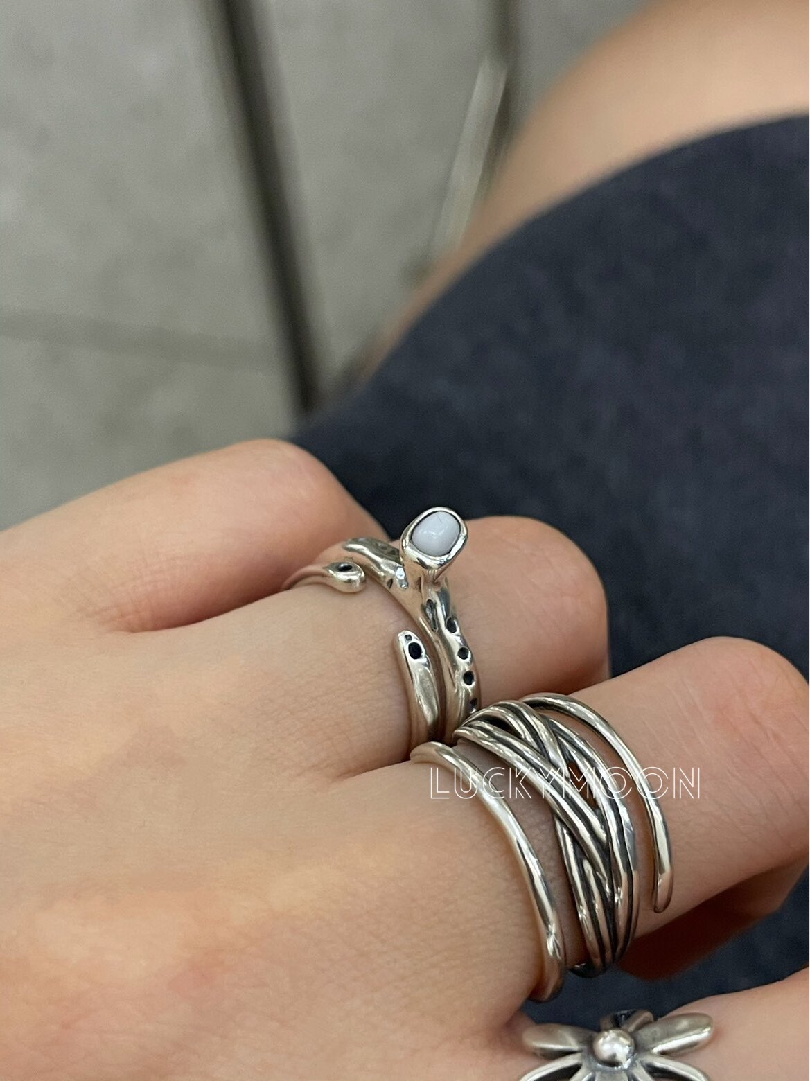 New Year's Gift Unisex Vintage Distressed Blue Zircon Inlaid Open Ring S925 All-Over Sterling Silver R295