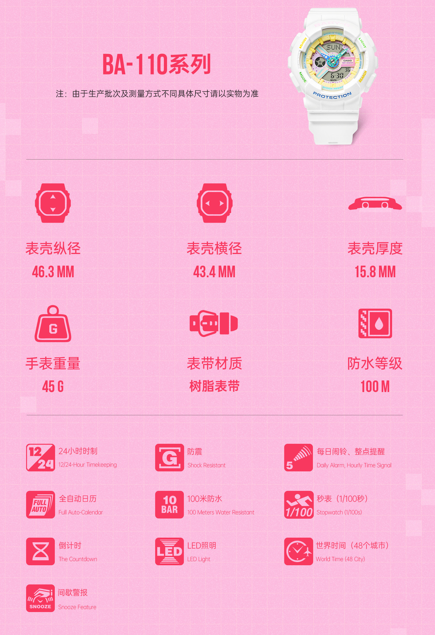 [New Year's Gift] Casio official store Ba-110Xtm Little Witch Student Watch for Girls Casio Baby-G