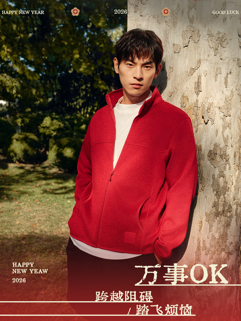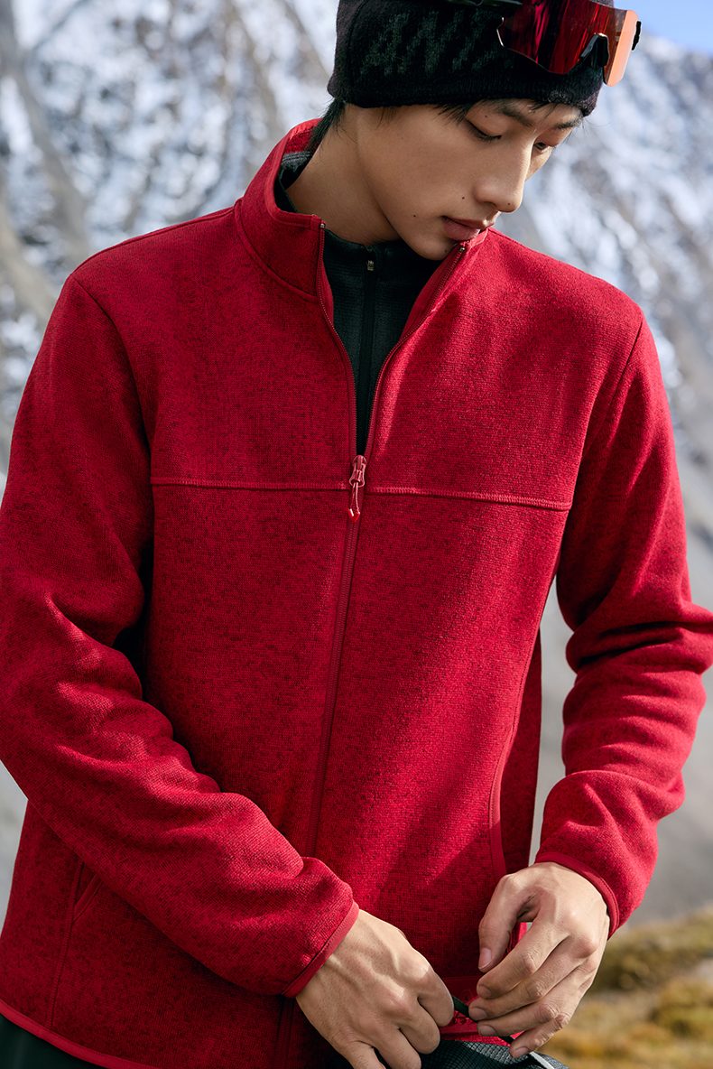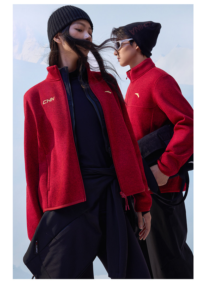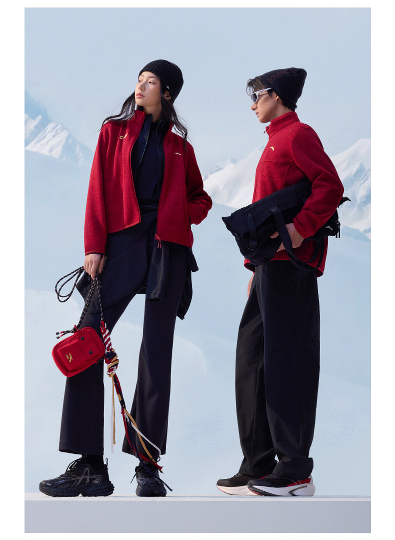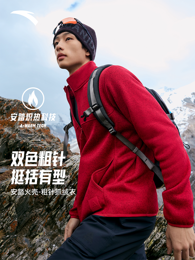 Anta Fire Shell New Year Edition Jacket | Red Fleece Lined Jacket Men's Outdoor Stand Collar Warm Sports Top