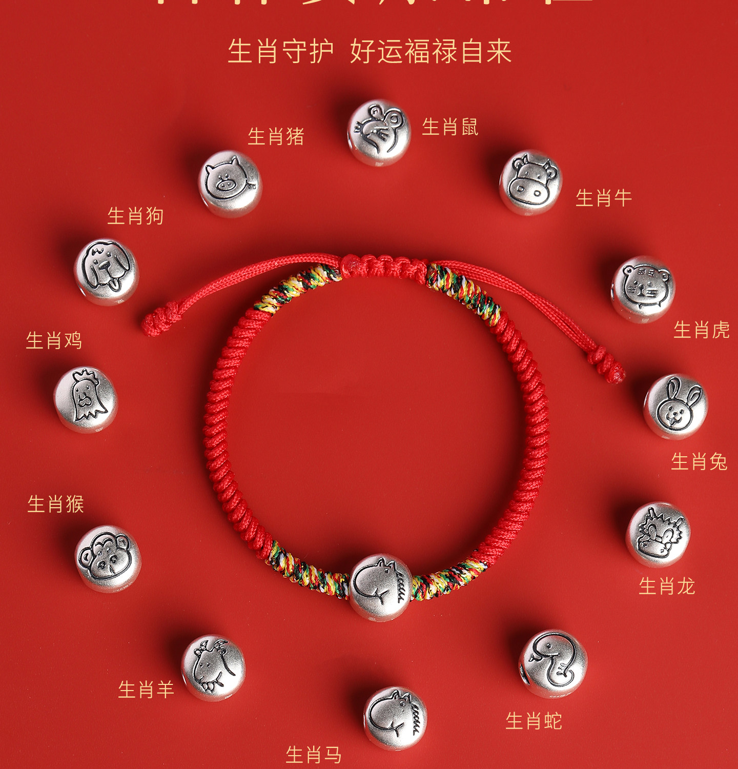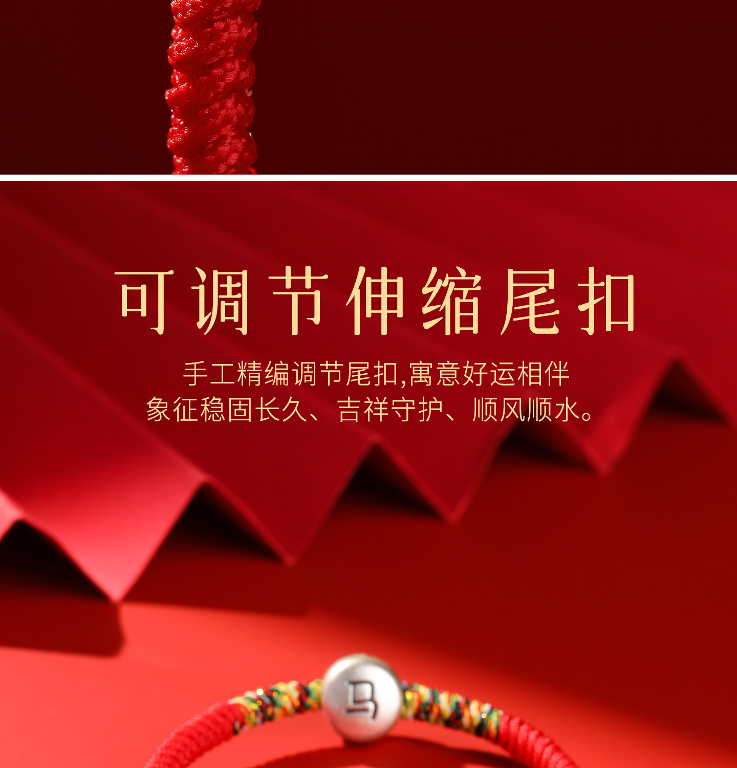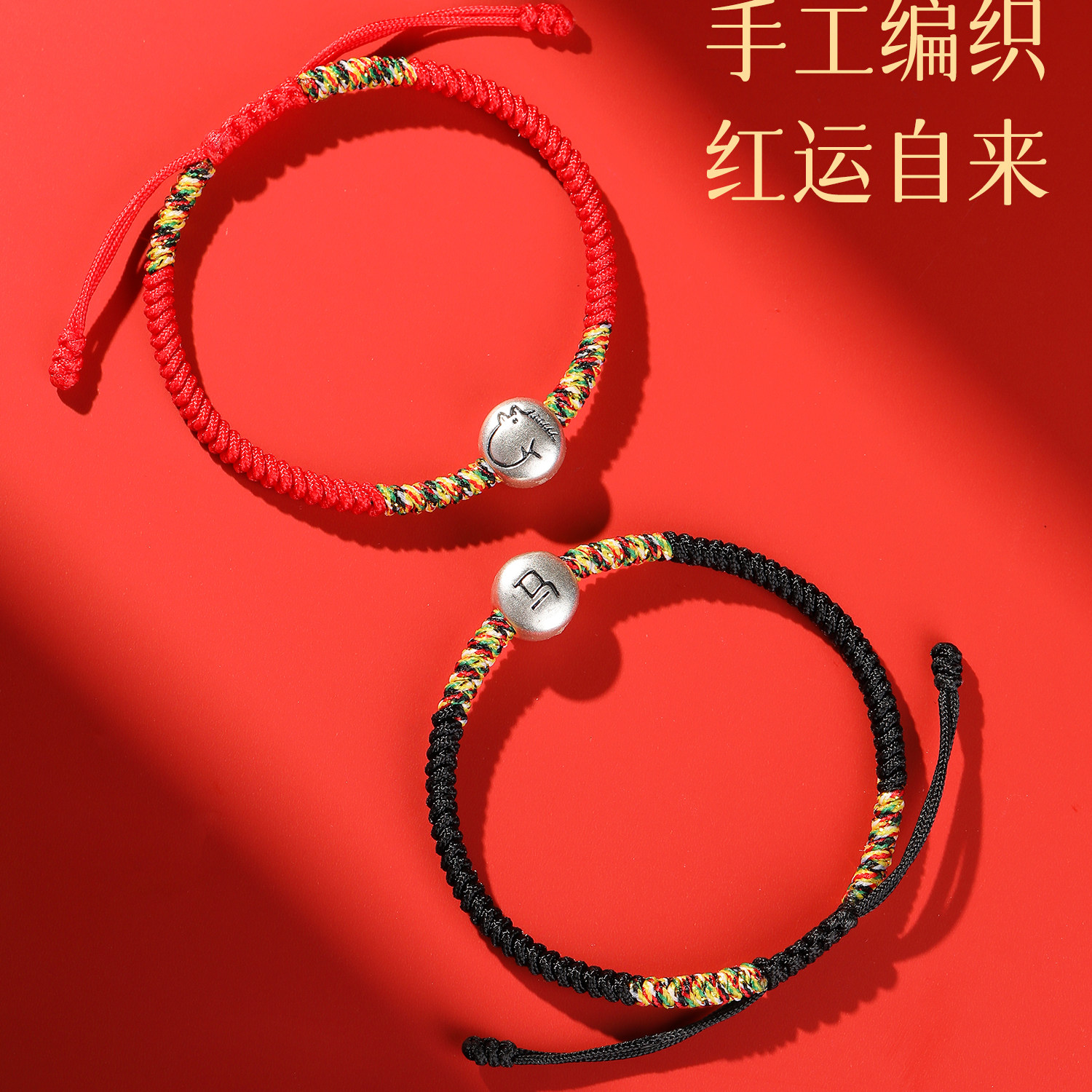 999 Pure Silver Year of the Horse Birth Year Red String Bracelet Couple Pure Silver Zodiac Horse Fortune Charm Bracelet 2026 Braided Rope for Women