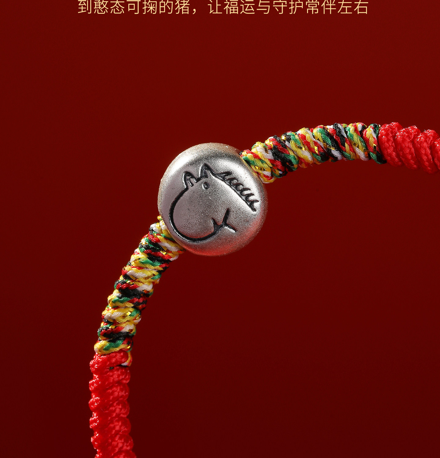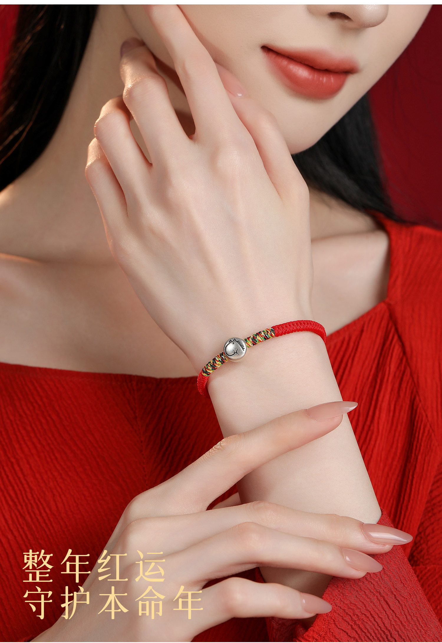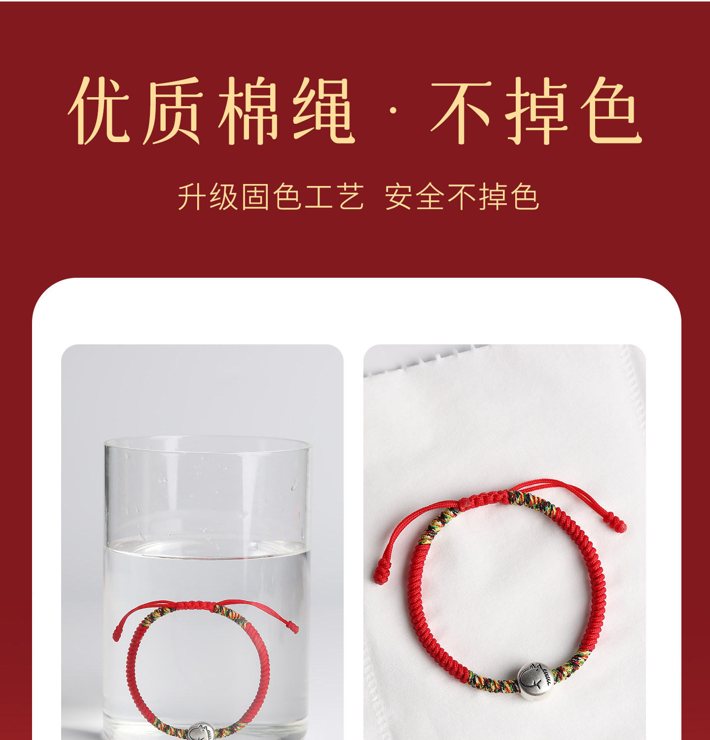 999 Pure Silver Year of the Horse Birth Year Red String Bracelet Couple Pure Silver Zodiac Horse Fortune Charm Bracelet 2026 Braided Rope for Women