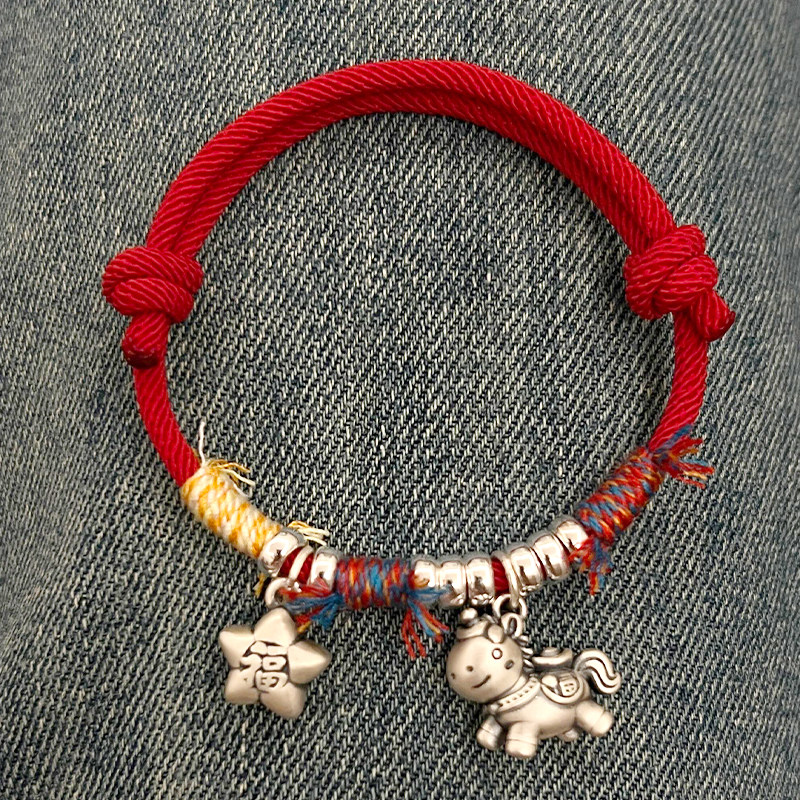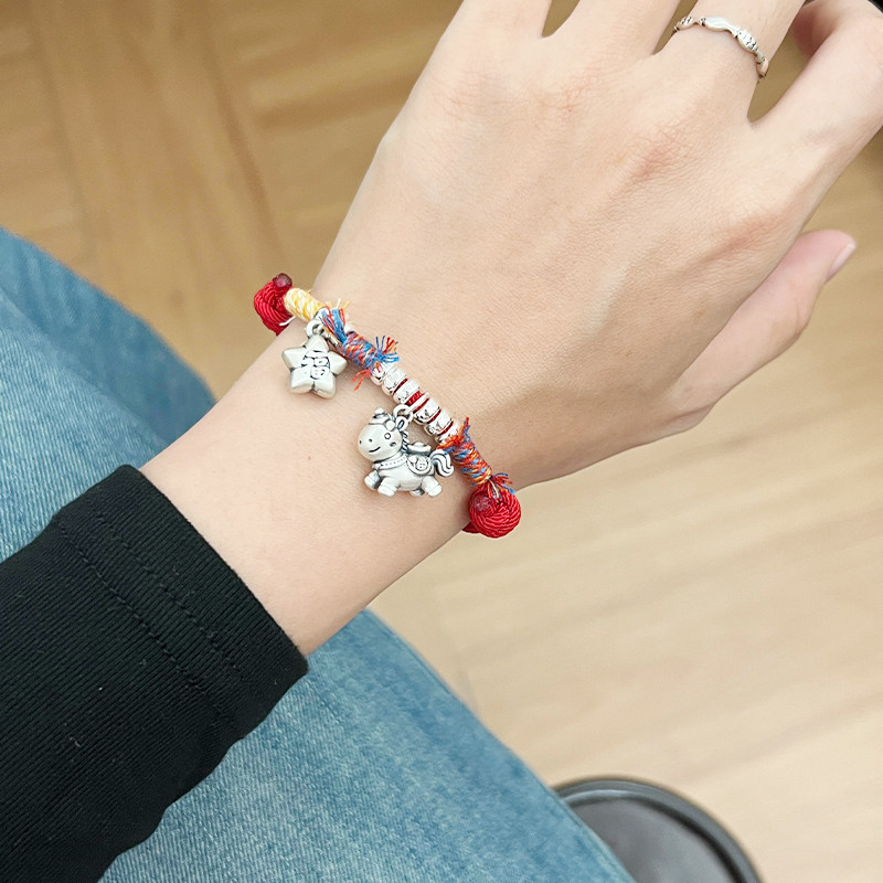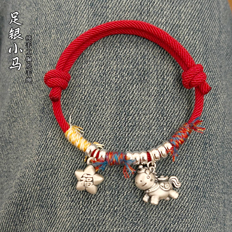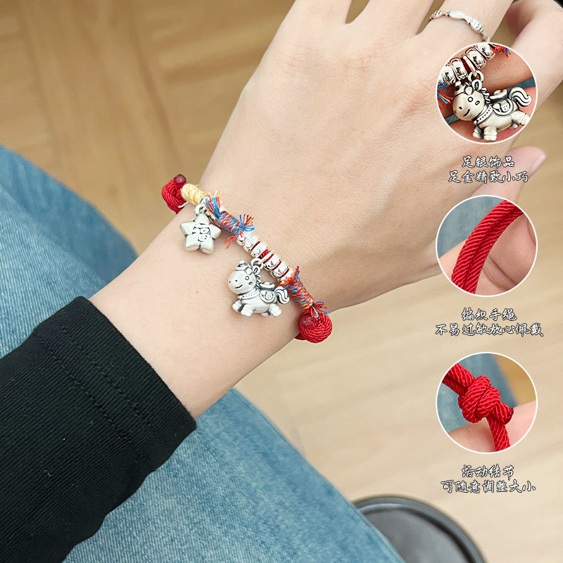 Pure Silver 999 Fortune Bead Red String Bracelet for Women, Year of the Horse, Woven Bracelet, Get Rich Immediately, Zodiac Horse