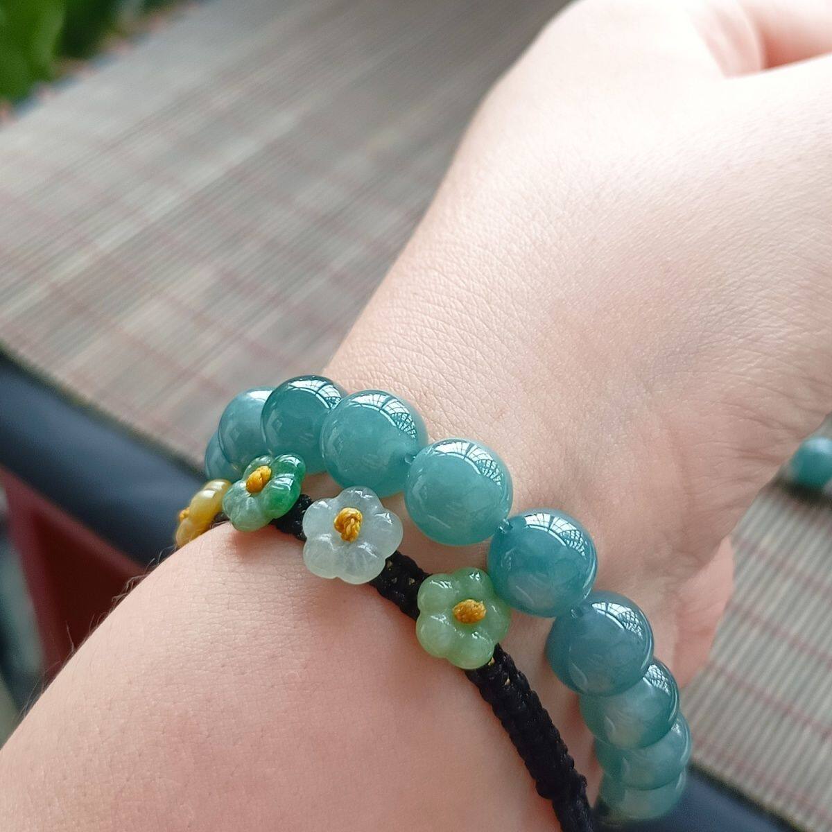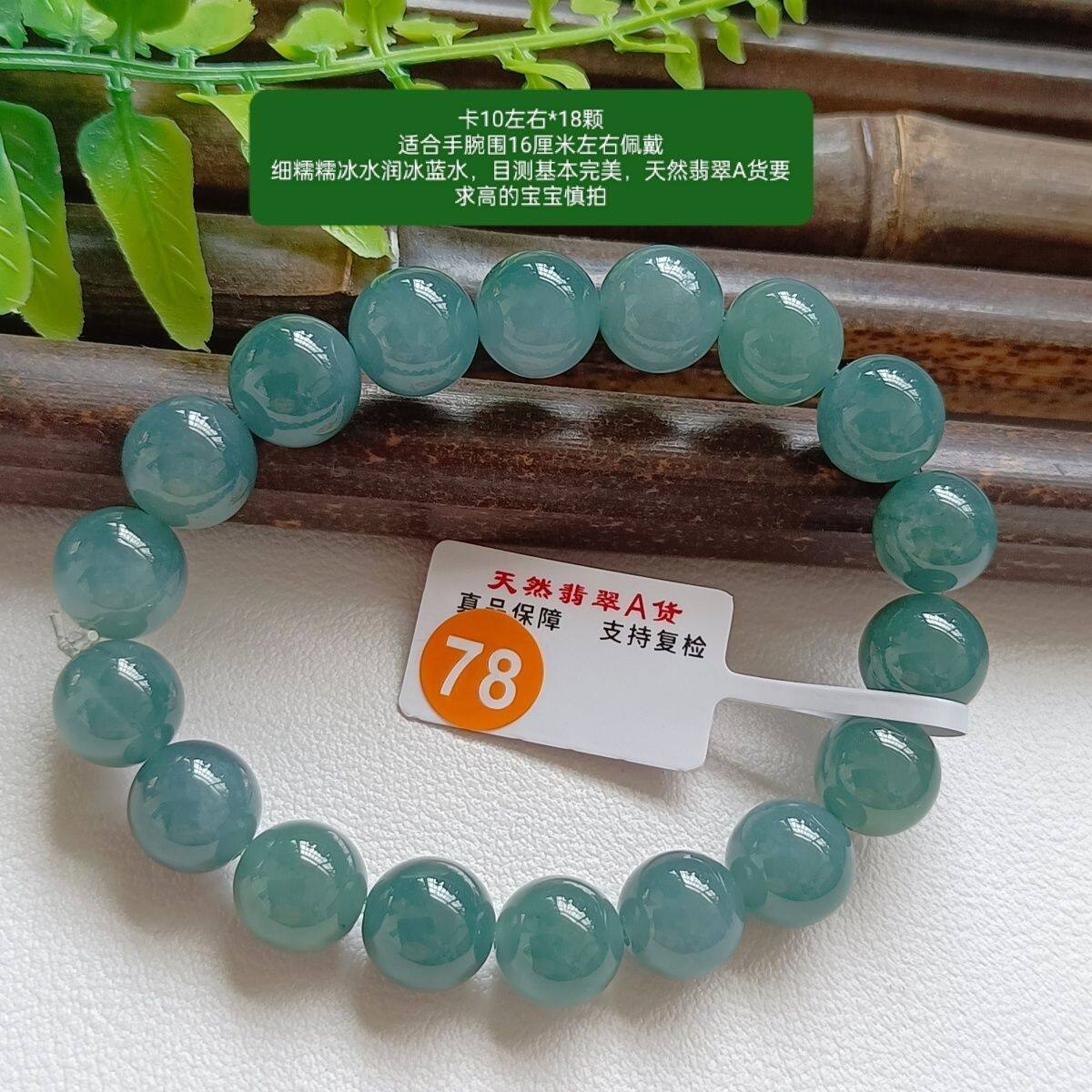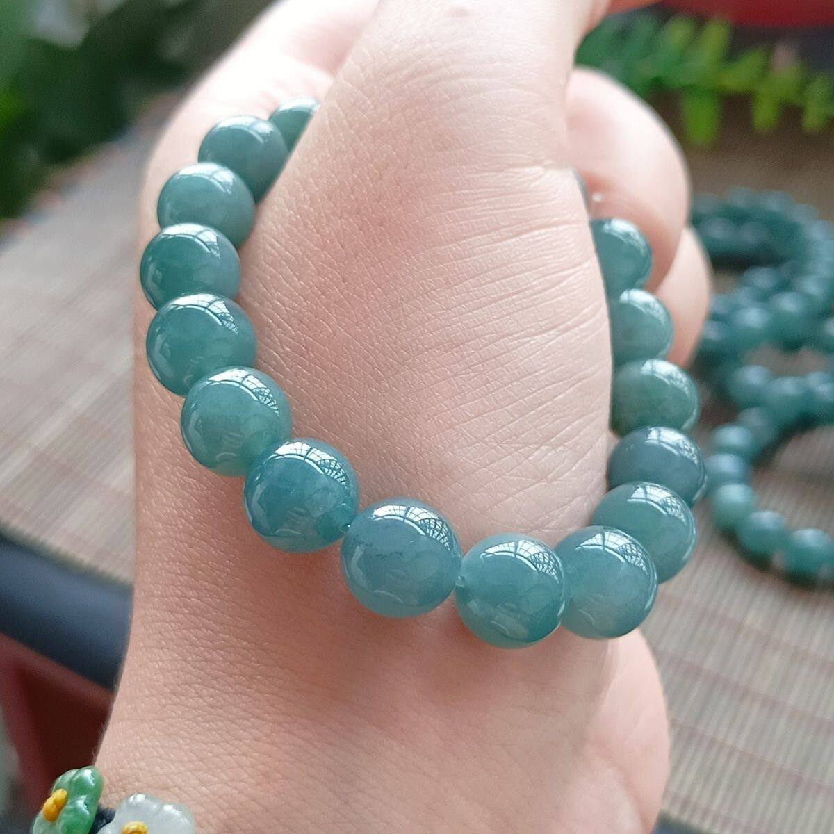 Jade A-Grade Bracelet, Fine and Smooth, Ice-Type, Water-Clear, Blue Water, 10-String Bracelet, Popular Model for Men and Women, Guaranteed a Quality
