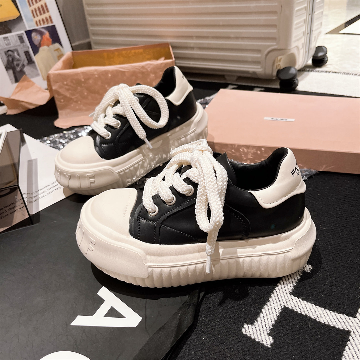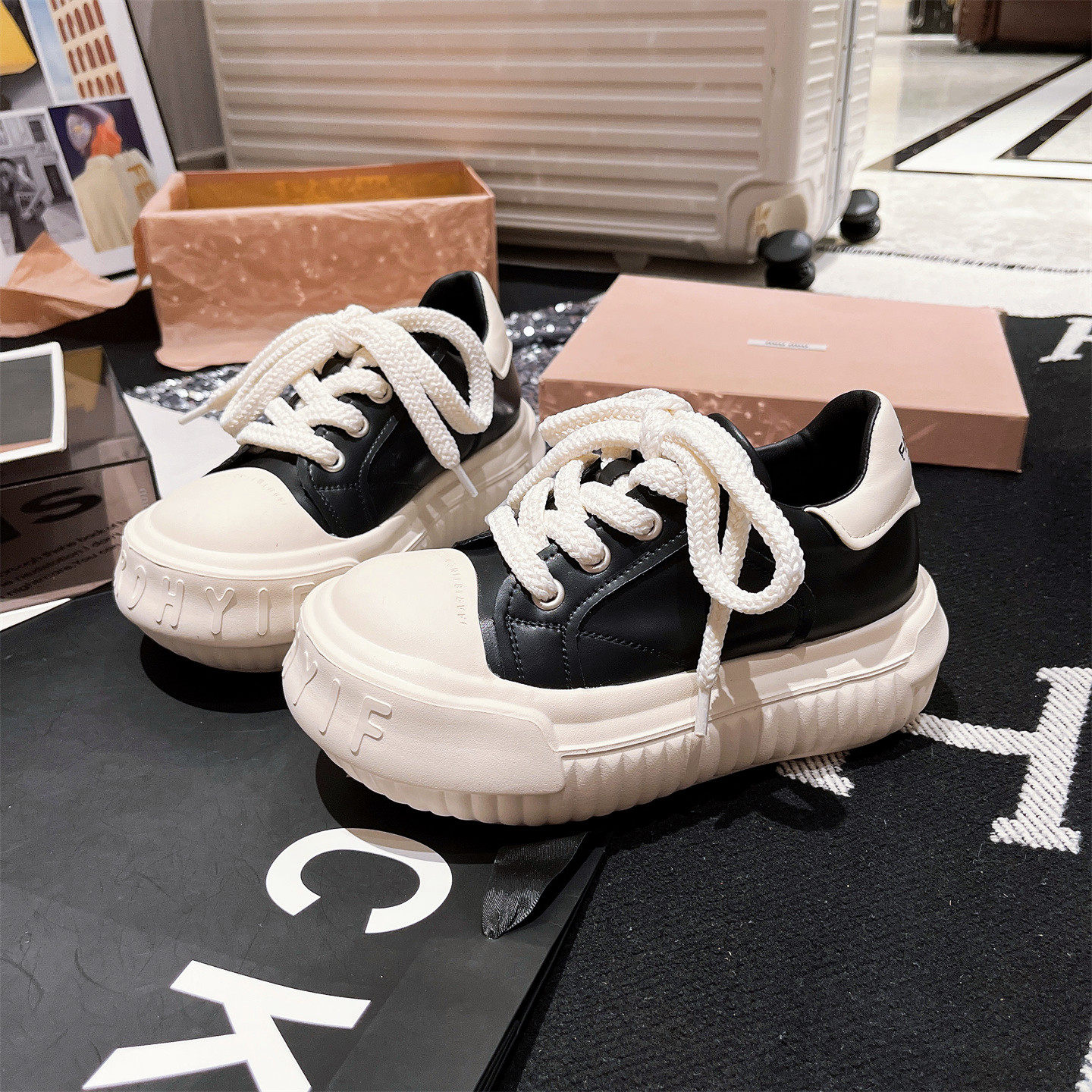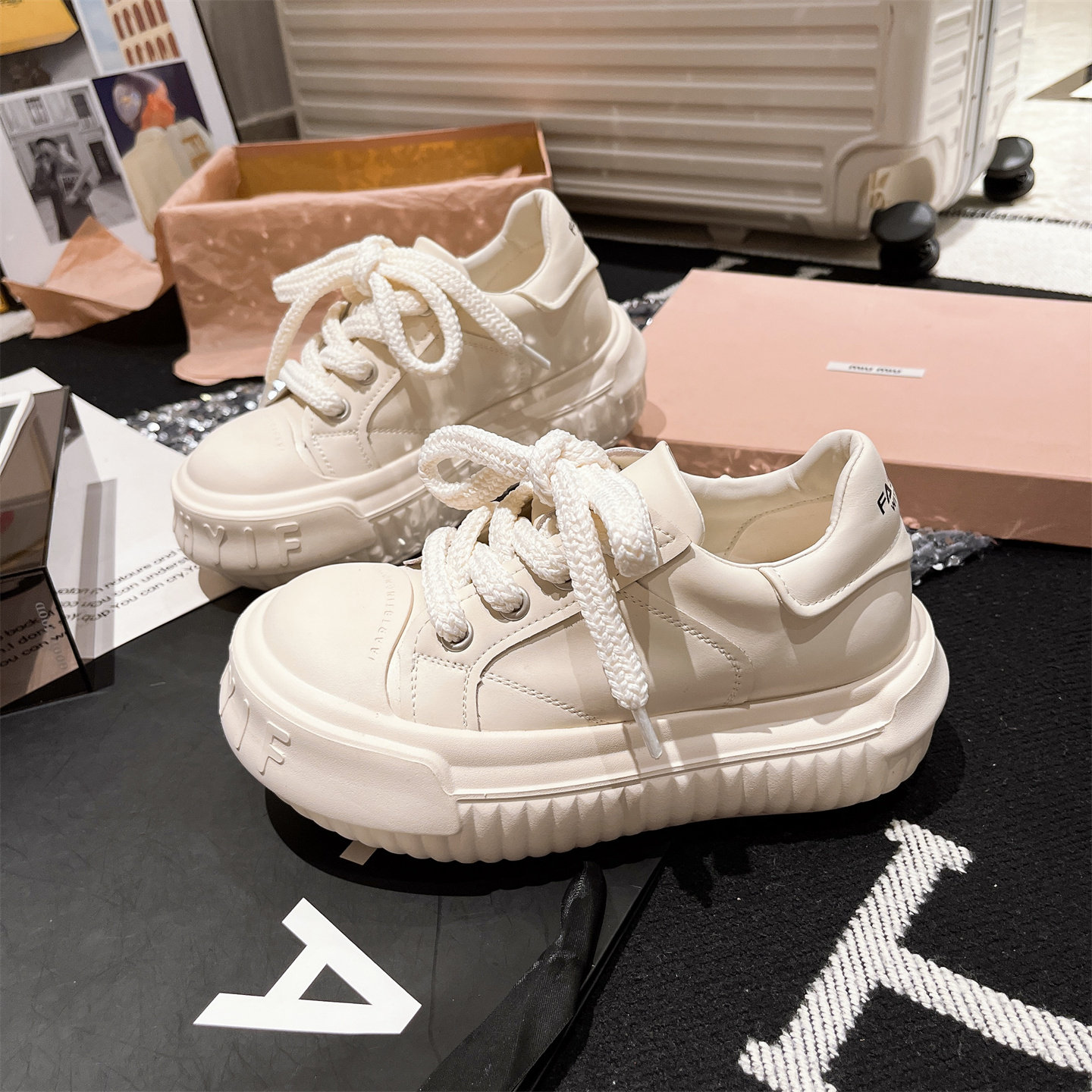 Hong Kong Japanese-Style Mickey Casual Platform Loafers for Women 2025 Autumn New Genuine Leather Thick-Soled Height-Increasing White Shoes Korean Version