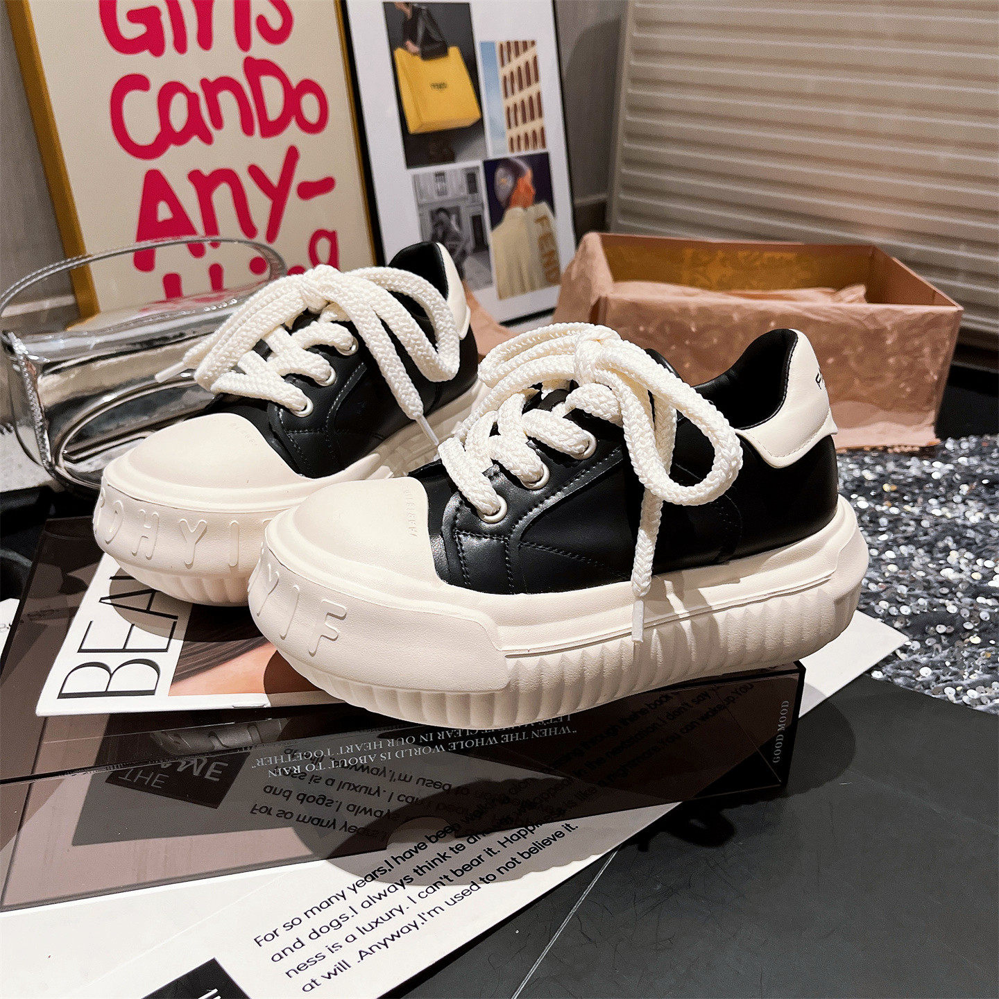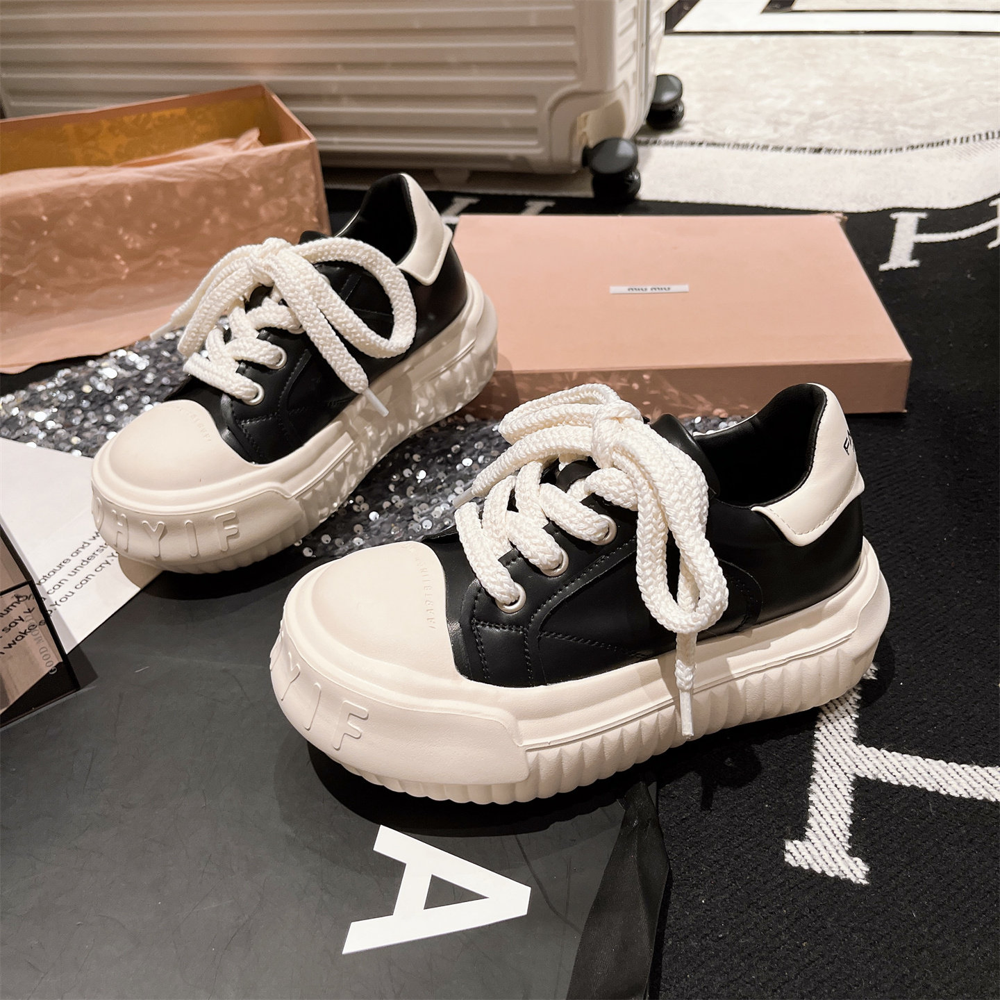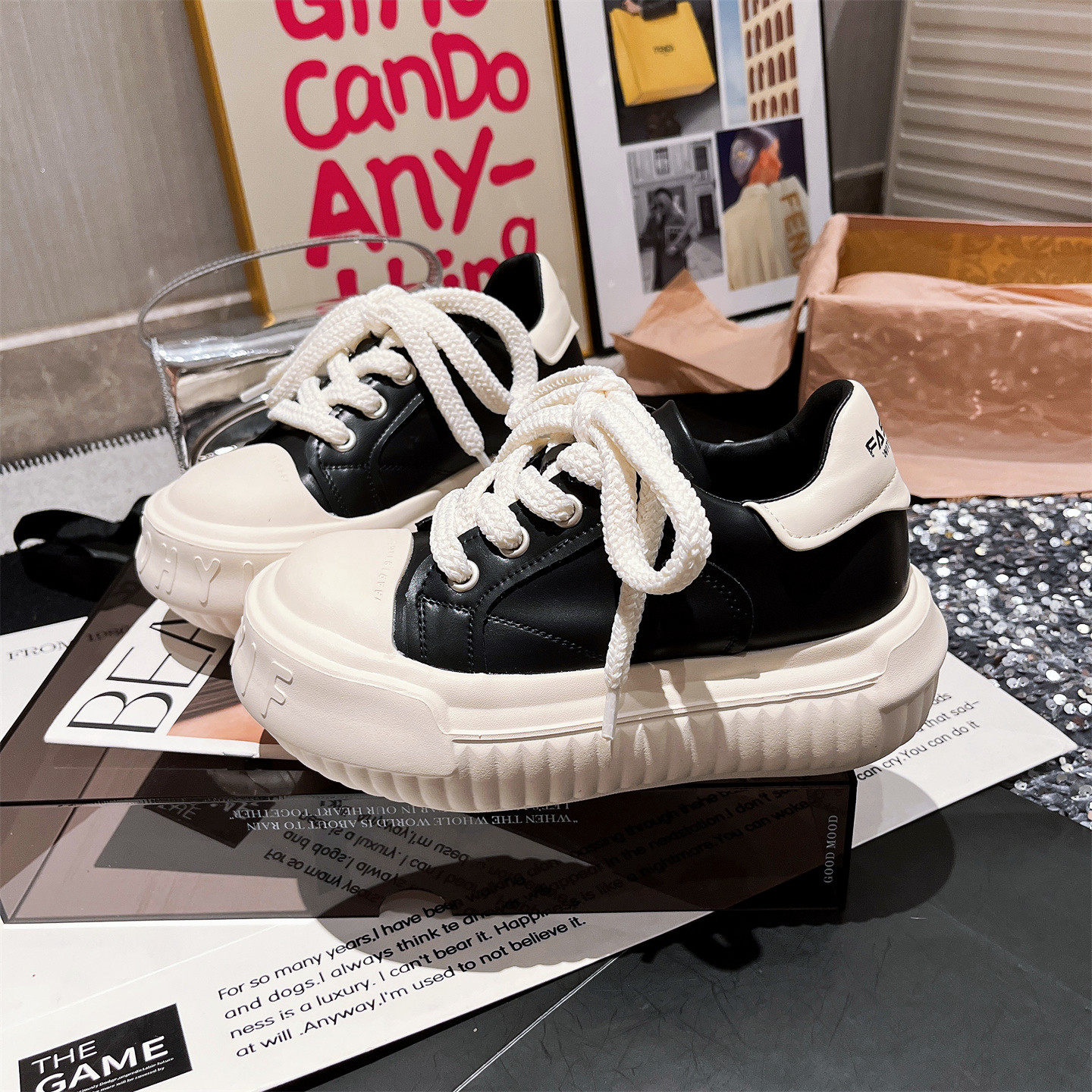 Hong Kong Japanese-Style Mickey Casual Platform Loafers for Women 2025 Autumn New Genuine Leather Thick-Soled Height-Increasing White Shoes Korean Version