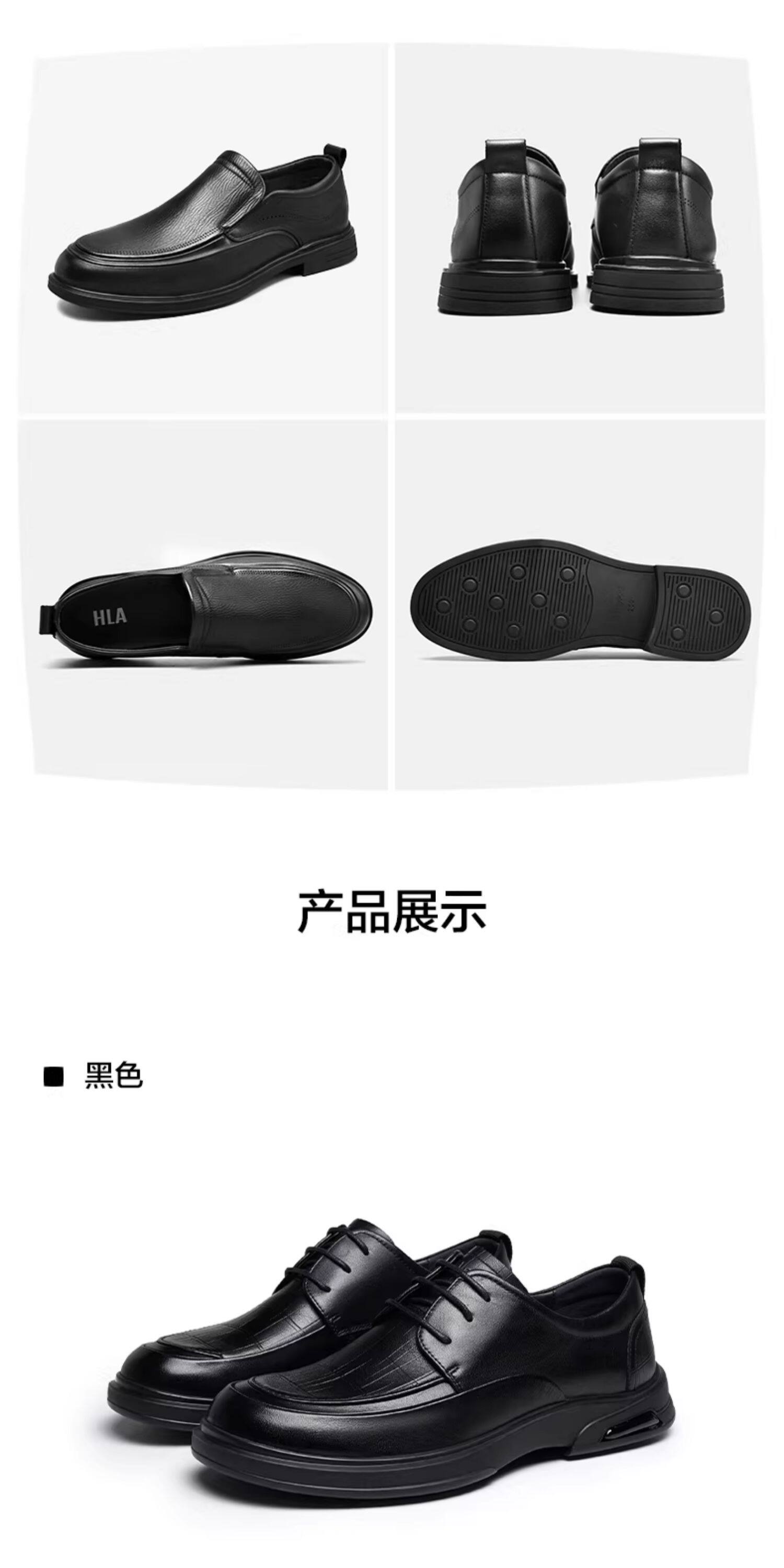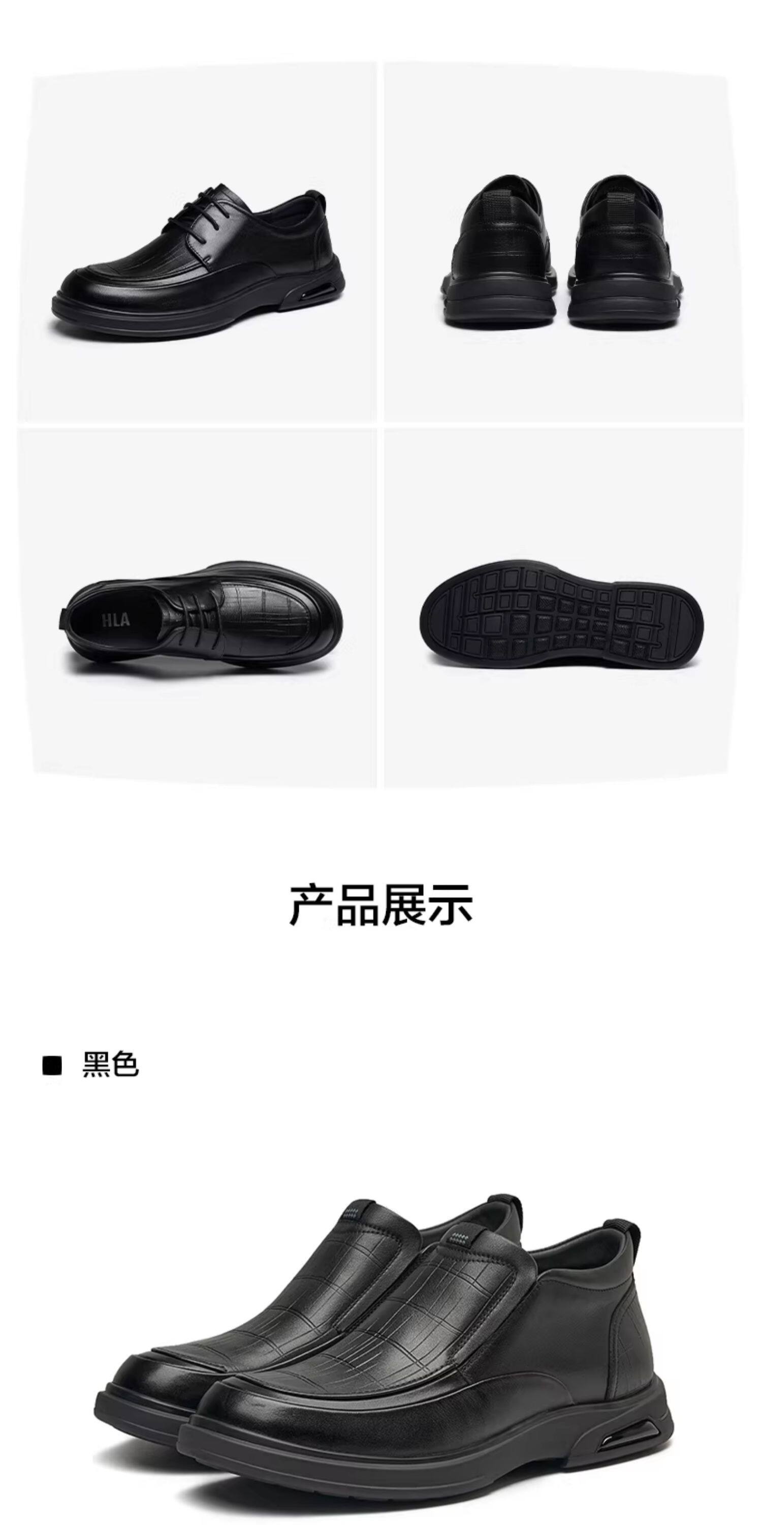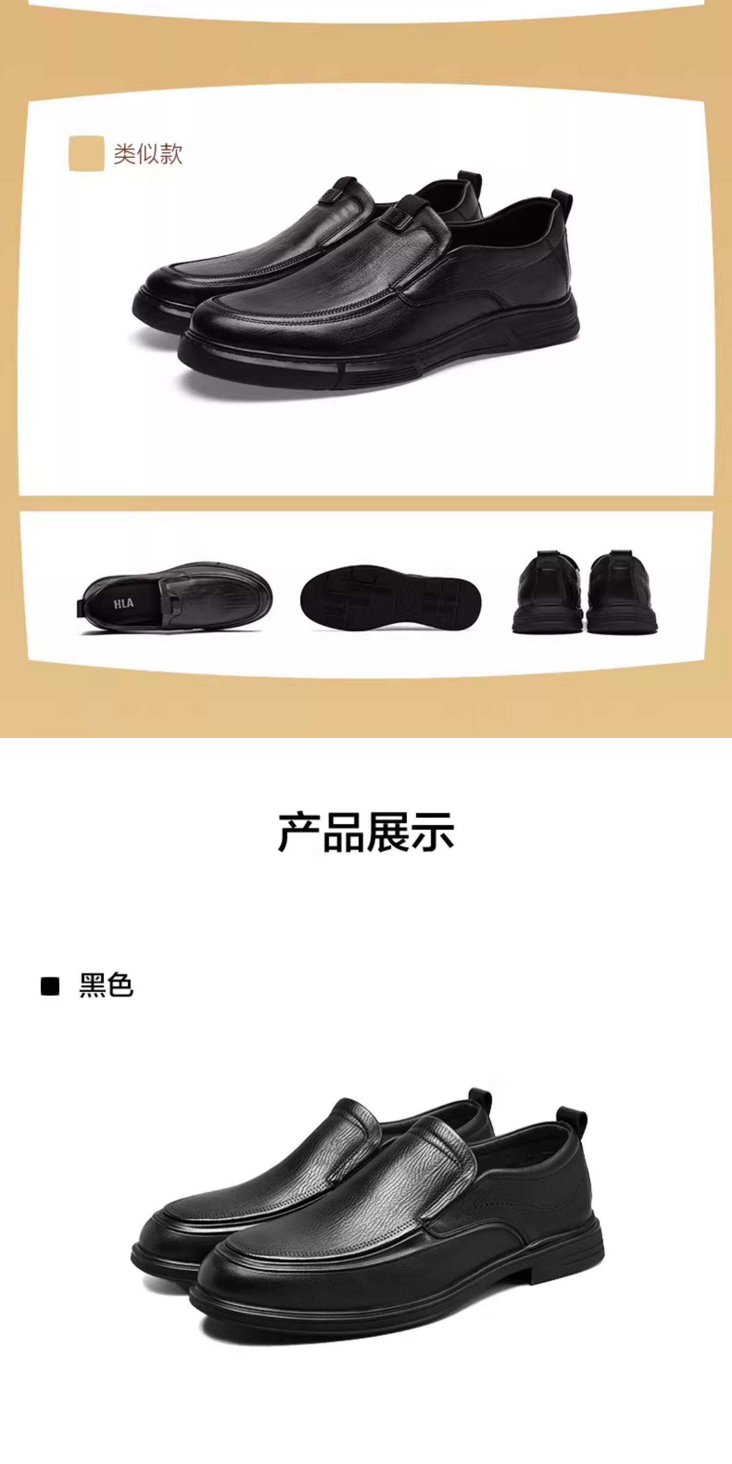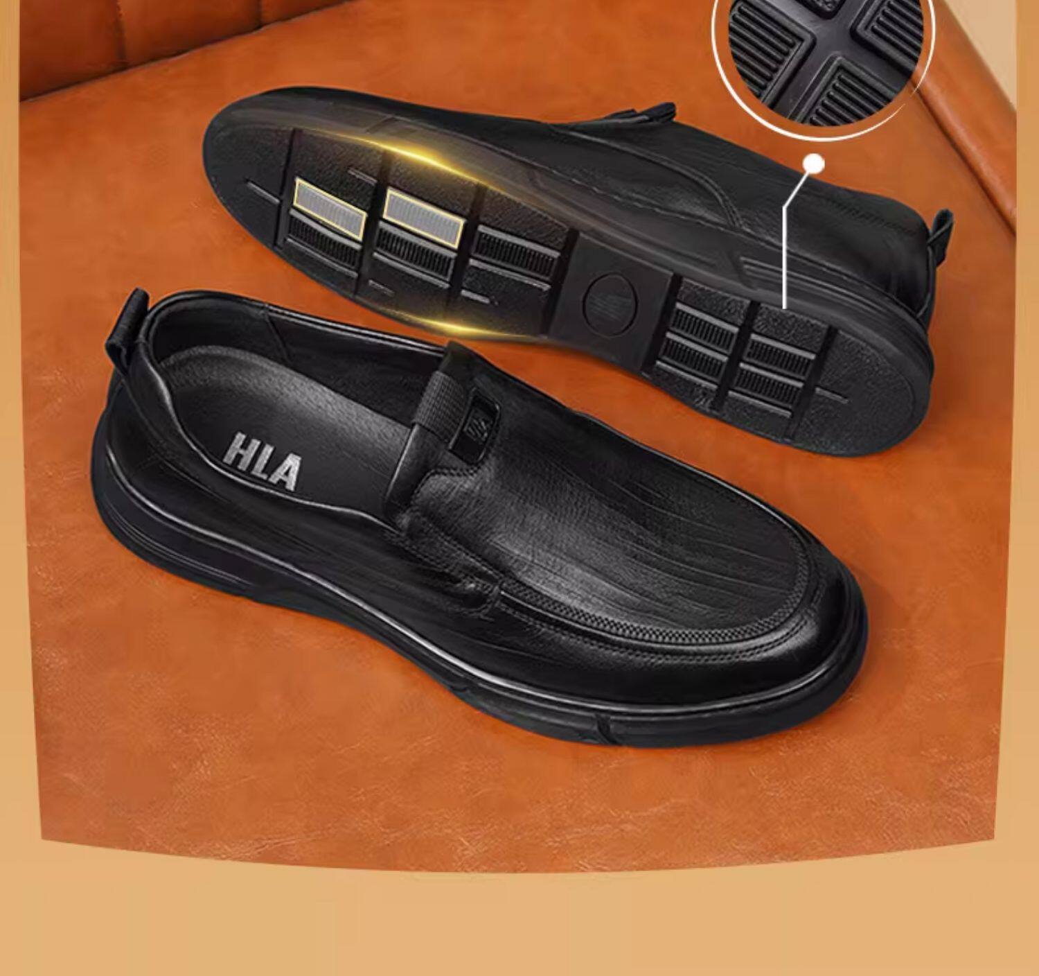 Hla/Hailan Home Men's Shoes New Loafers Winter Slip-On Soft Sole Genuine Leather Casual Fleece-Lined Leather Shoes for Middle-Aged Men