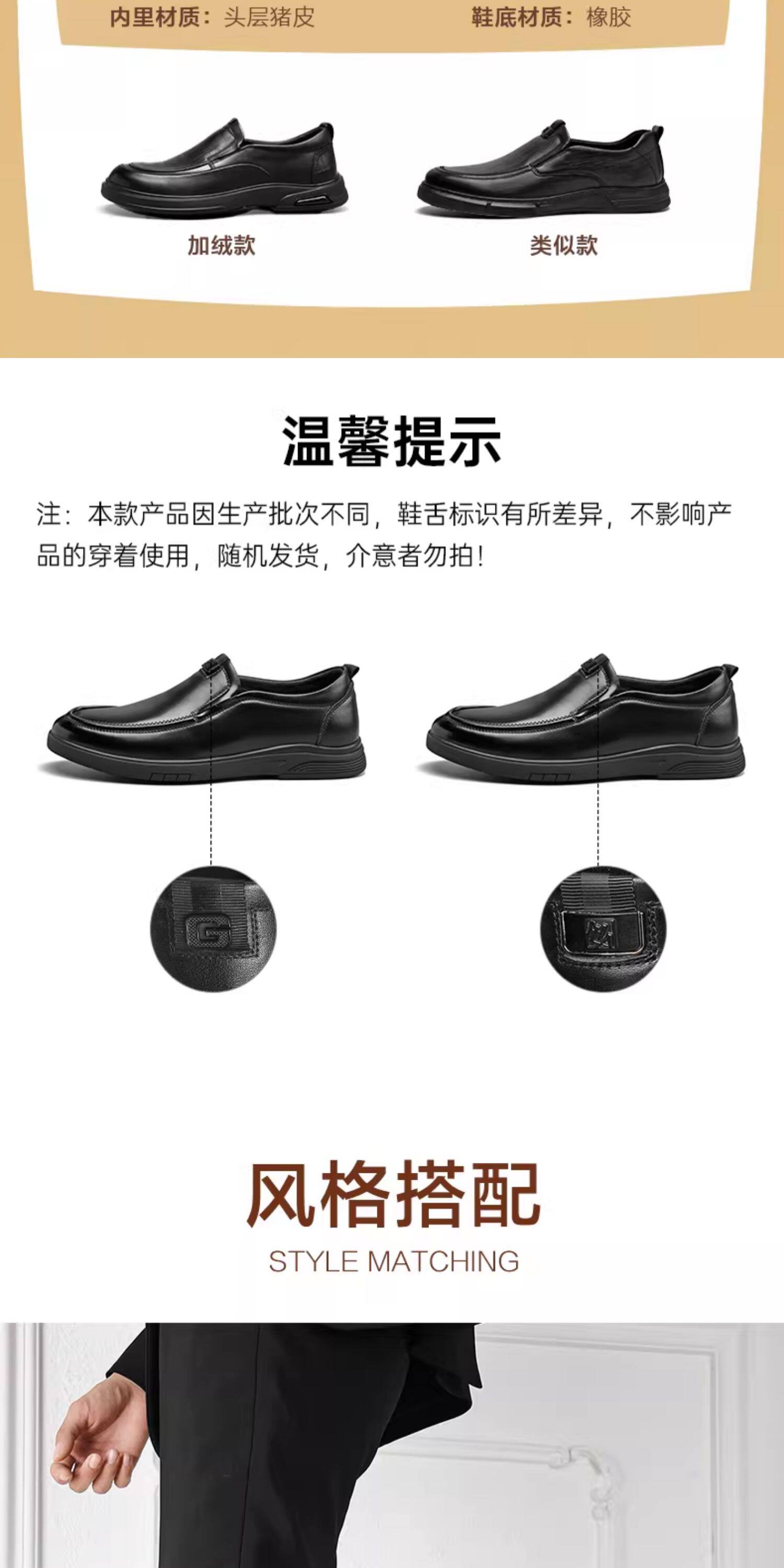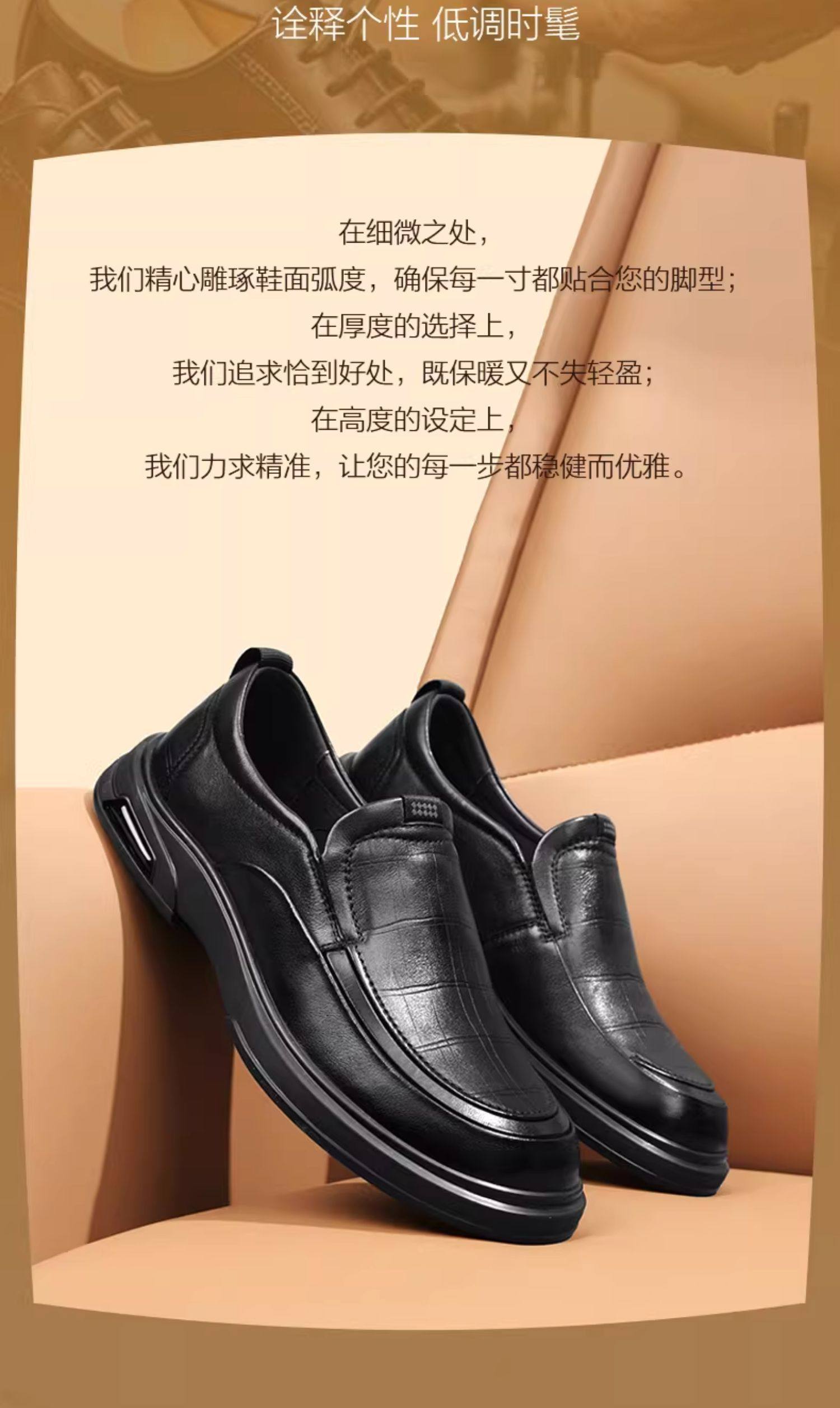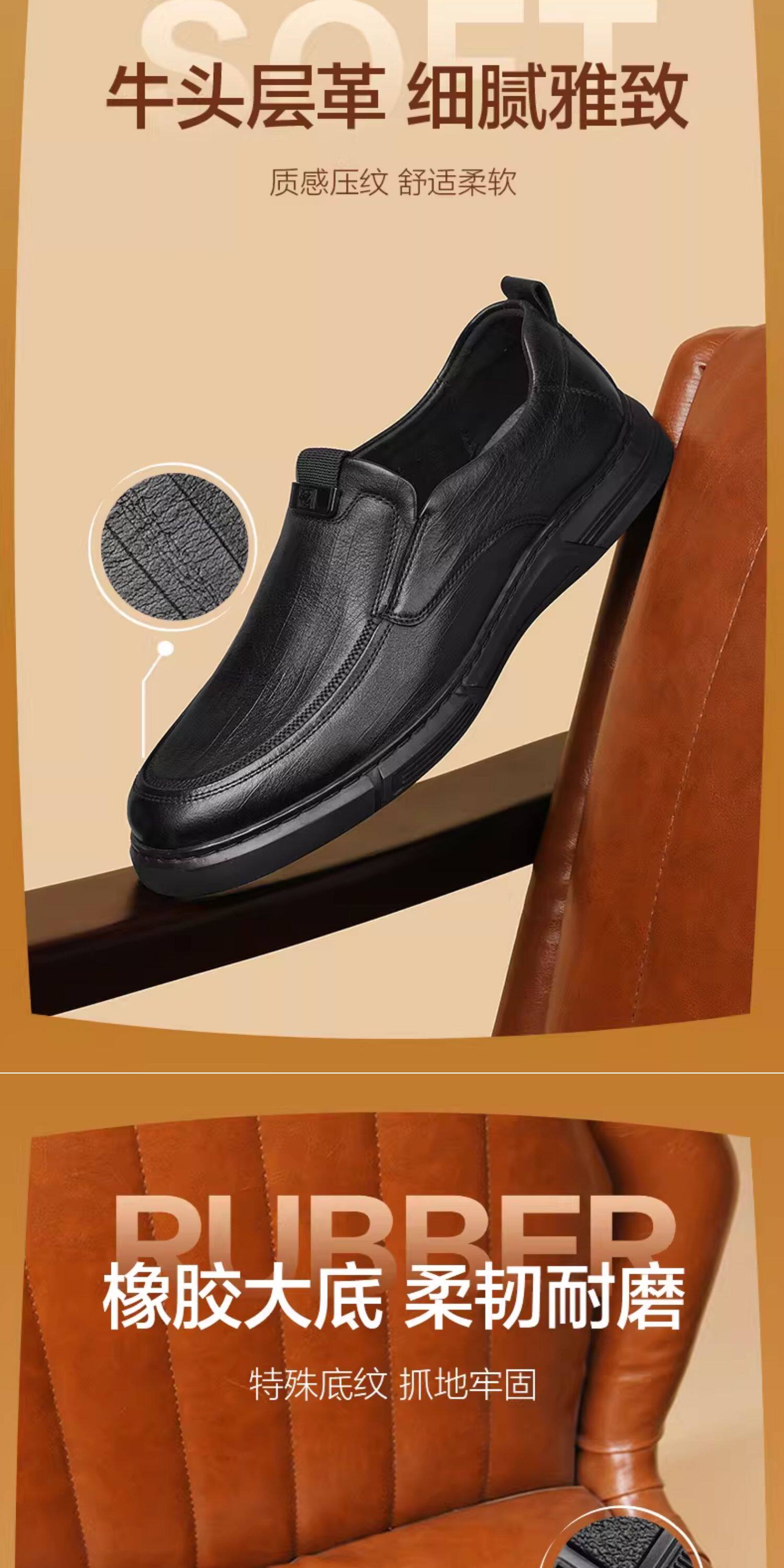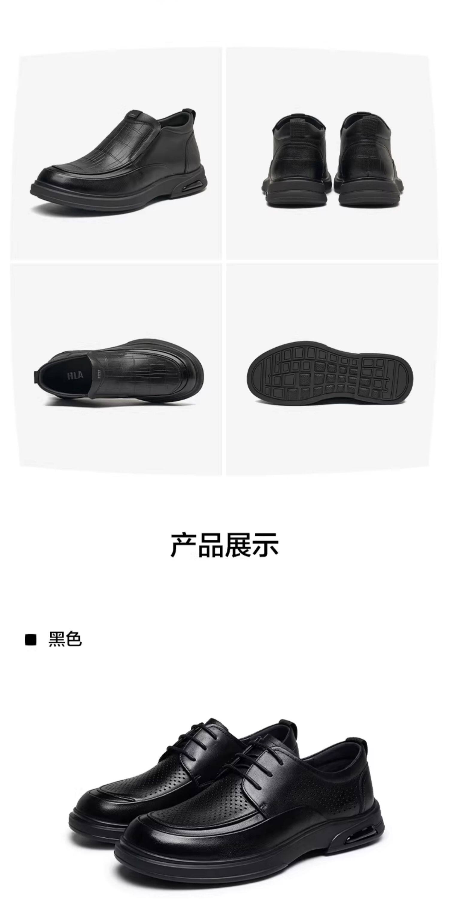 Hla/Hailan Home Men's Shoes New Loafers Winter Slip-On Soft Sole Genuine Leather Casual Fleece-Lined Leather Shoes for Middle-Aged Men