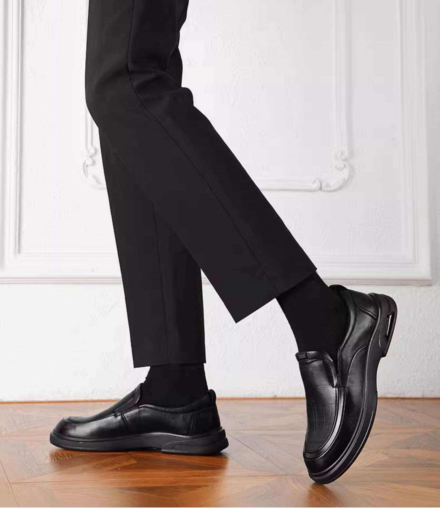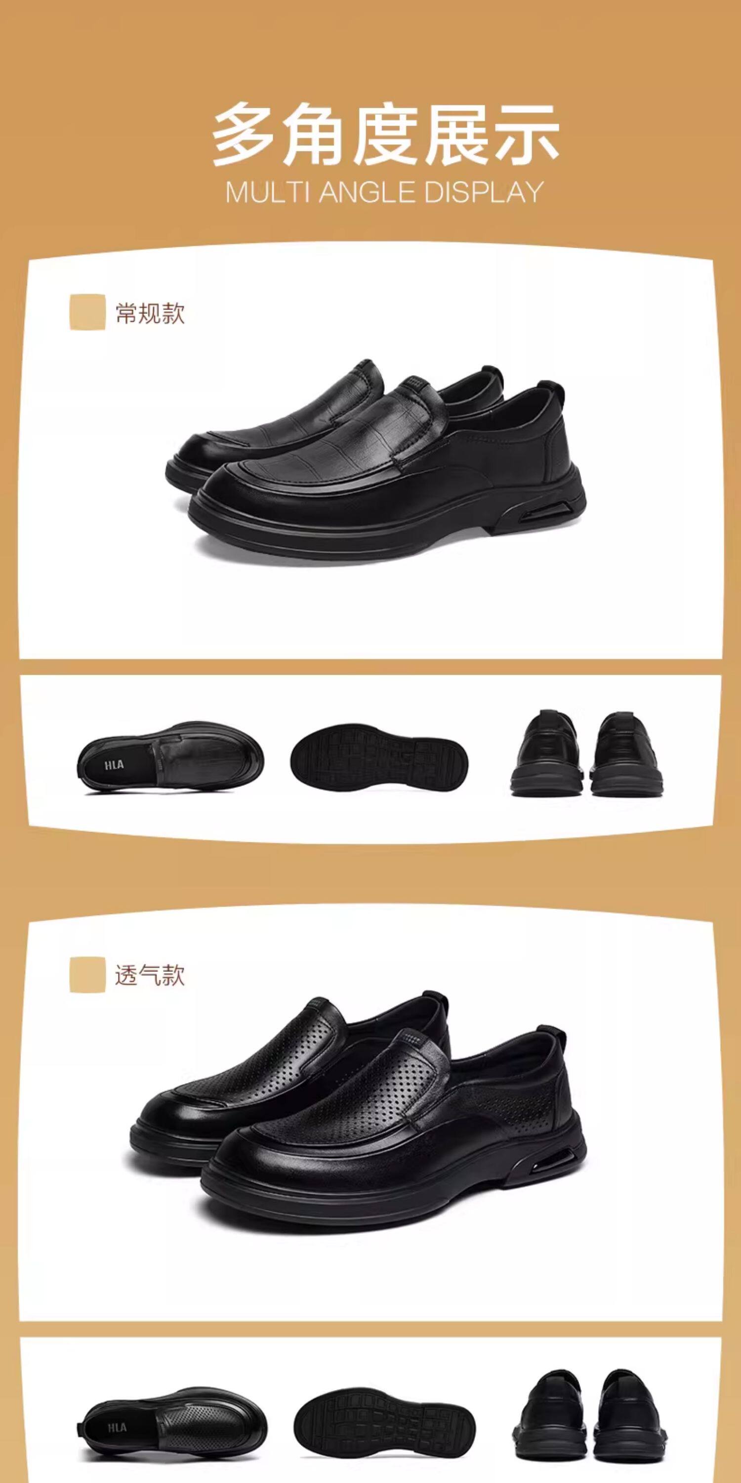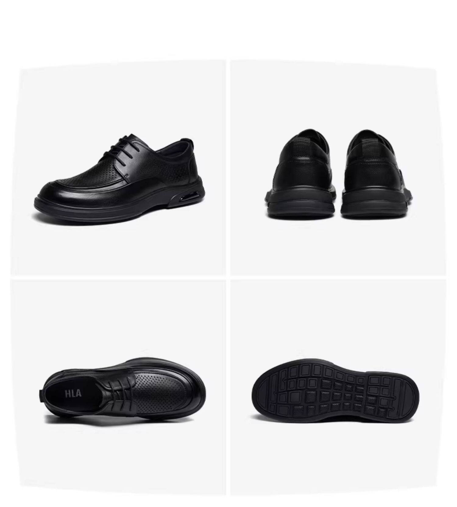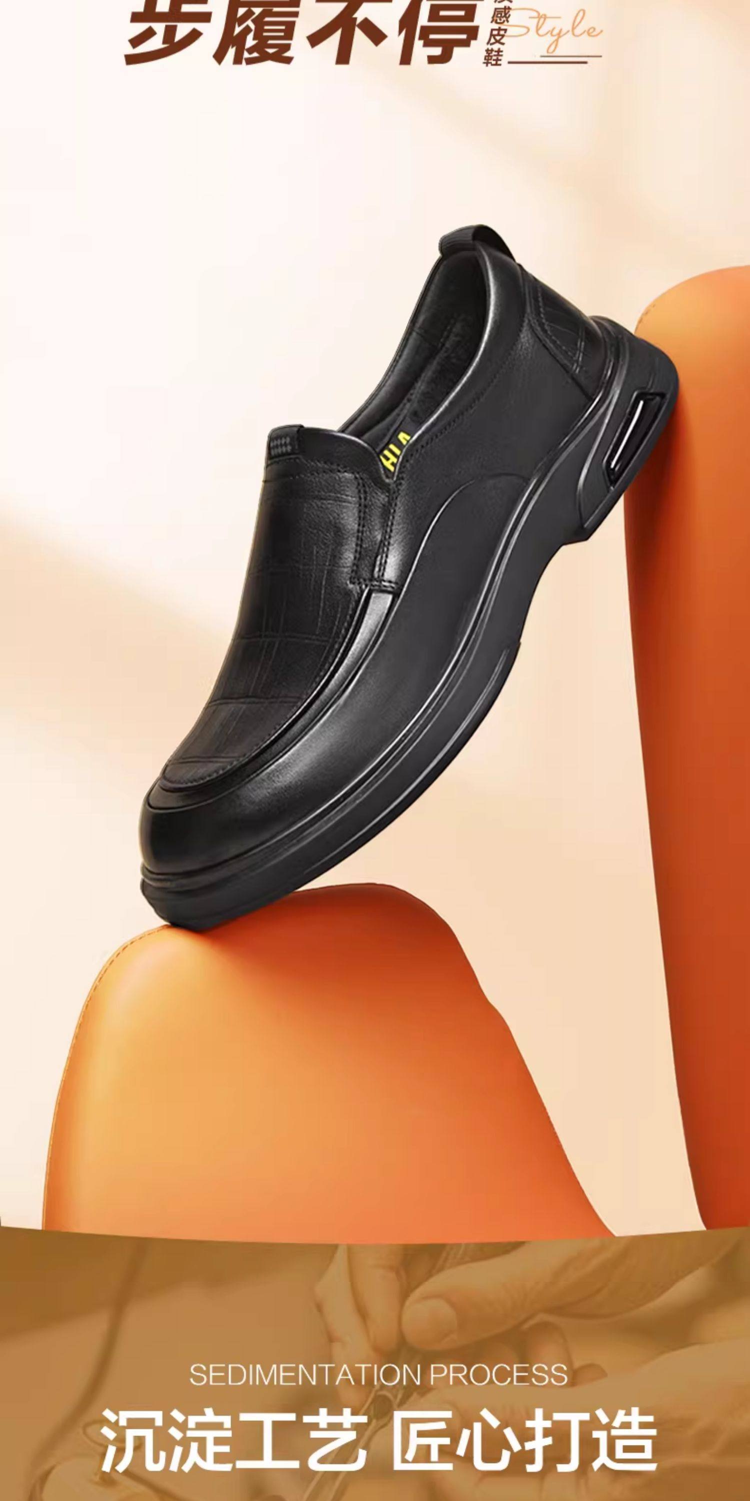Hla/Hailan Home Men's Shoes New Loafers Winter Slip-On Soft Sole Genuine Leather Casual Fleece-Lined Leather Shoes for Middle-Aged Men