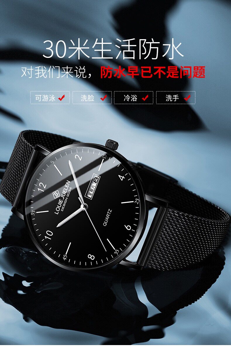 Swiss Genuine New Watch Men's Mechanical Watch Ultra-Thin Waterproof Luminous Fully Automatic Quartz Black Warrior Leather Strap Model
