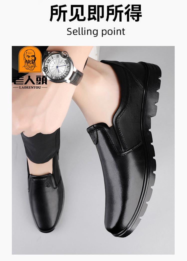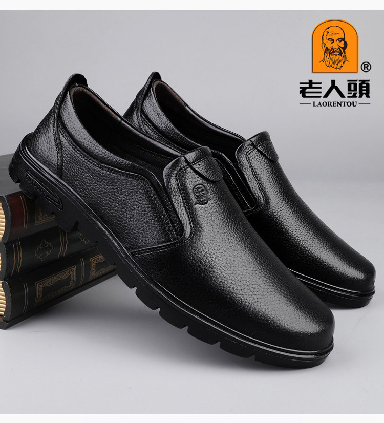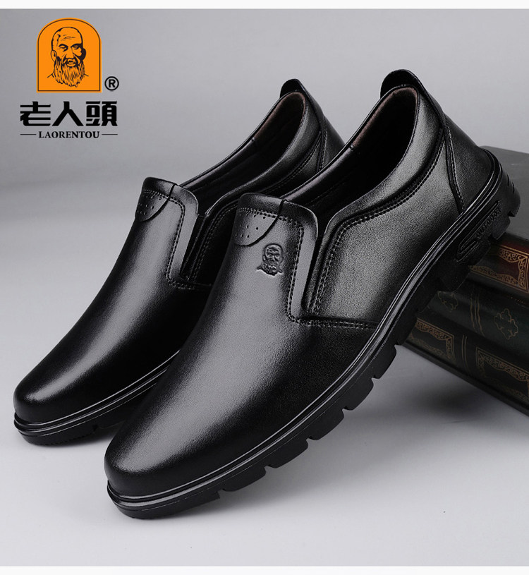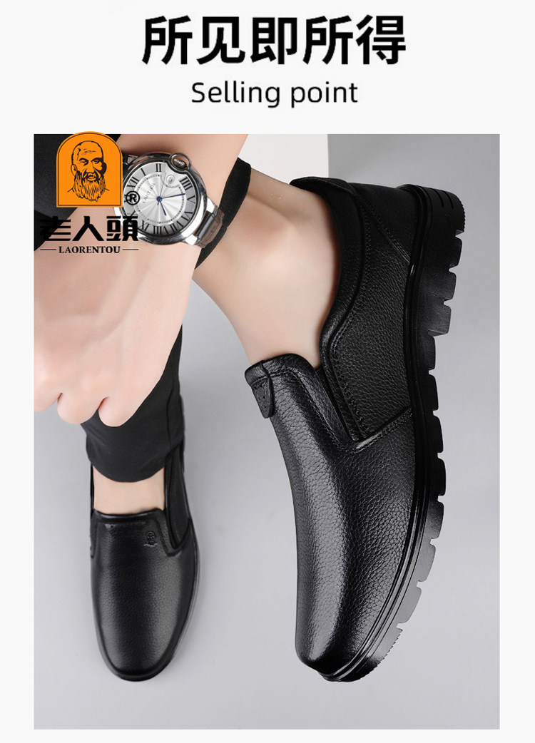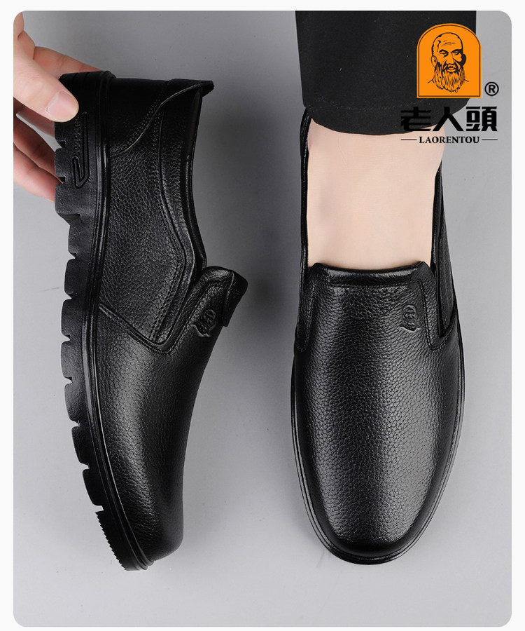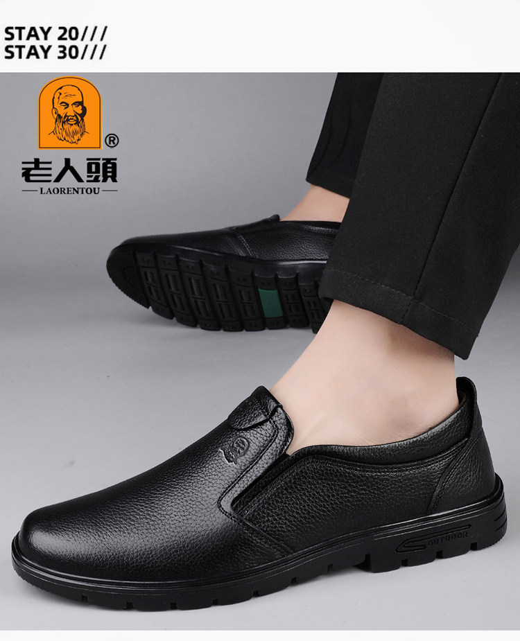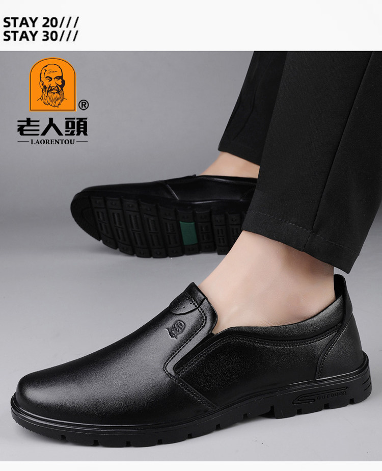 Elderly Men's Shoes, Genuine Leather Breathable Leather Shoes, Men's Spring and Autumn New Style, Soft Surface, Soft Sole, Business Casual Slip-On, Versatile and Wear-Resistant