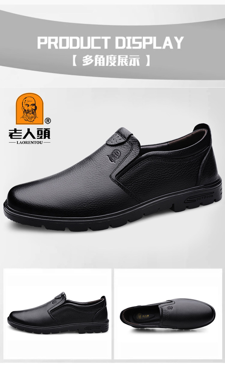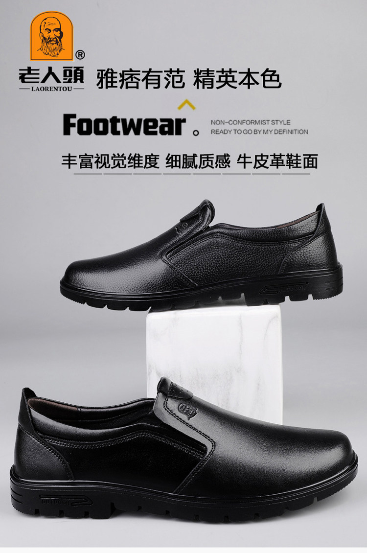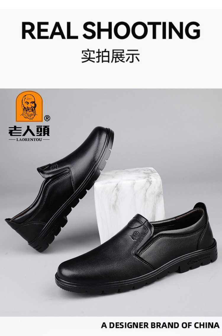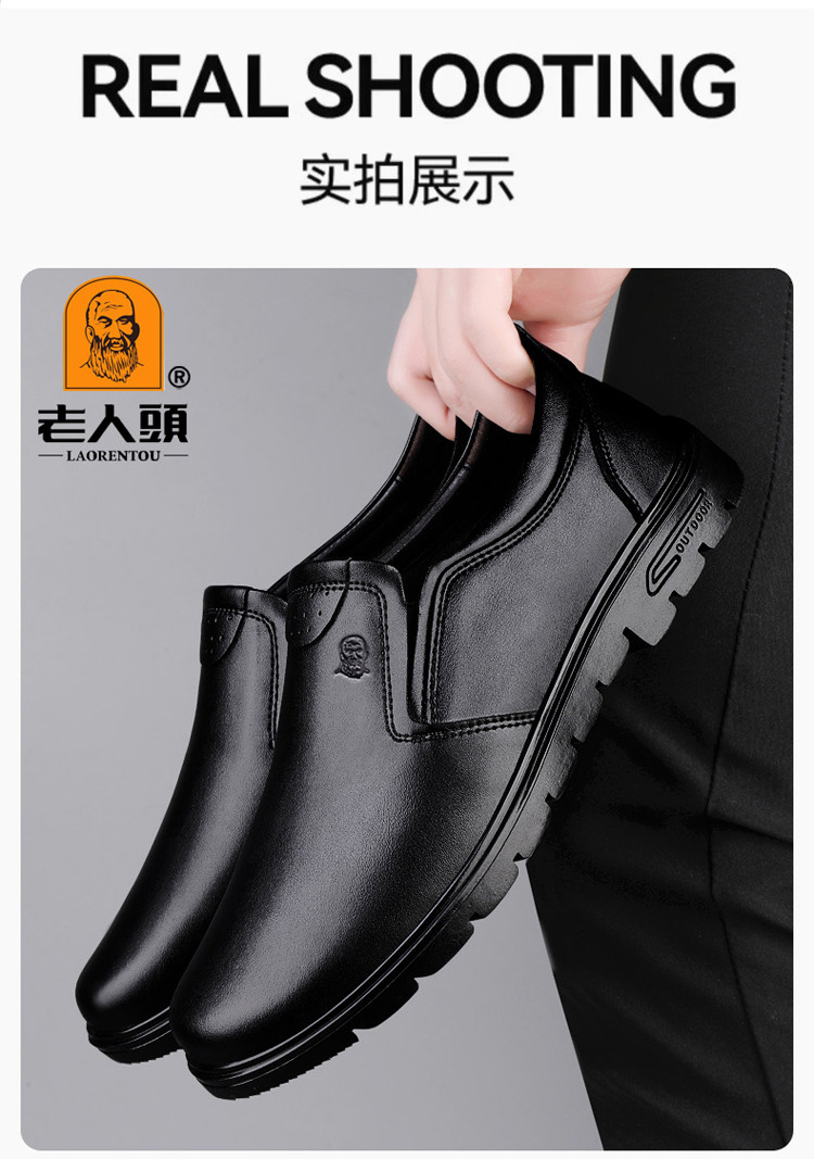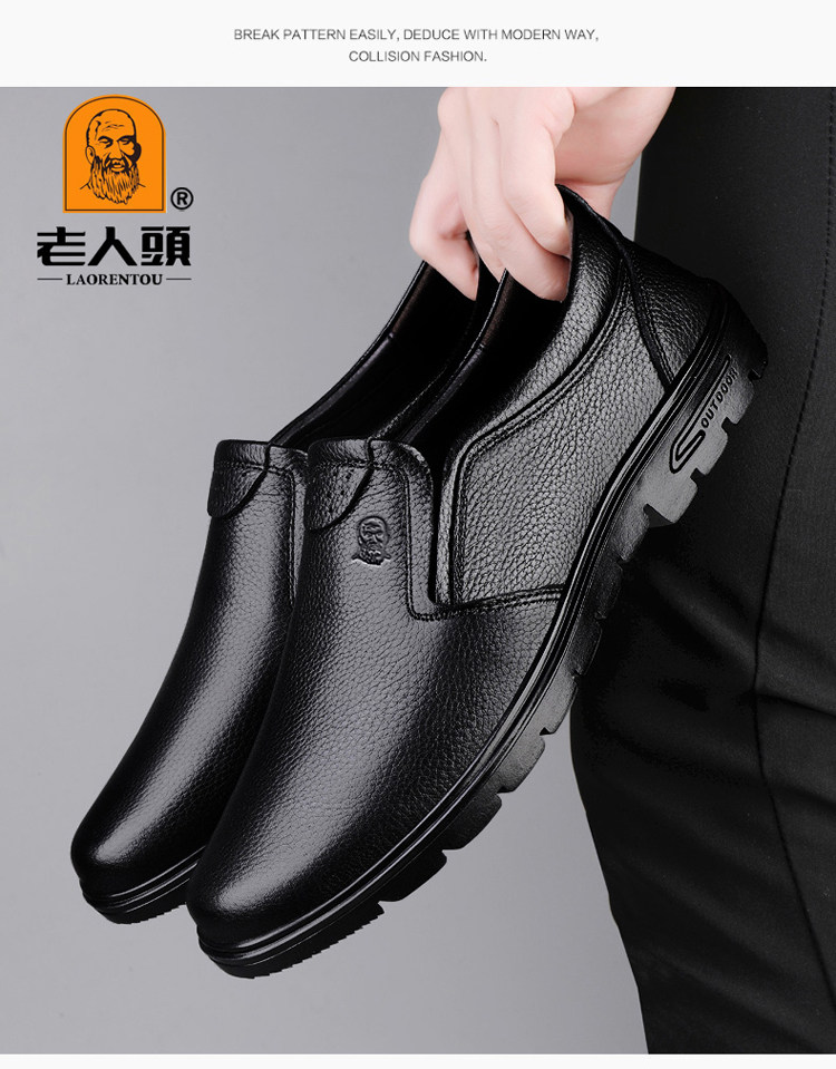 Elderly Men's Shoes, Genuine Leather Breathable Leather Shoes, Men's Spring and Autumn New Style, Soft Surface, Soft Sole, Business Casual Slip-On, Versatile and Wear-Resistant