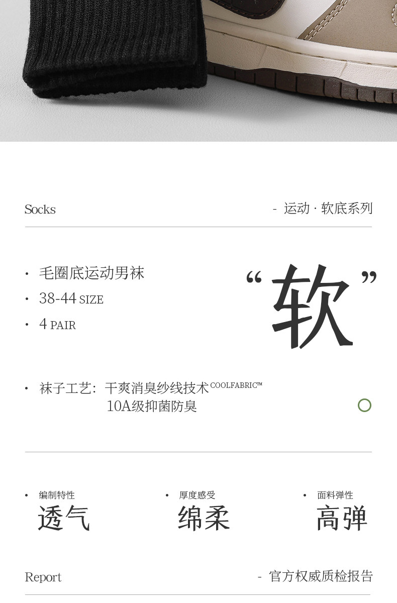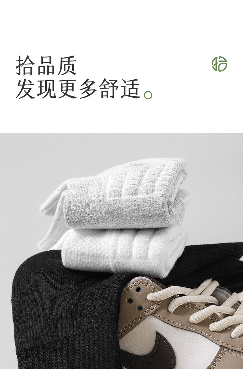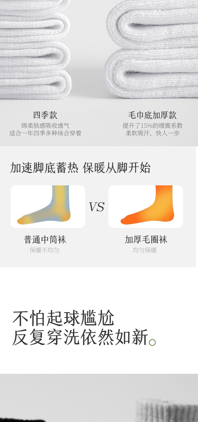 Shi Saji Towel Bottom Sports Socks for Men, Mid-Calf, Autumn and Winter Style, Pure Cotton Yarn, Odor-Resistant, Pure White, Non-Slip Long Socks