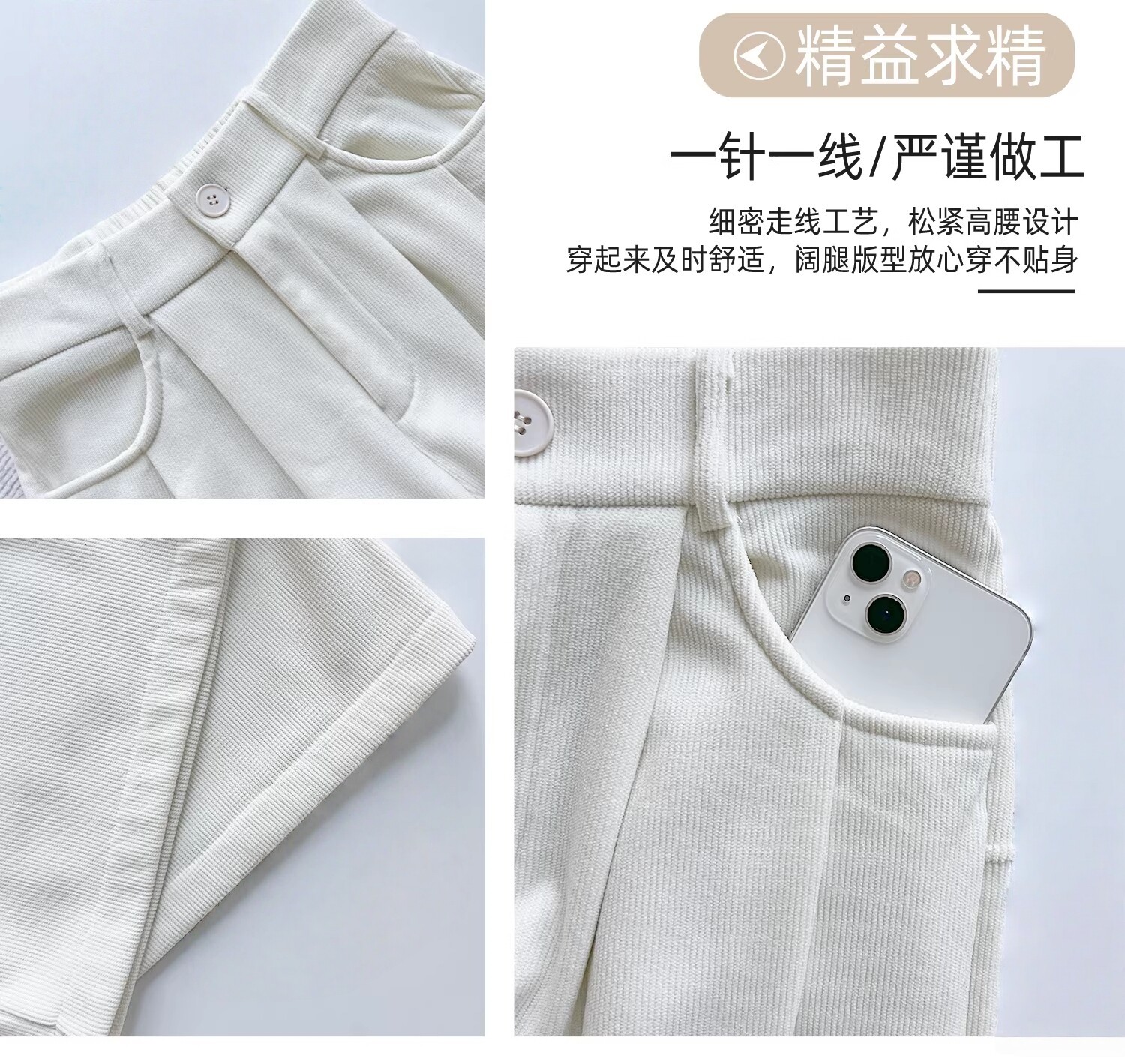 Tea Gray Corduroy Wide-Leg Pants for Women, Autumn and Winter 2025 Style, Petite Size, High-End Feel, Fleece-Lined, Casual Drape Suit Pants
