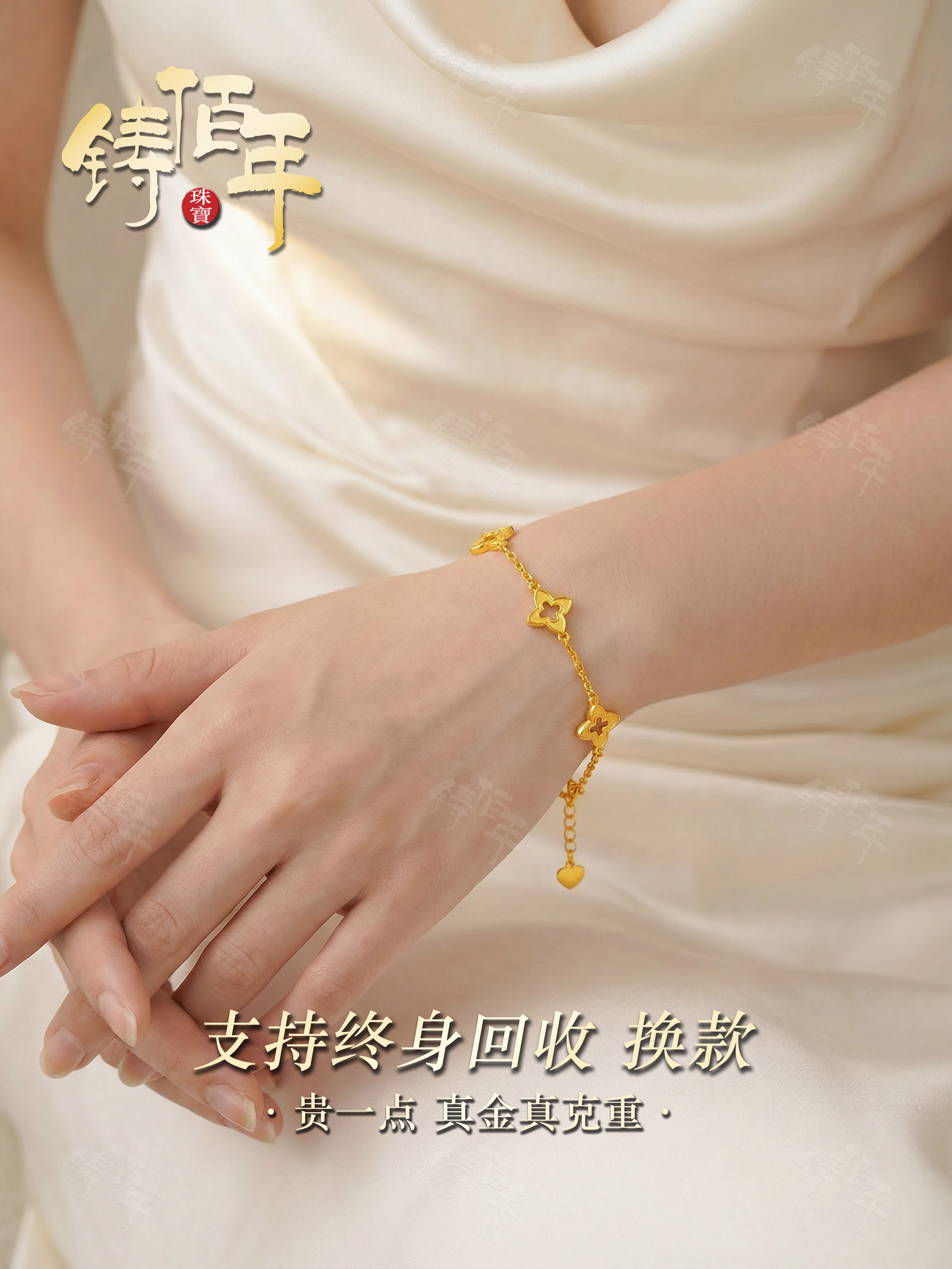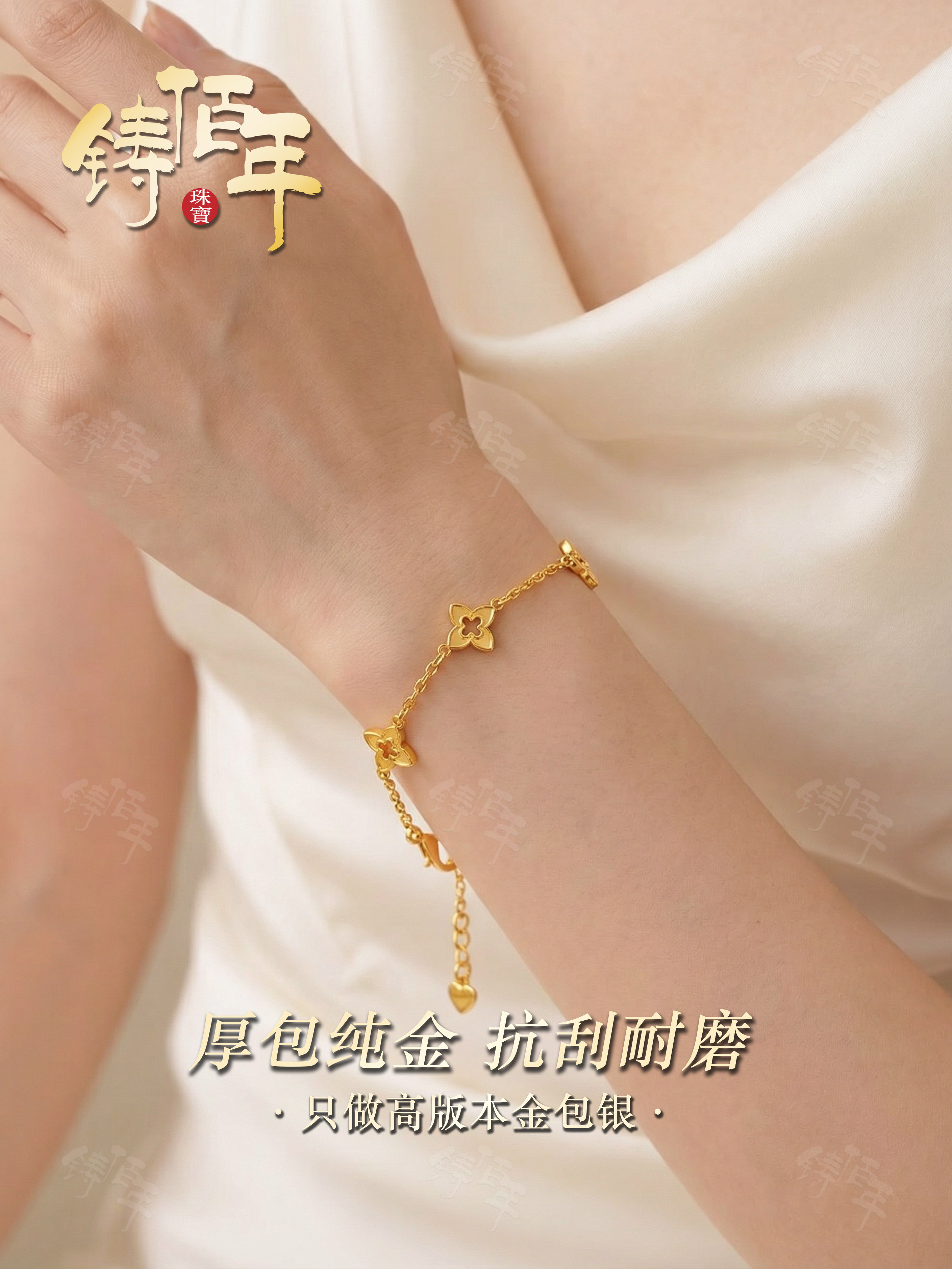 Starlight and Sparkling Bracelet, Gold-Covered Silver Presbyopic Four-Leaf Clover for Women, Retro and Exquisite Design, Simple and Versatile