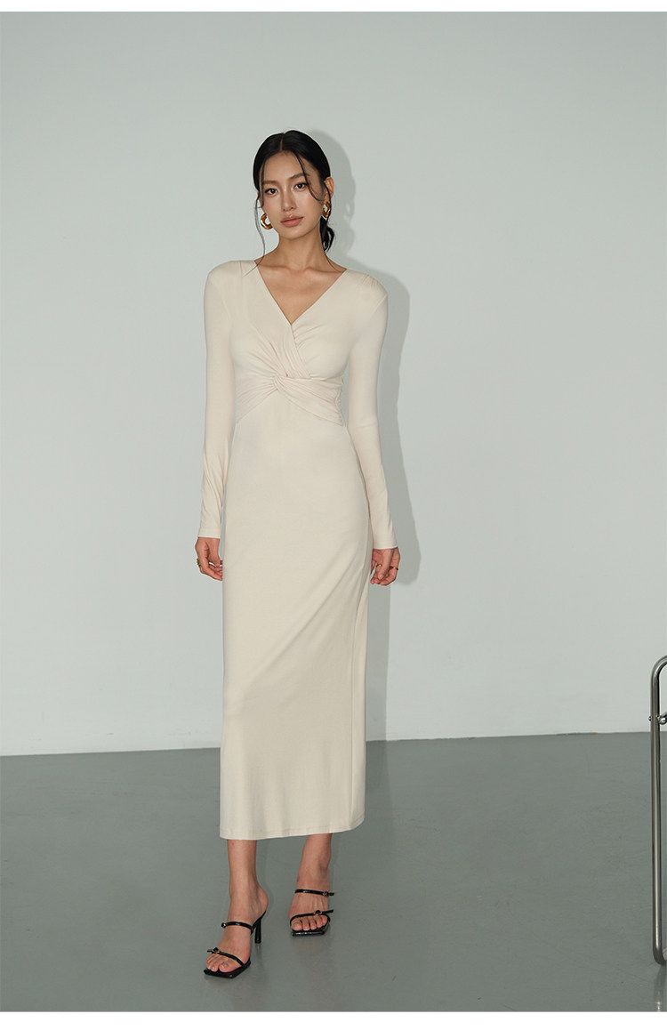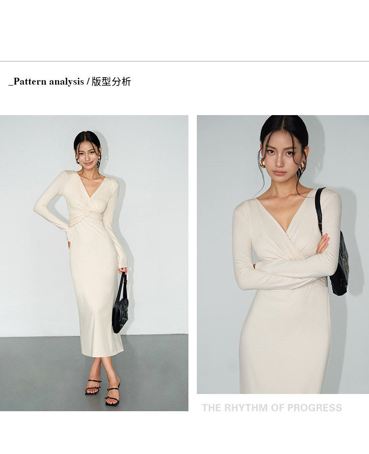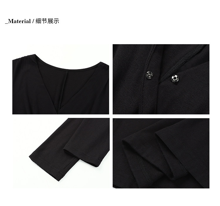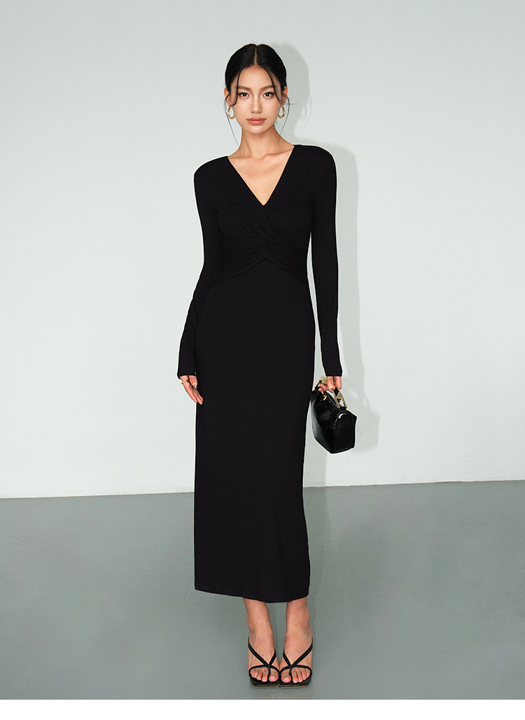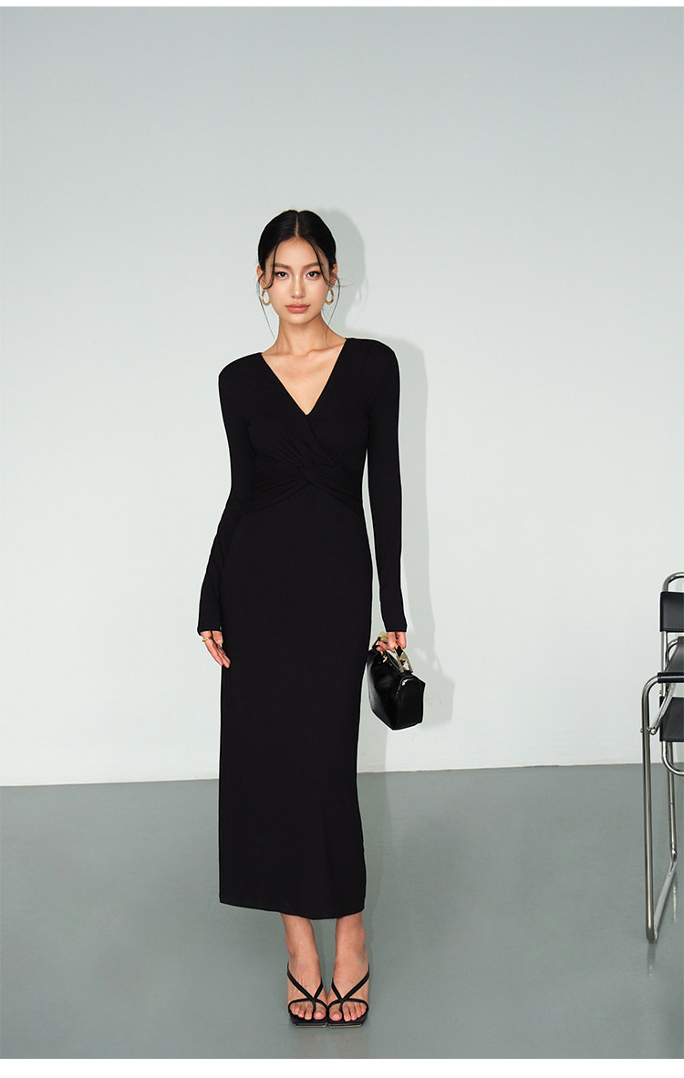 Neva Hu Black French V Neck Long-Sleeved Dress for Women with a Niche Design, Slim Fit and Elegant Hip-Hugging Long Skirt