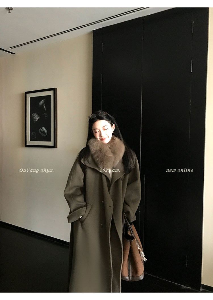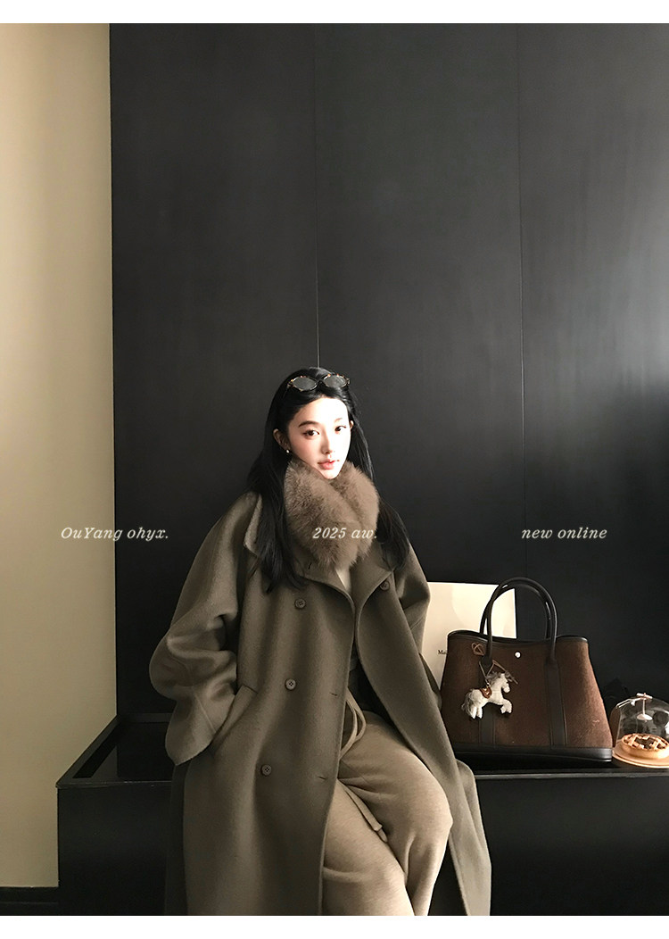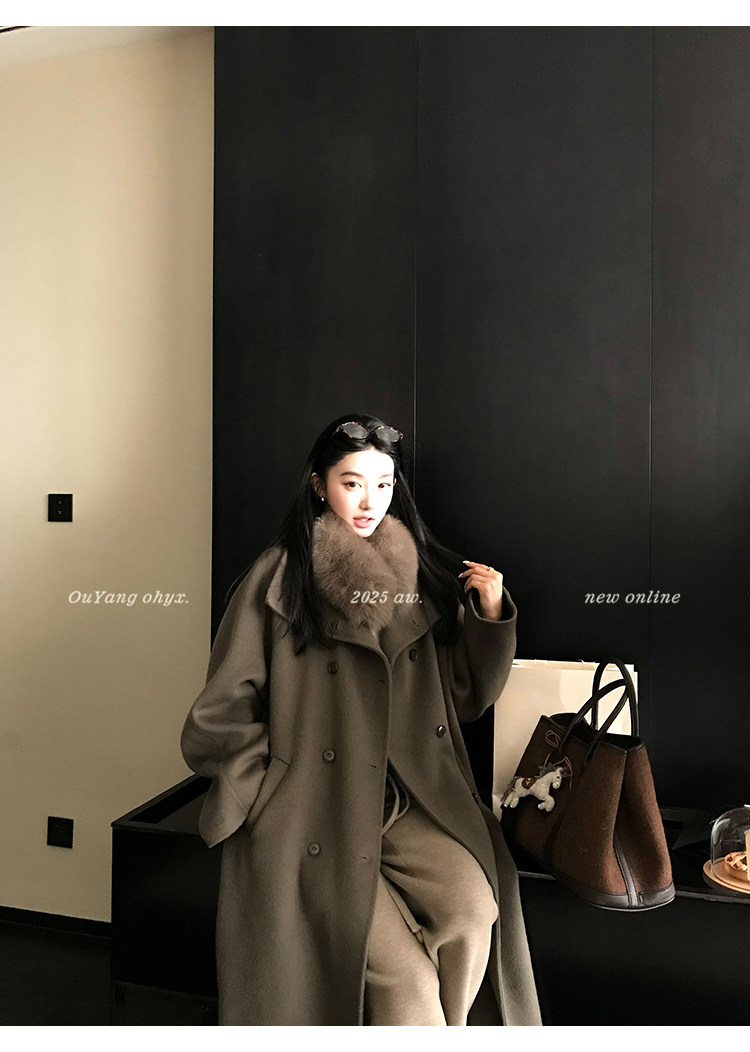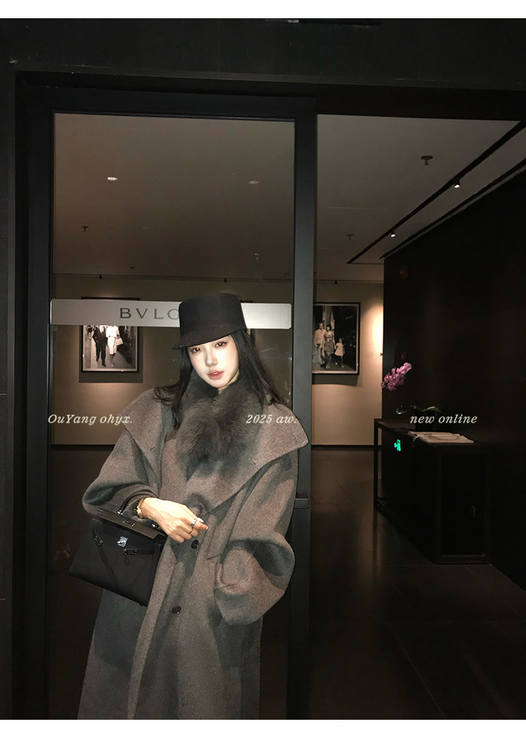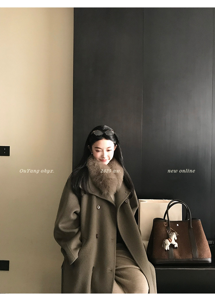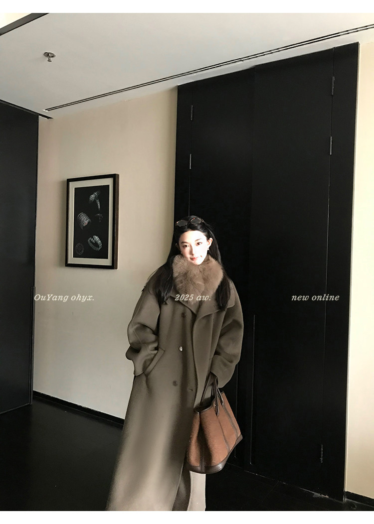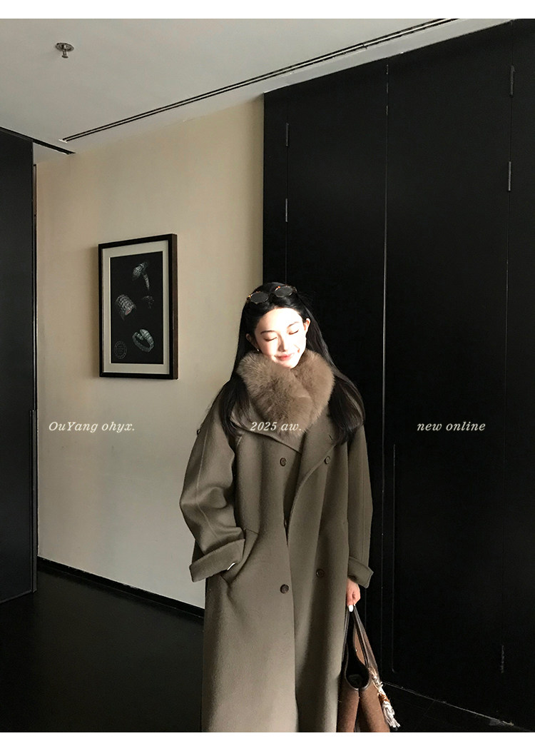 Ouyang Nanhan's Luxurious Coat! Luxurious 900g Wool Double-Sided Woolen Coat with Fox Fur Collar