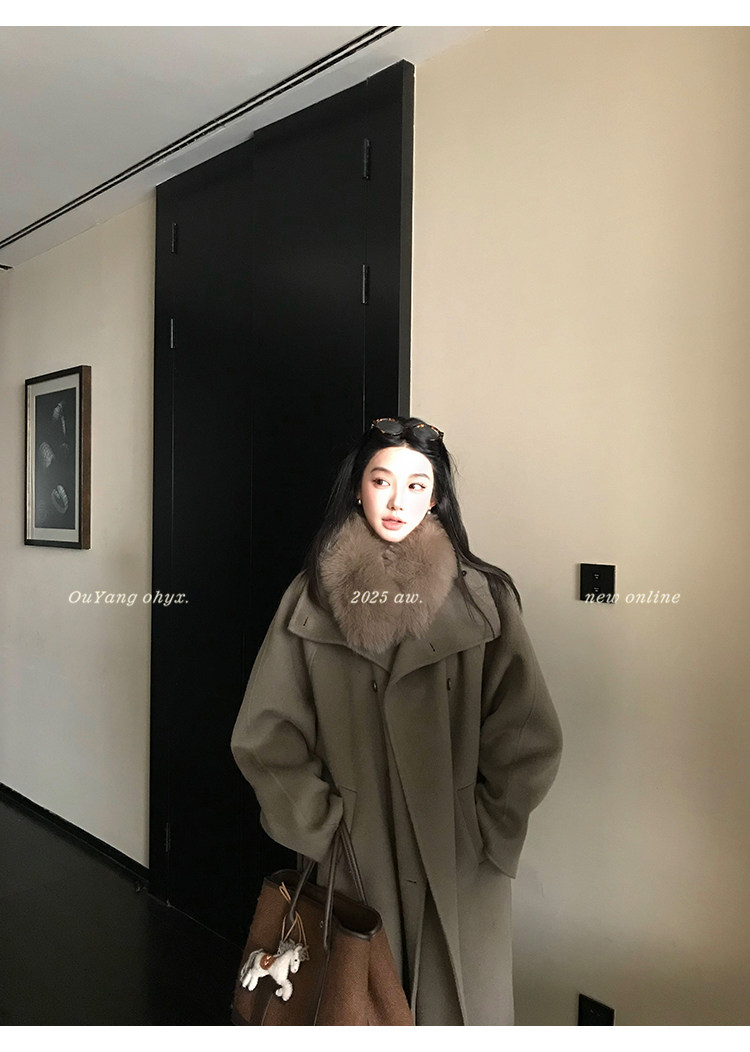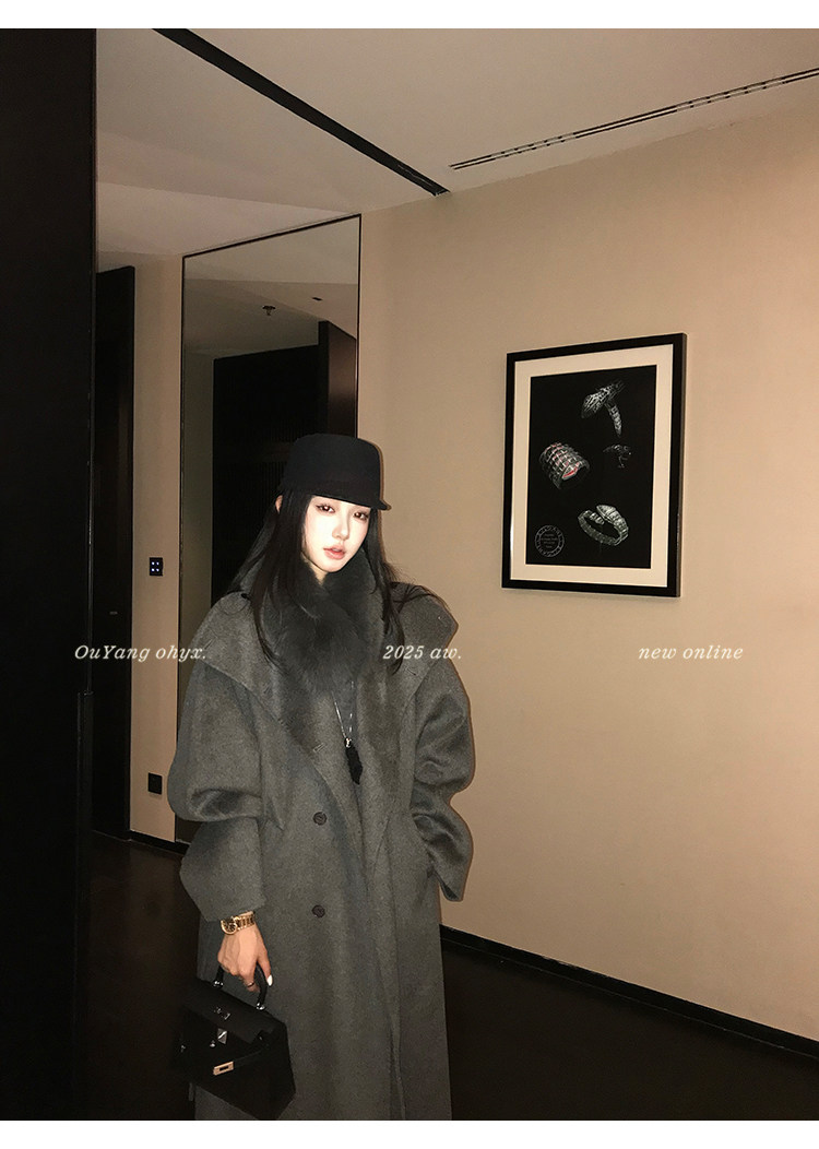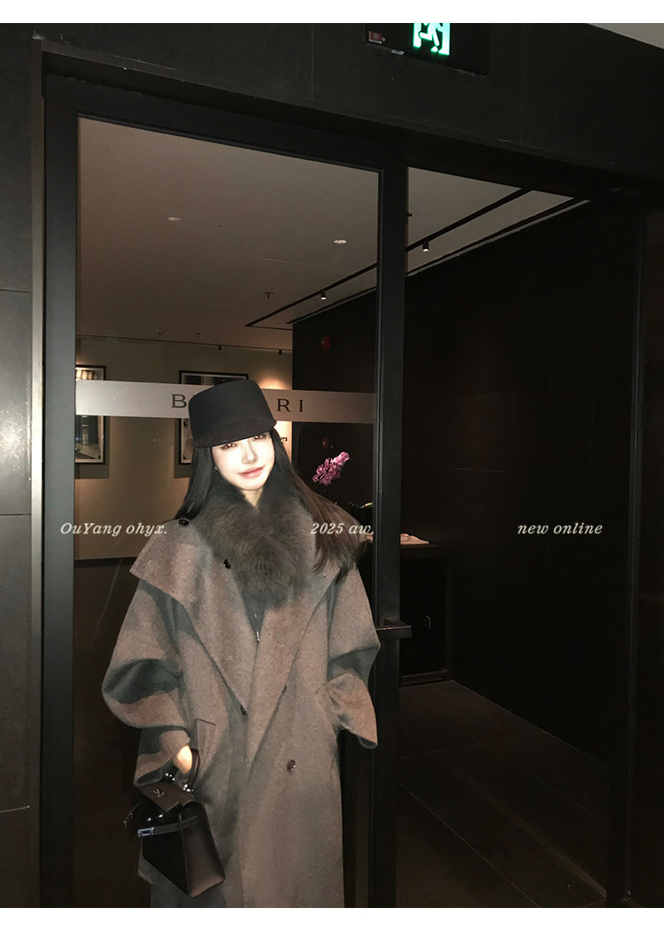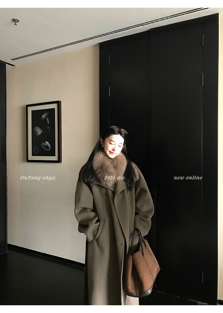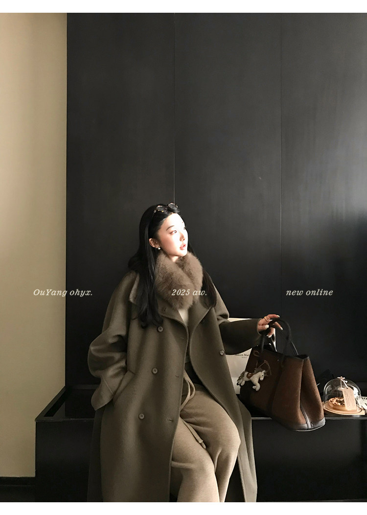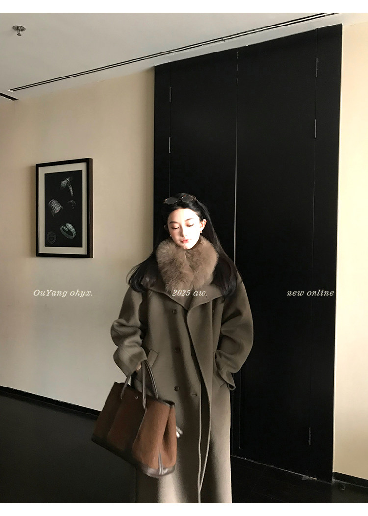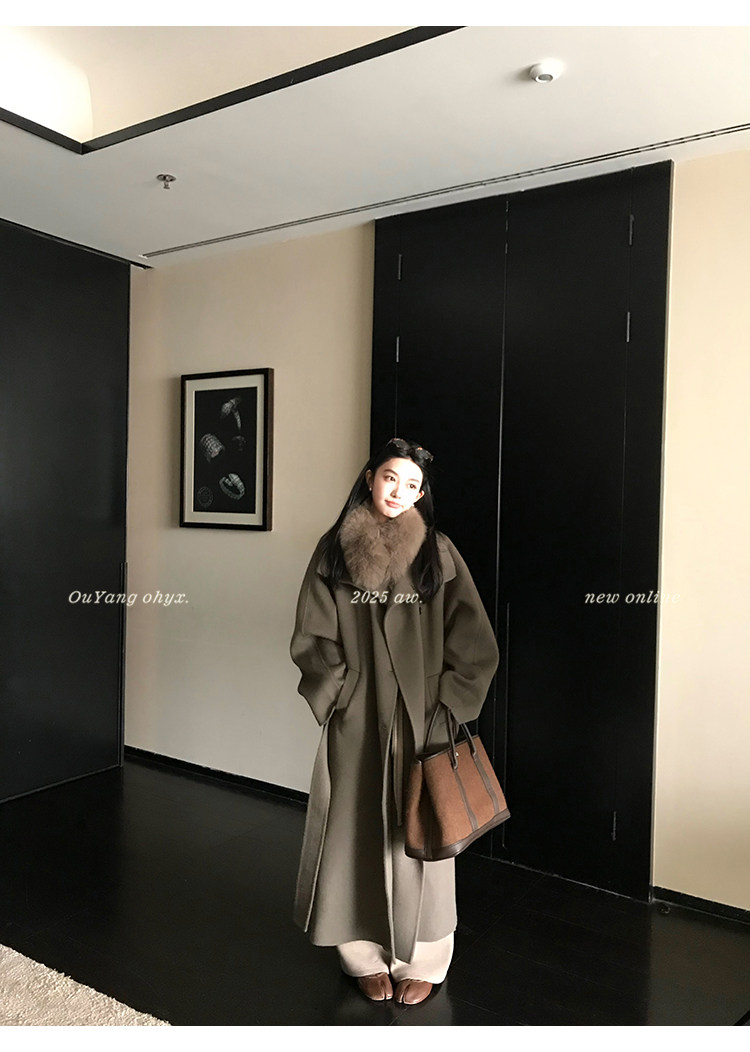 Ouyang Nanhan's Luxurious Coat! Luxurious 900g Wool Double-Sided Woolen Coat with Fox Fur Collar