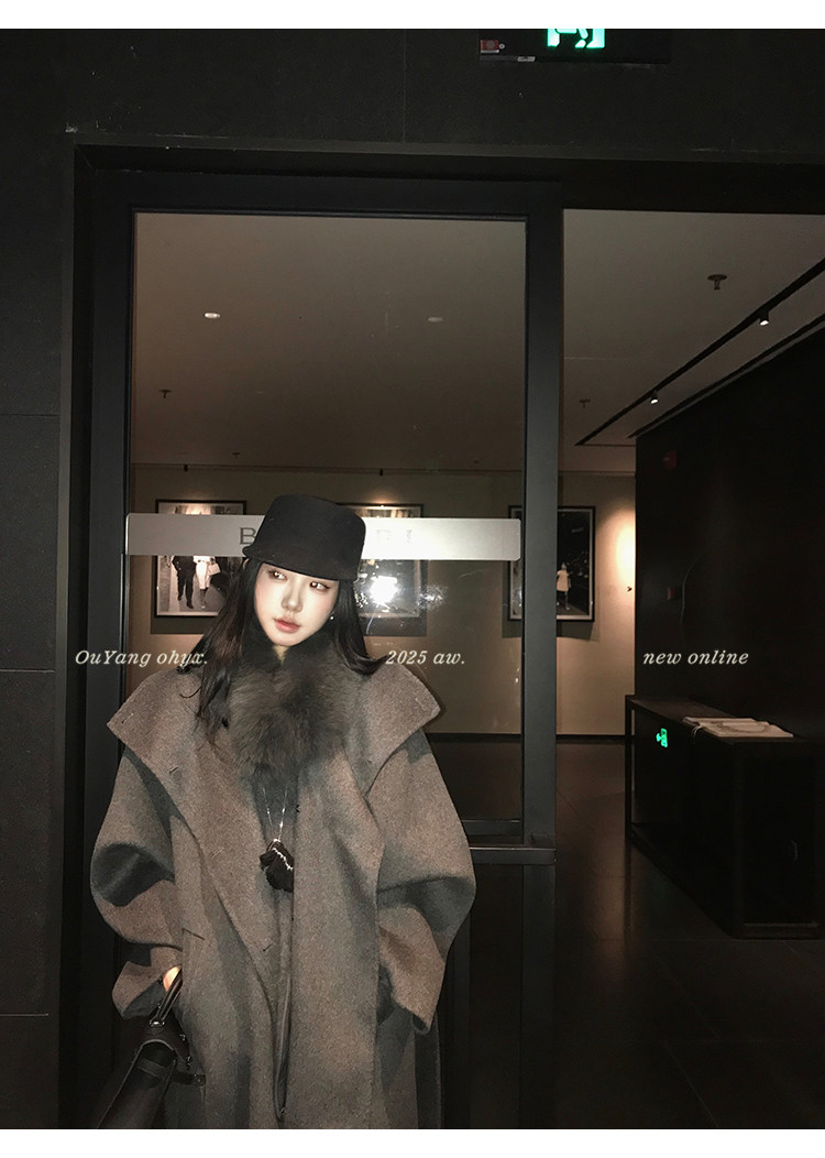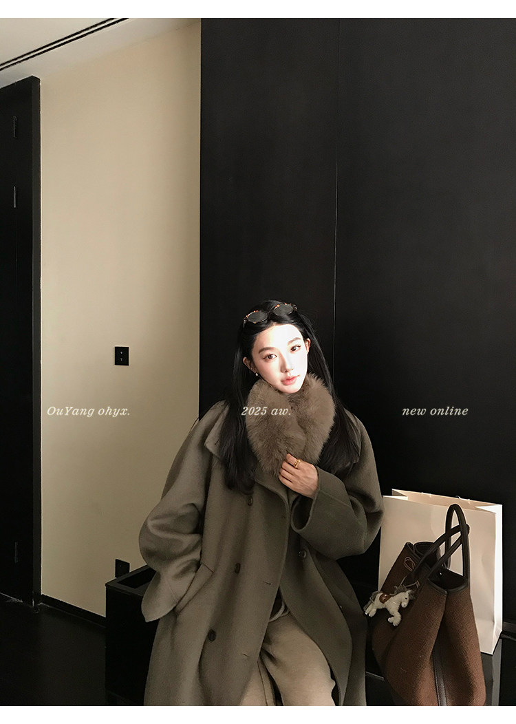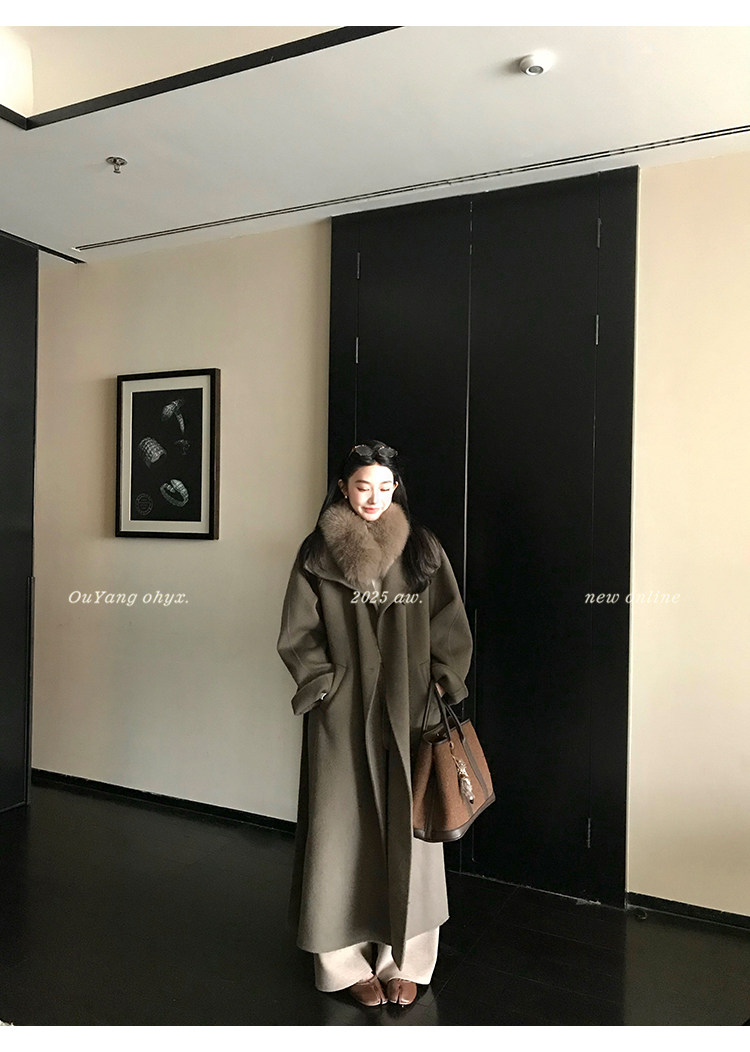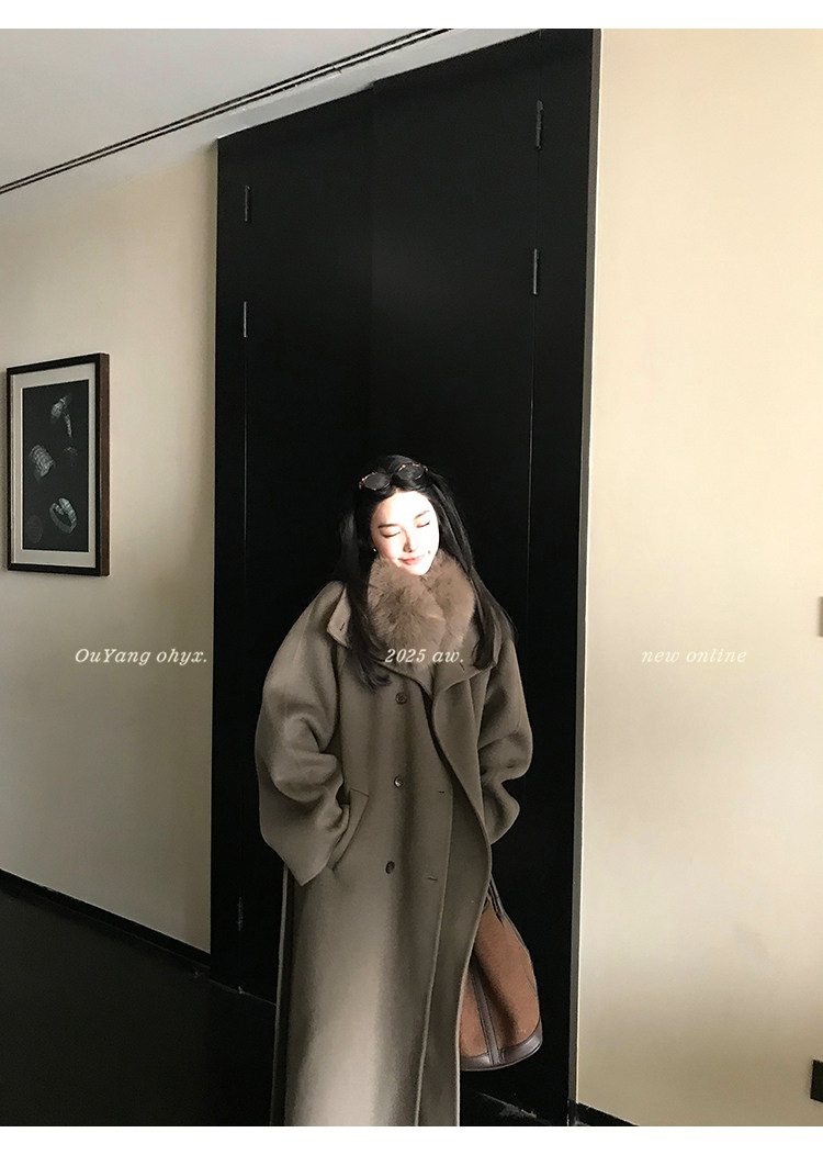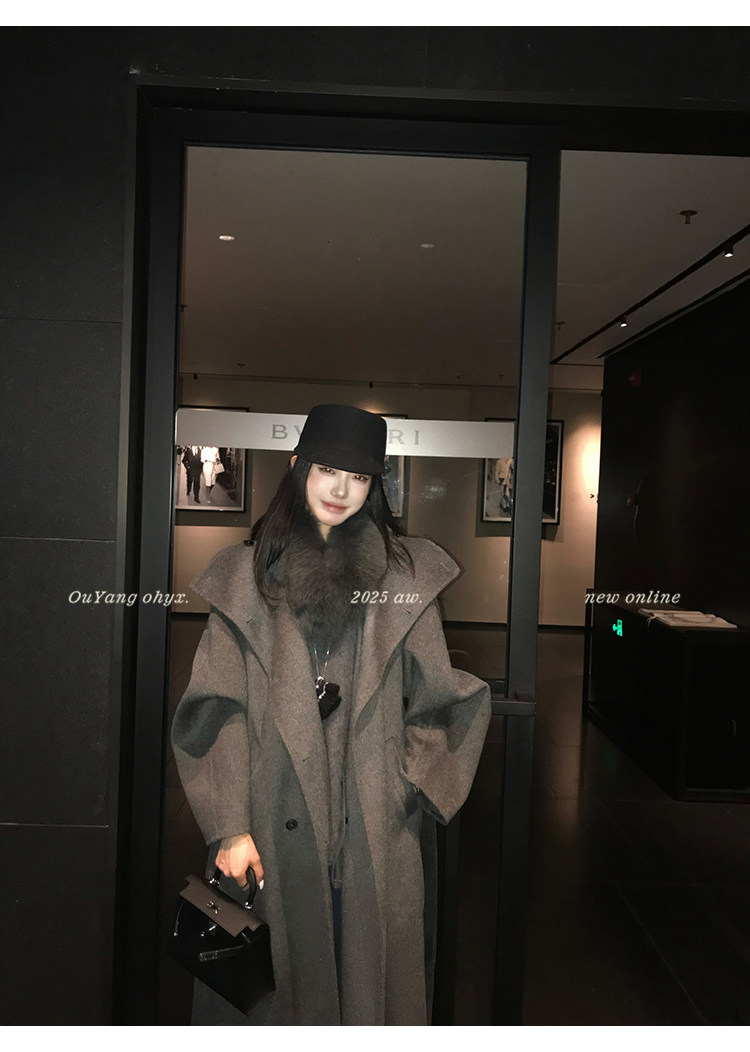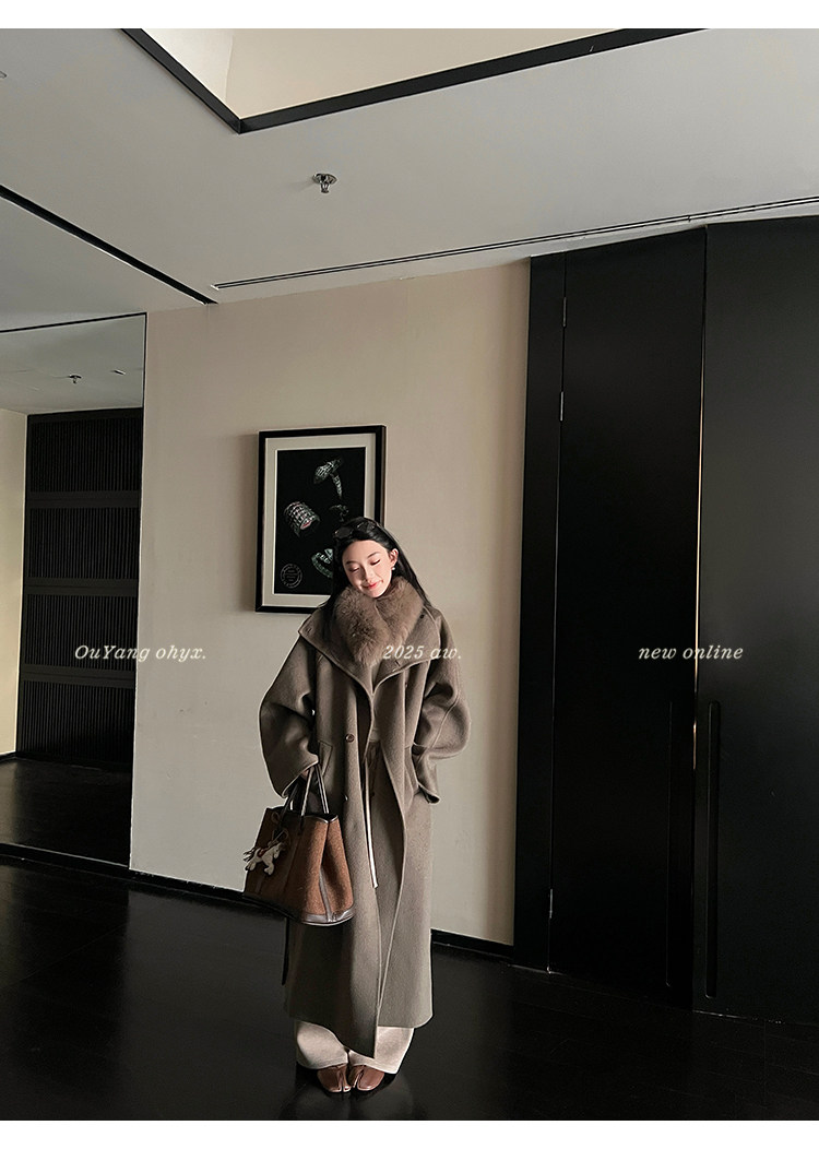 Ouyang Nanhan's Luxurious Coat! Luxurious 900g Wool Double-Sided Woolen Coat with Fox Fur Collar