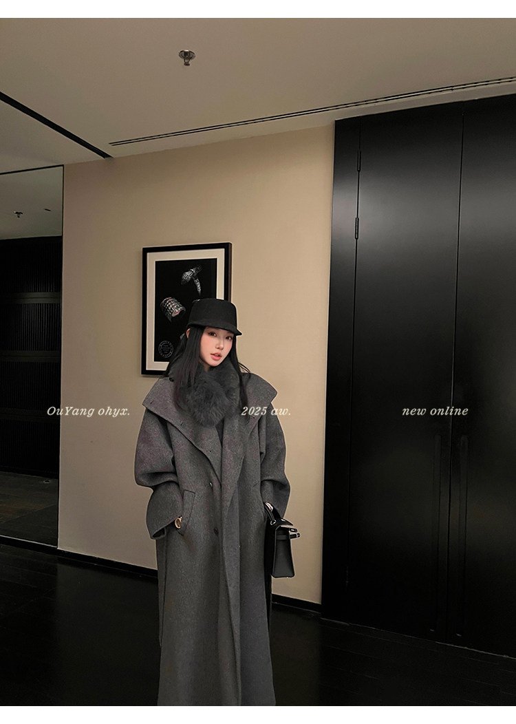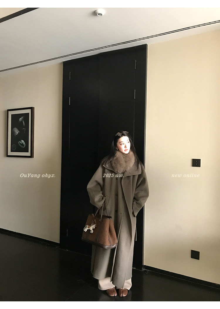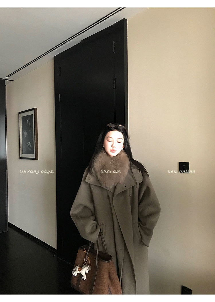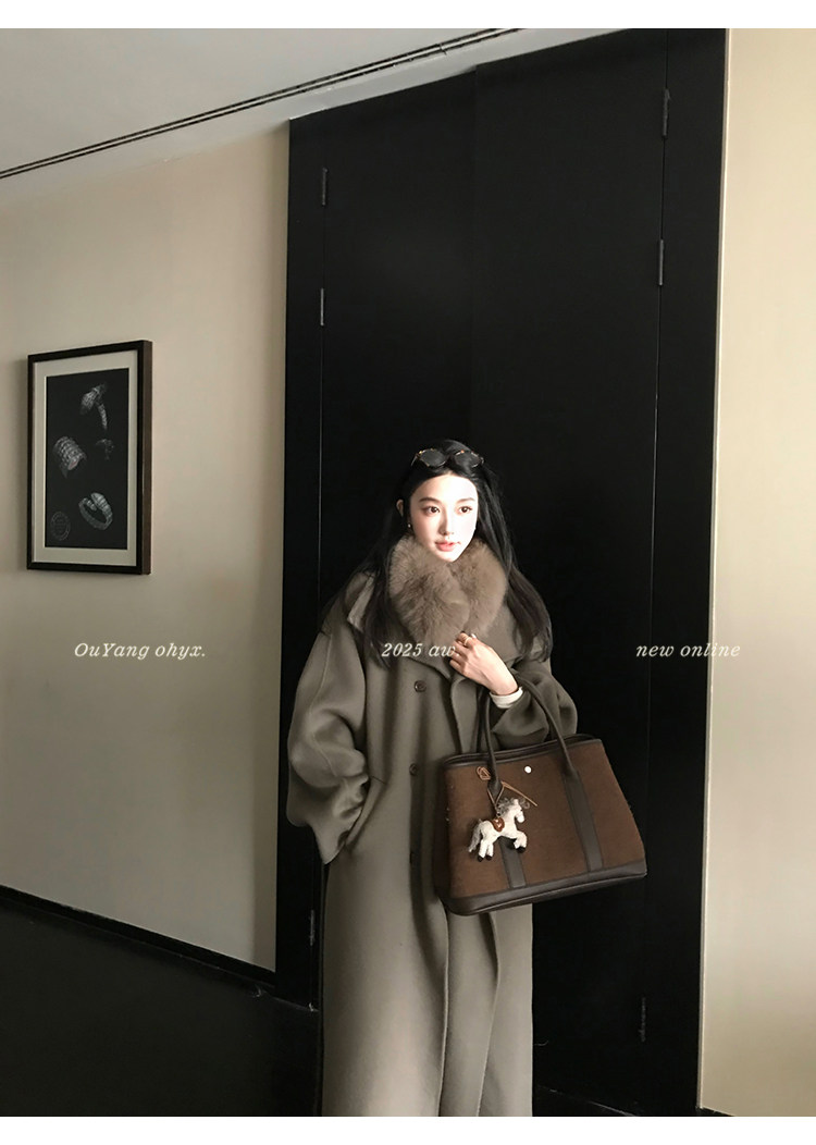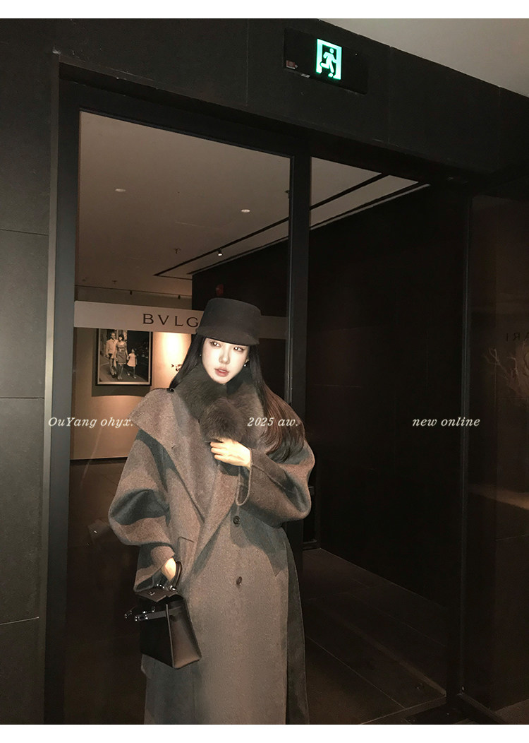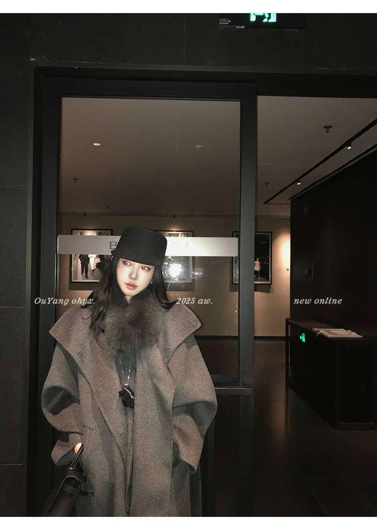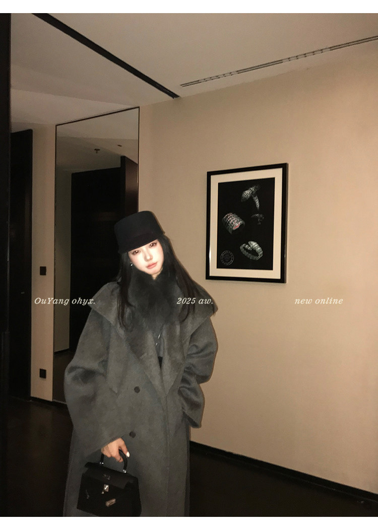 Ouyang Nanhan's Luxurious Coat! Luxurious 900g Wool Double-Sided Woolen Coat with Fox Fur Collar