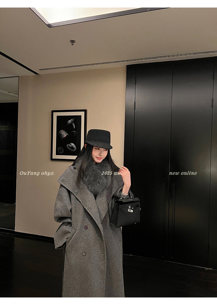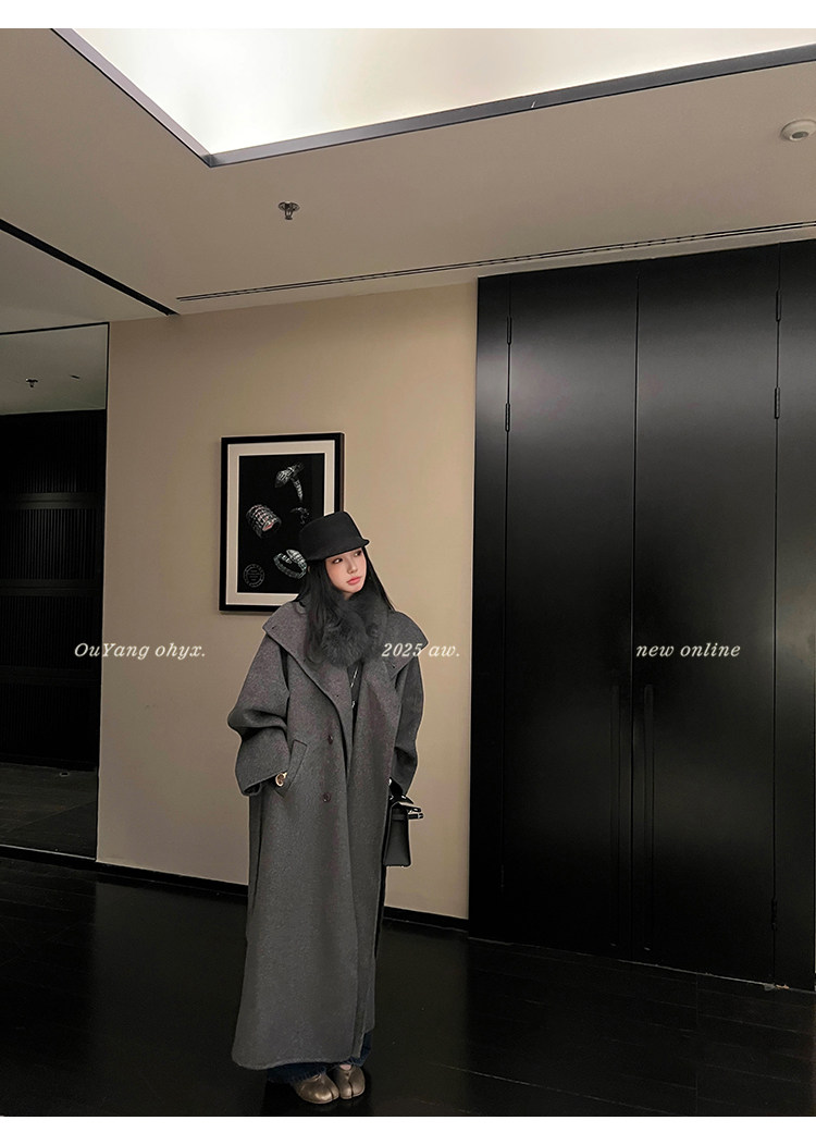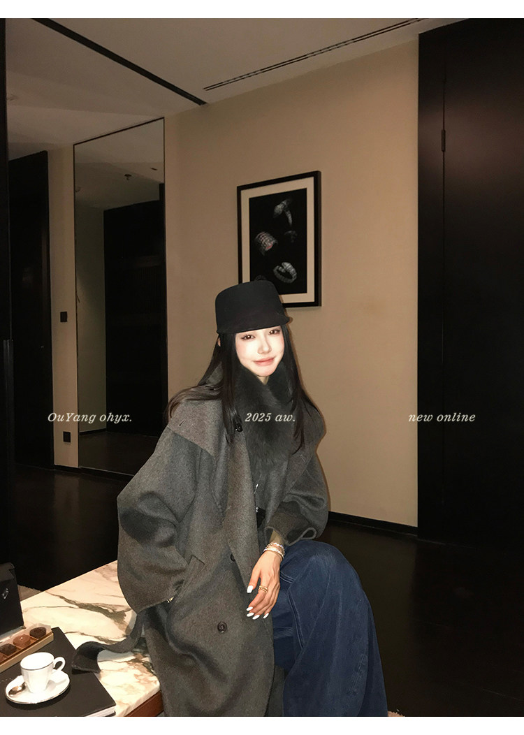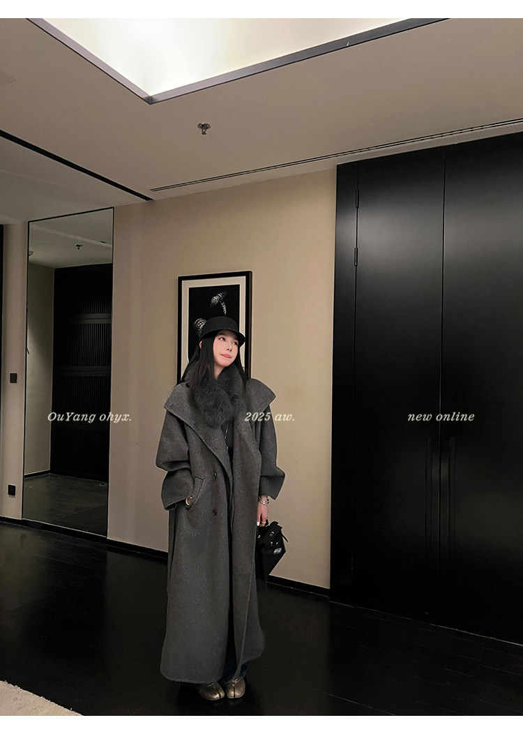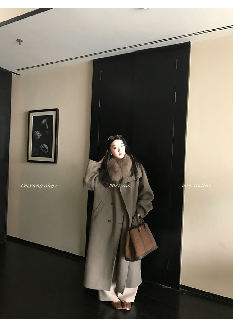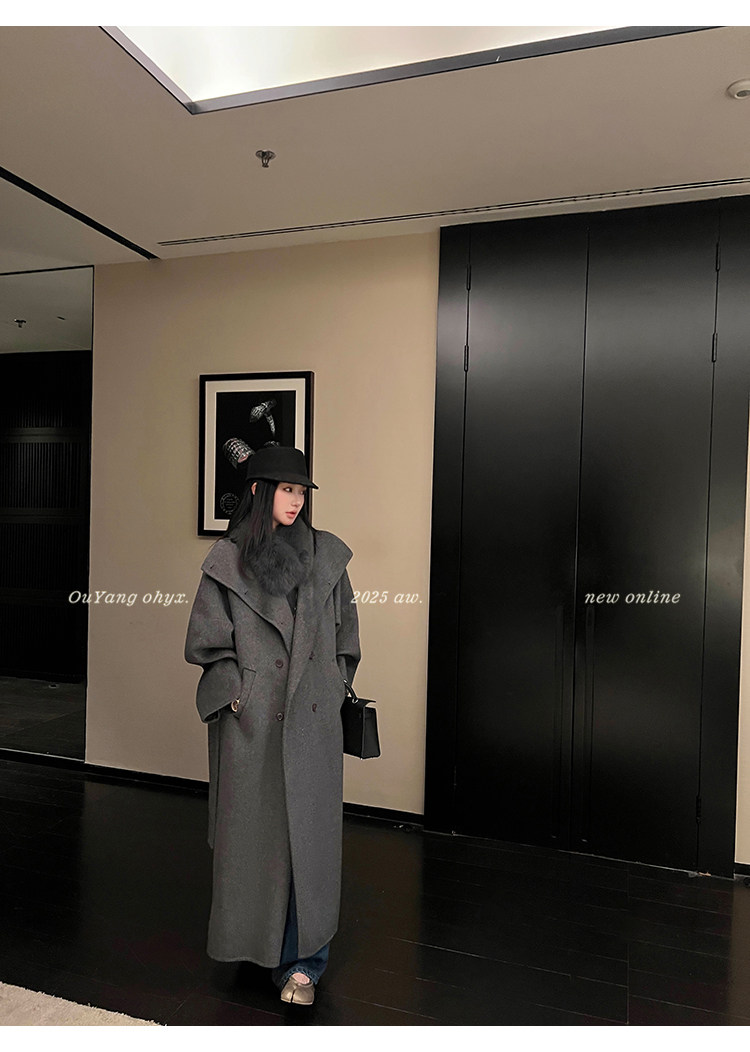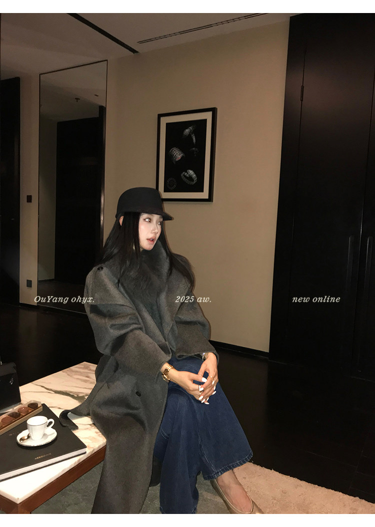 Ouyang Nanhan's Luxurious Coat! Luxurious 900g Wool Double-Sided Woolen Coat with Fox Fur Collar