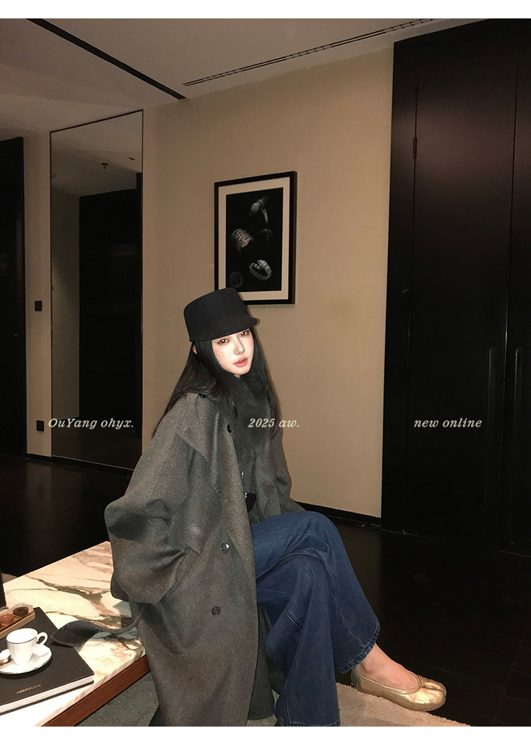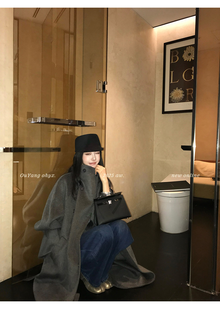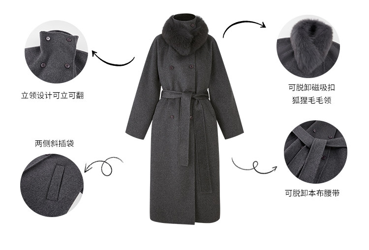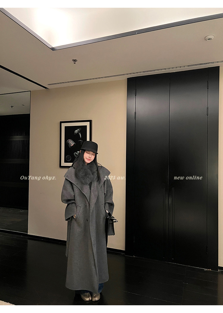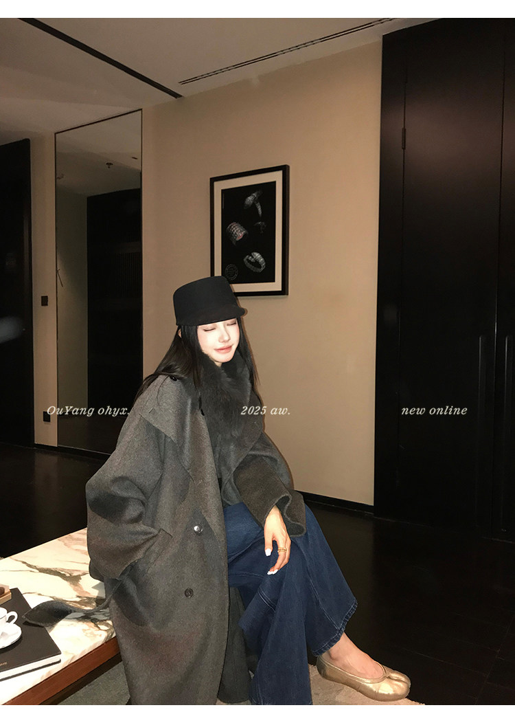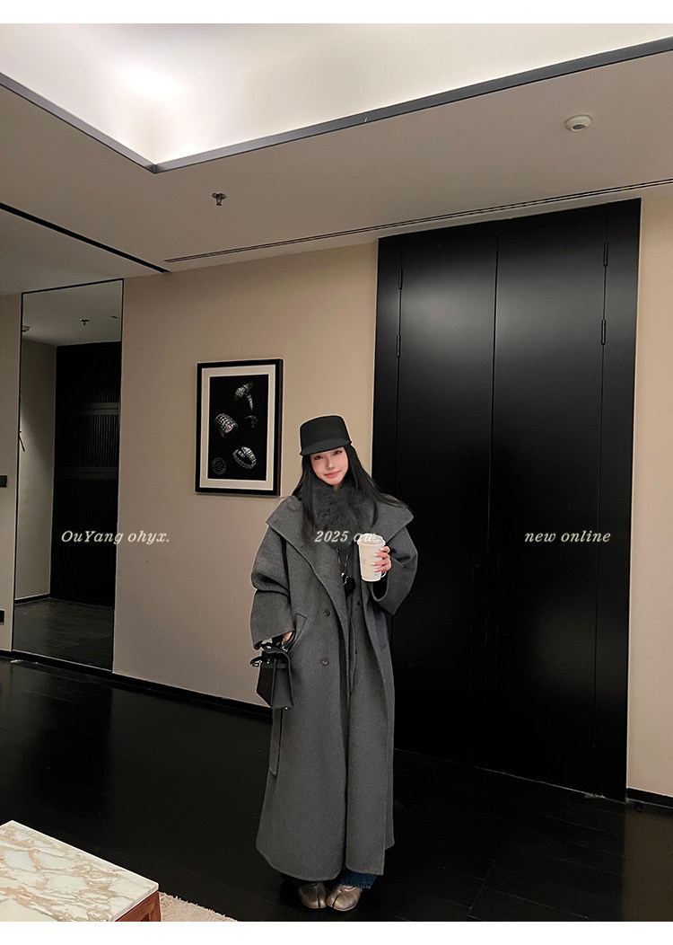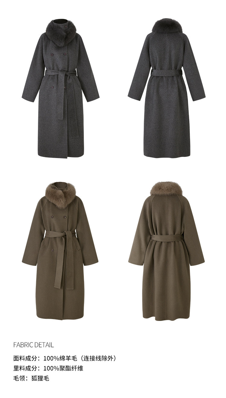 Ouyang Nanhan's Luxurious Coat! Luxurious 900g Wool Double-Sided Woolen Coat with Fox Fur Collar