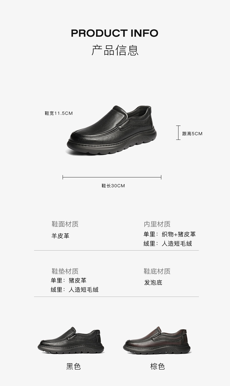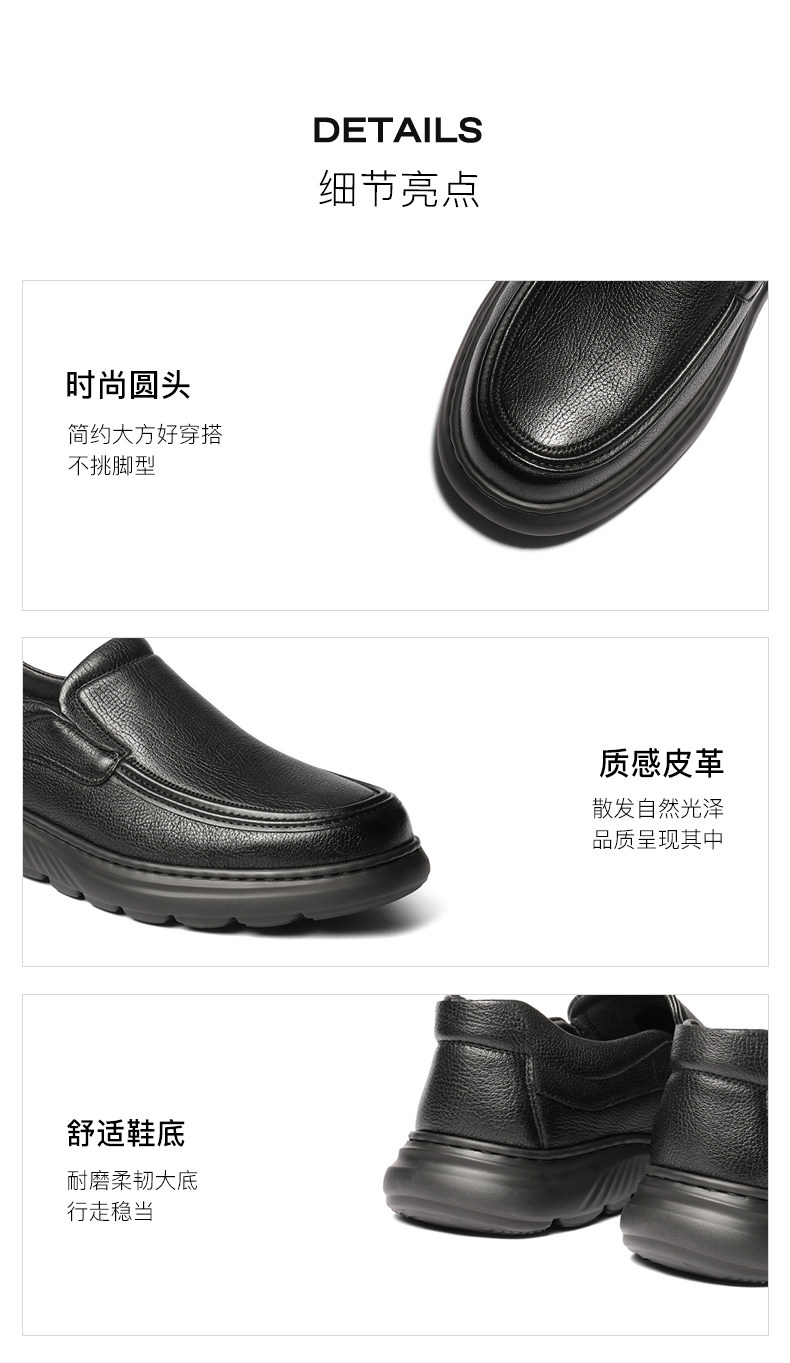 Belle Men's Slip-On Height-Increasing Casual Business Leather Shoes Spring New Style Sheepskin Thick-Soled Dad Shoes 8Yg01Dm5