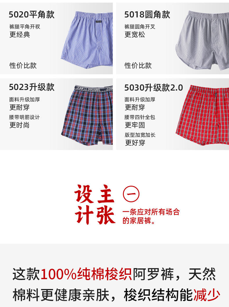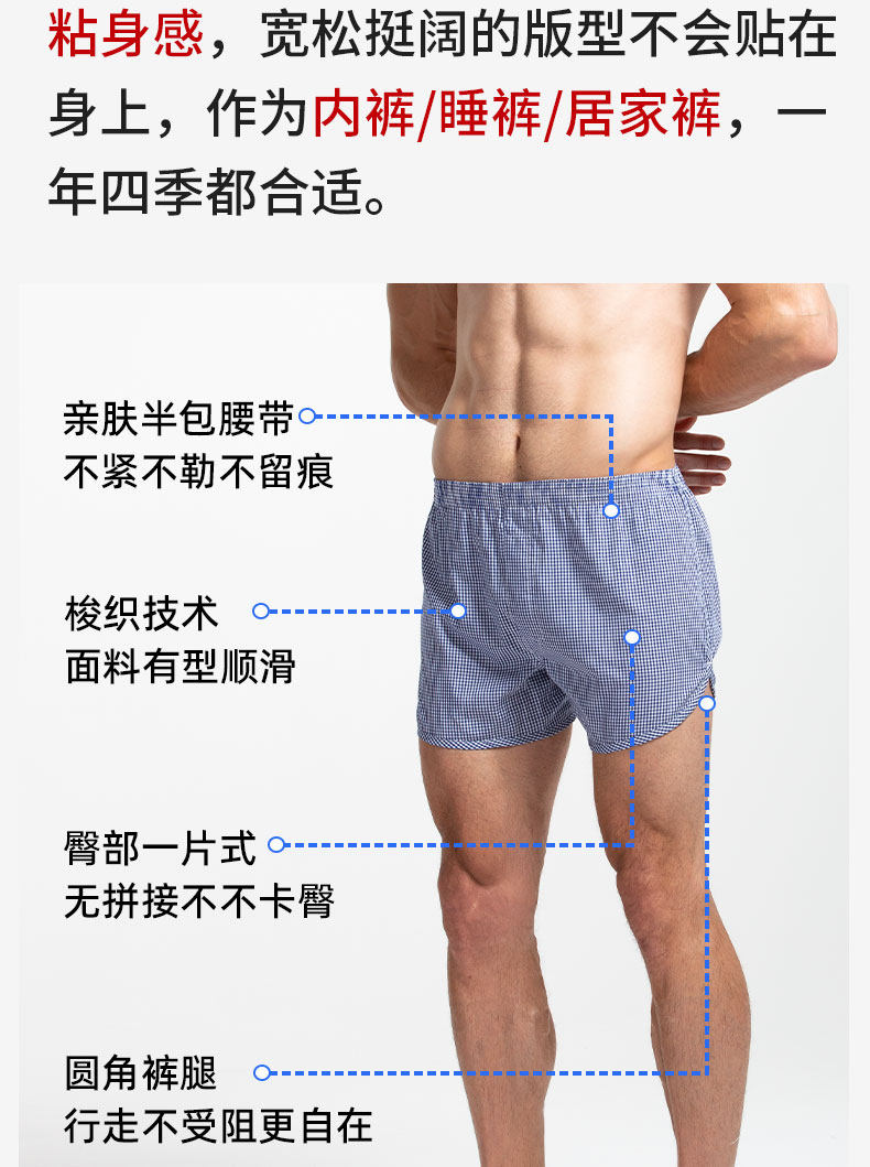 Jianlishuang Men's Cotton Loose Boxer Shorts, Men's Four-Corner Shorts, Sleep Shorts, Haro Pants, Large Size