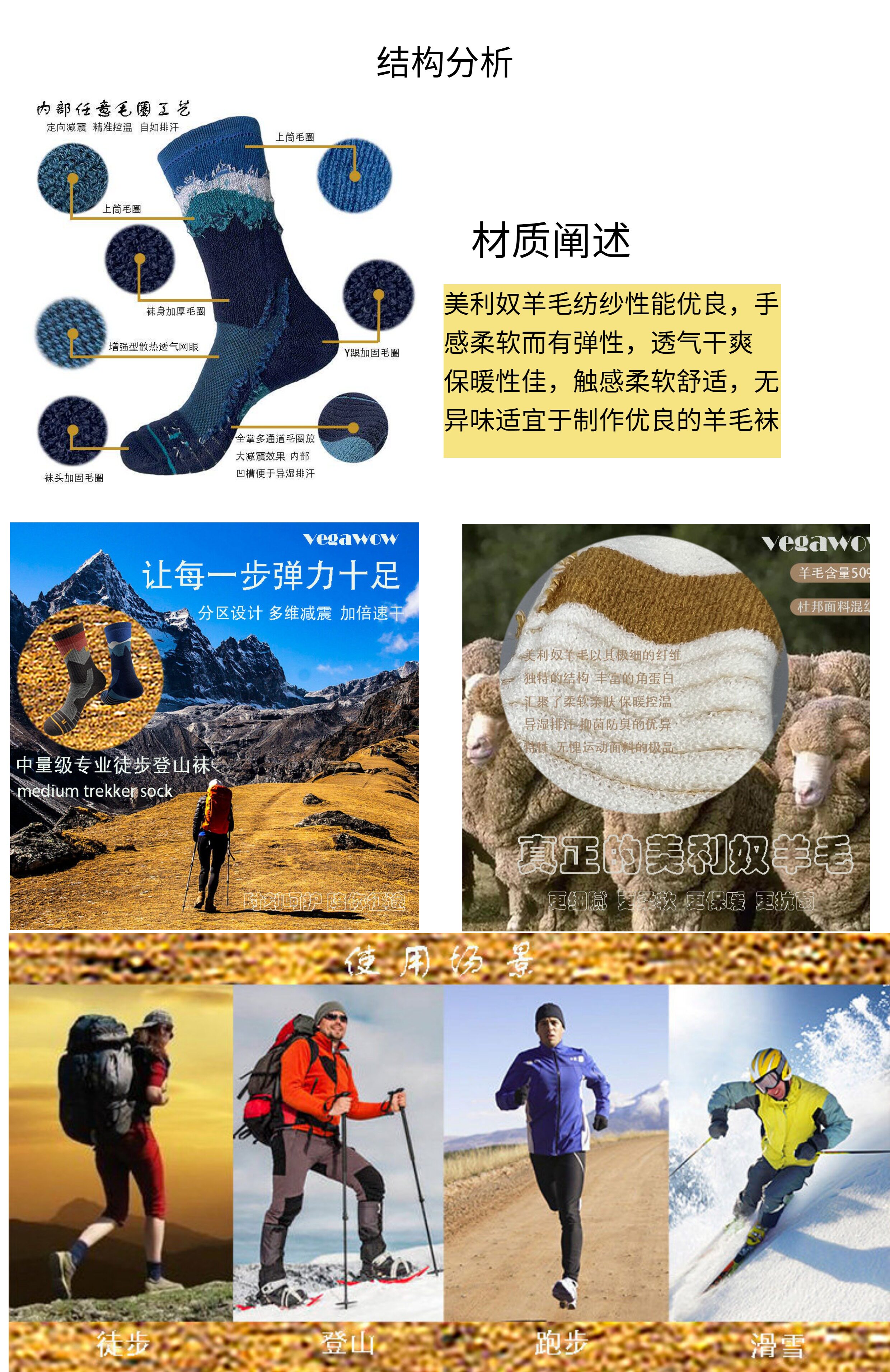 Merino Wool Hiking, Skiing, Professional Outdoor Sports Mid-Calf Anti-Odor Warm Socks