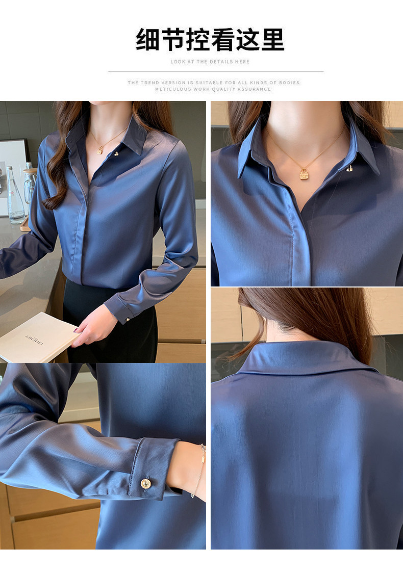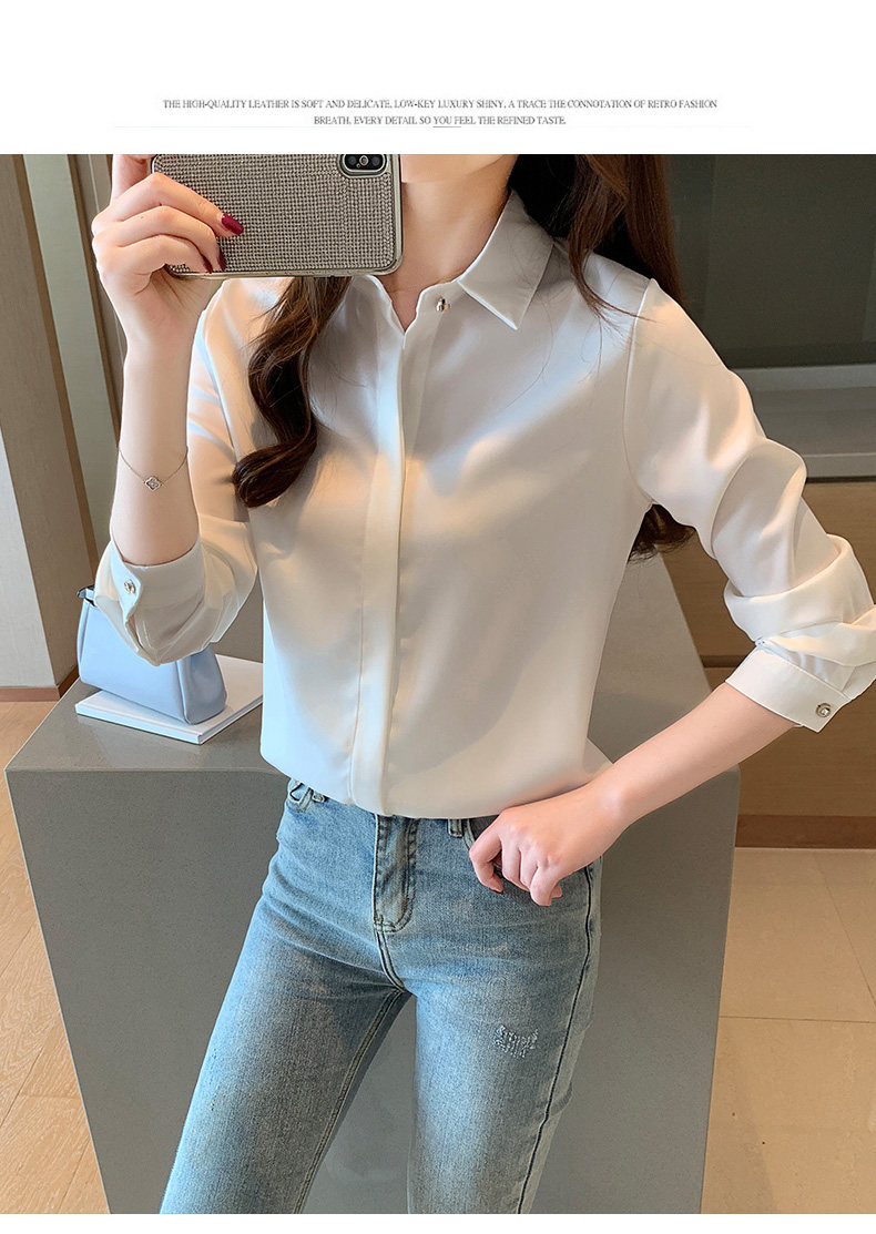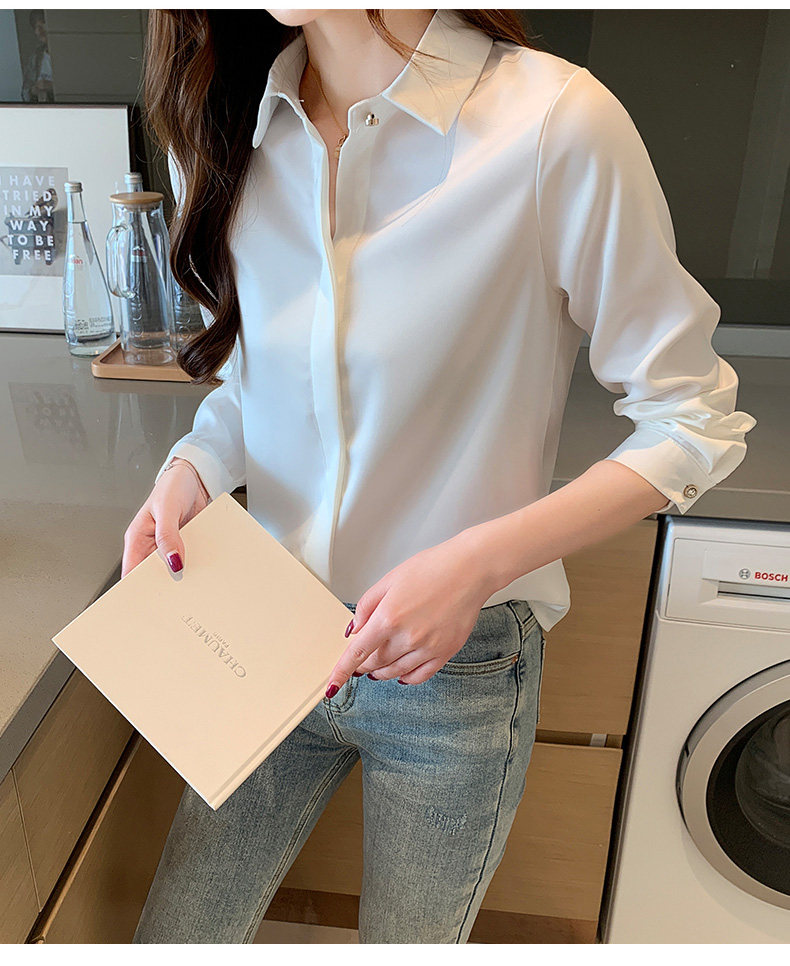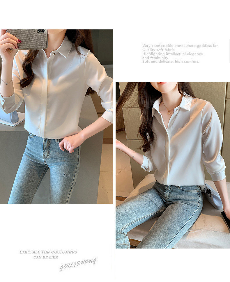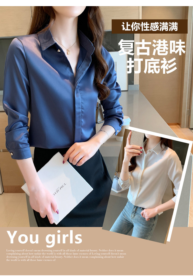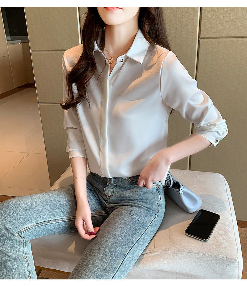 Professional Formal Satin White Shirt for Women, Spring and Autumn Fashion, Stylish, High-End, Elegant, Goddess Style, Long-Sleeved Shirt, Wrinkle-Resistant