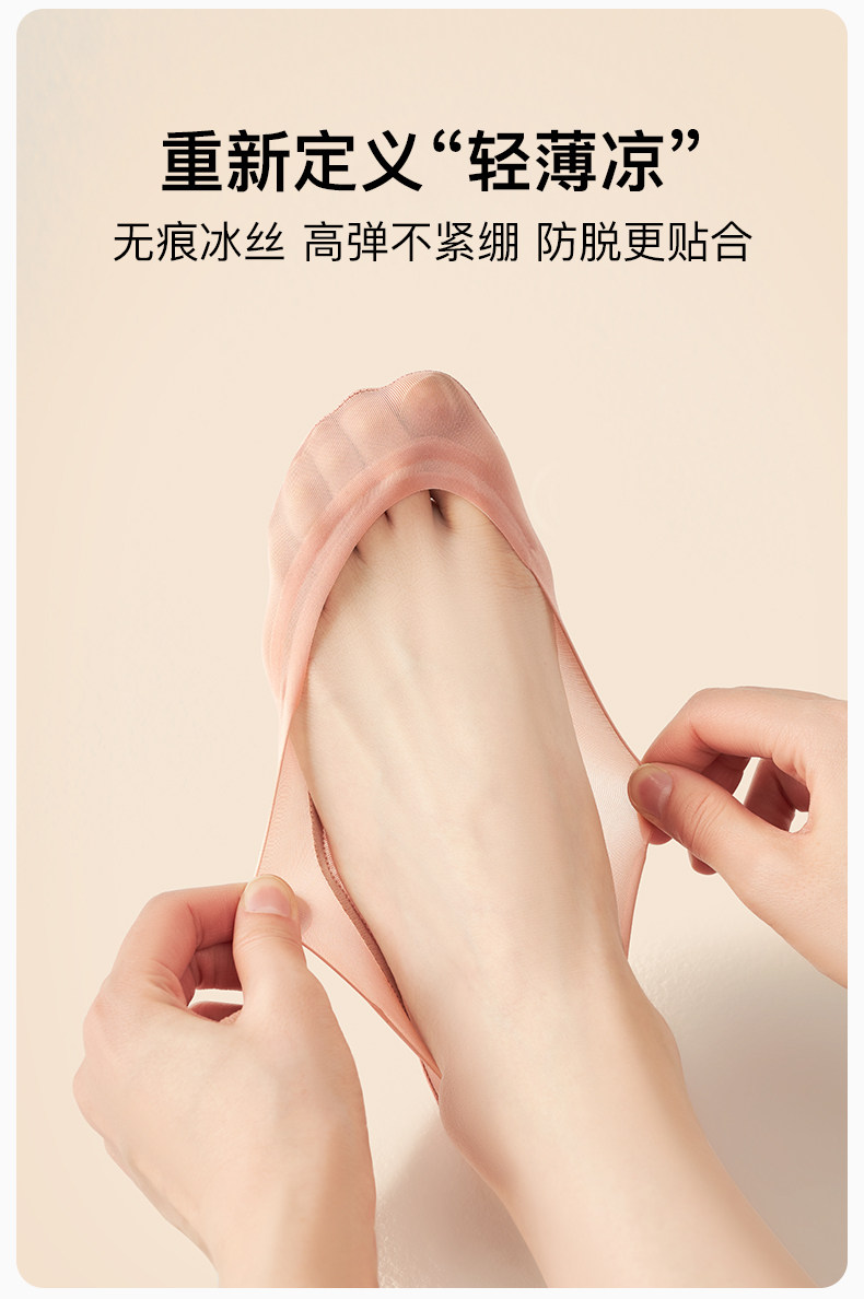 Ultra-Invisible Boat Socks for Women, Summer Cool Socks, Thin Ice Silk Low-Cut Socks, Anti-Slip with Double Silicone, Non-Slip and Won'T Slip Off