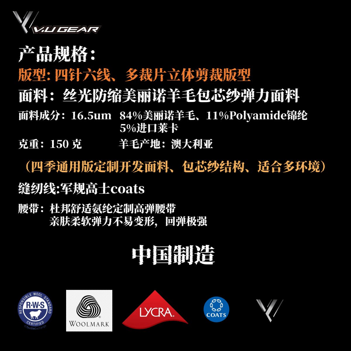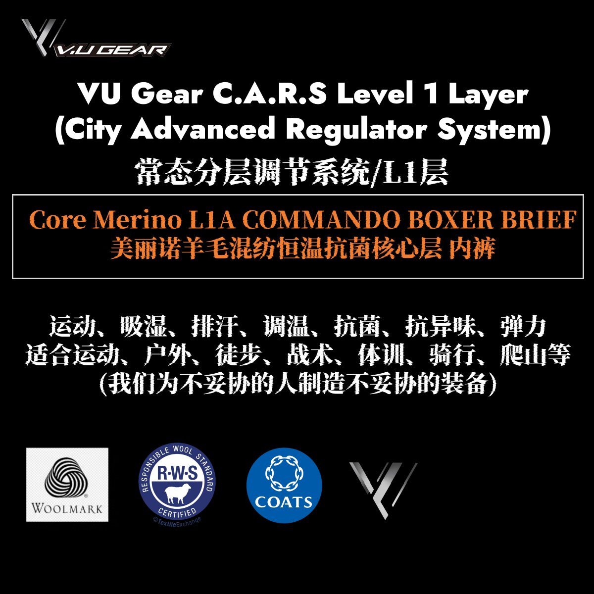V.U Gear C.A.R.S Level 1A Merino Wool Core Functional Antibacterial Sports Underwear