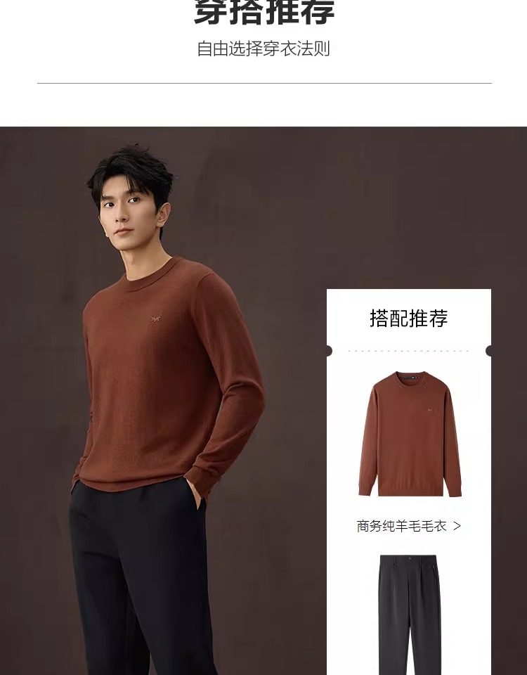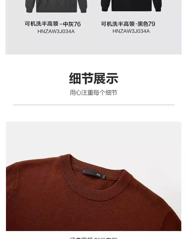 Hla/Hailan Home Light Business Pure Wool Long Sleeve Knit Sweater 25 Autumn/Winter New Black Sweater Base Layer for Men