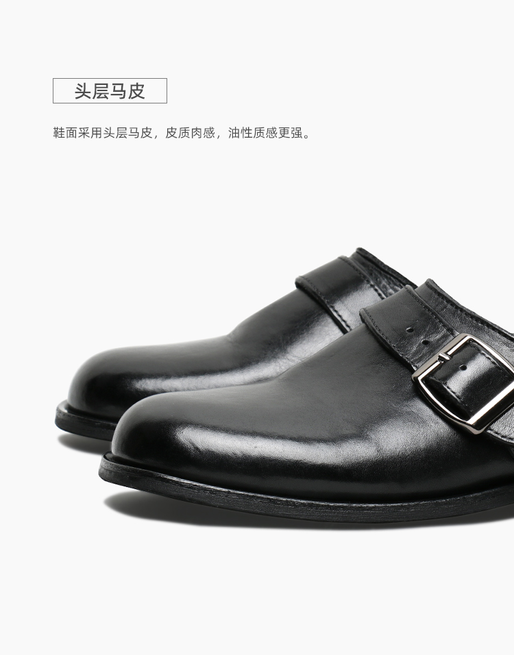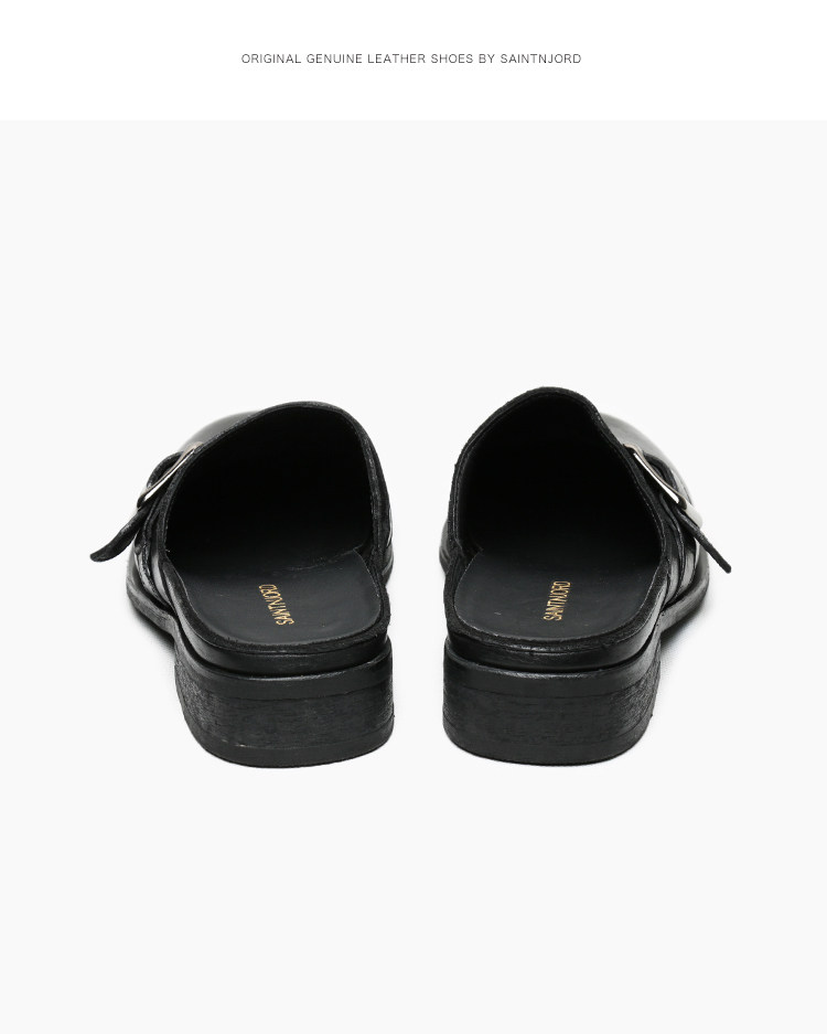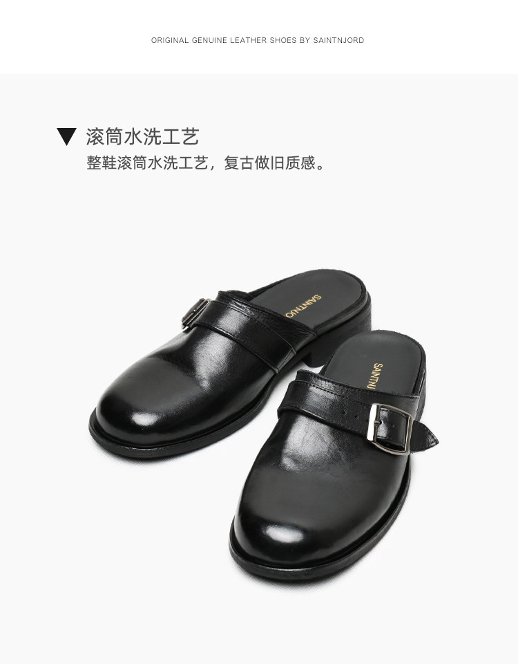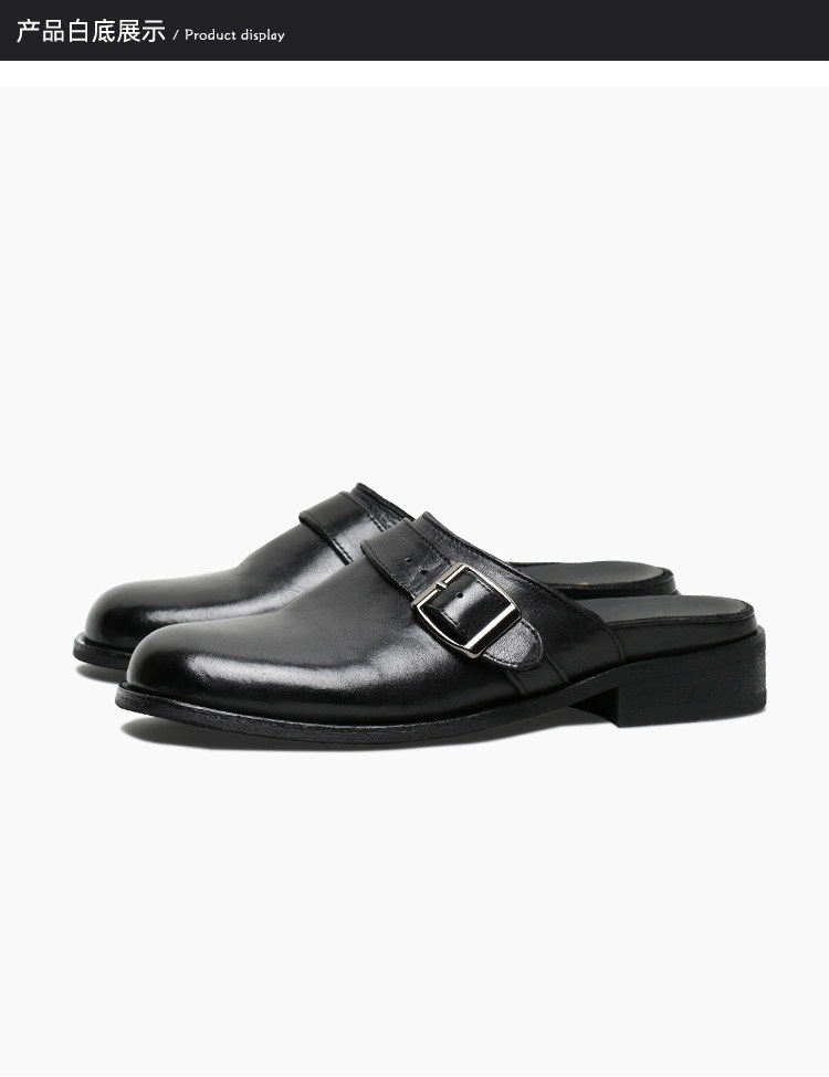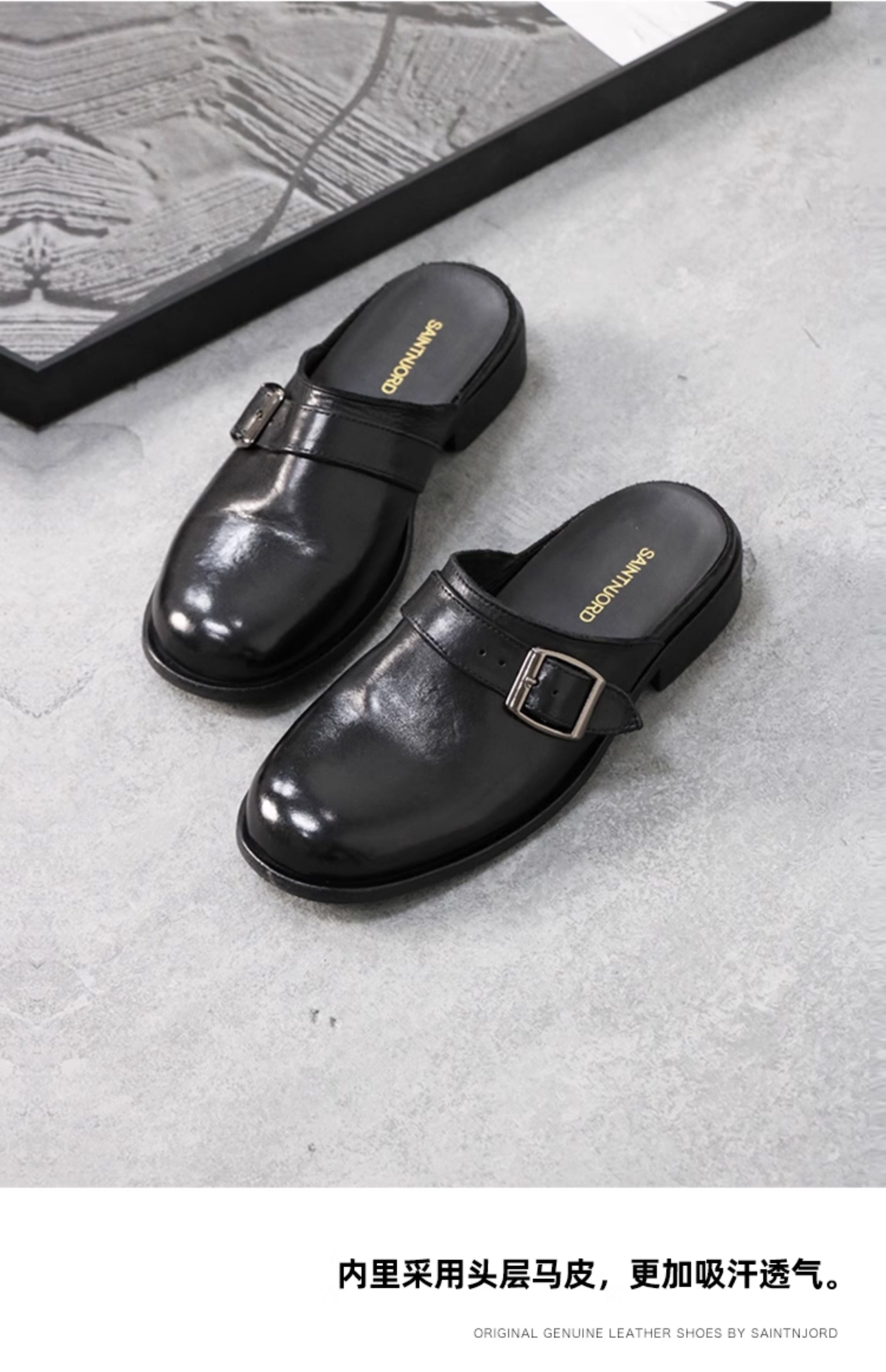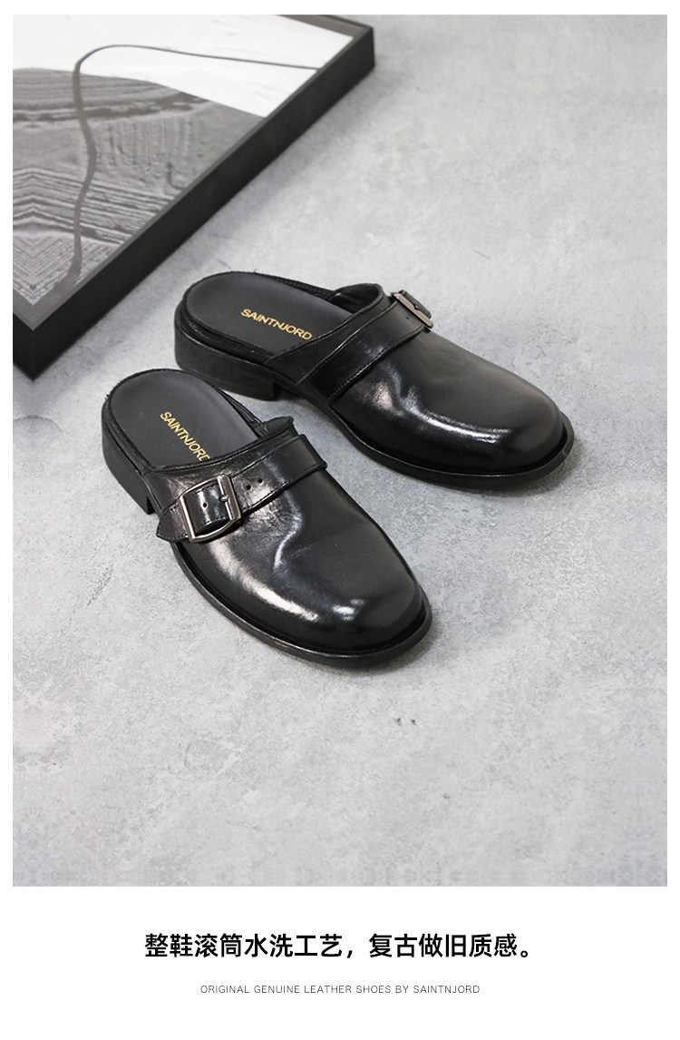 You100 Horse Leather Shoes, Summer Breathable Retro Washed Casual Men's Shoes, Closed-Toe Mules, Buckle Birkenstock-Style Half-Slippers