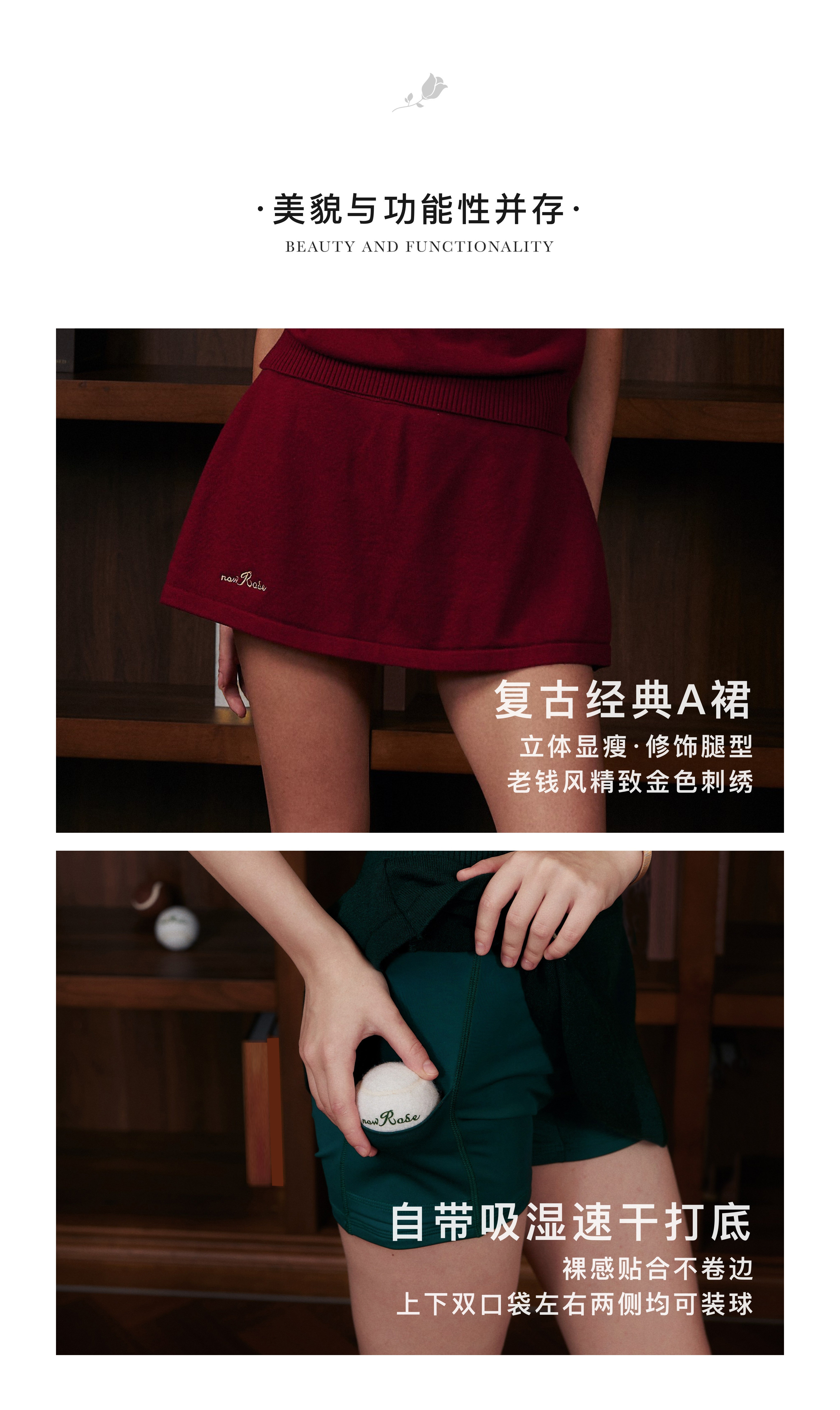Nowrose Official Autumn New Women's Retro Vintage Style Knitted Sports Tennis A-Line Skirt Golf Yoga Skirt