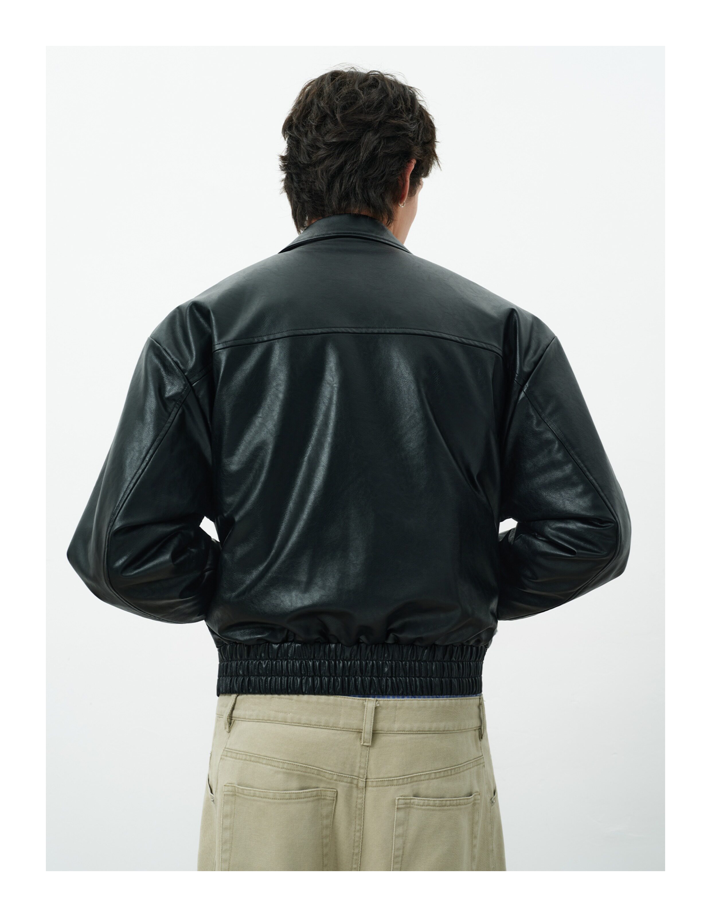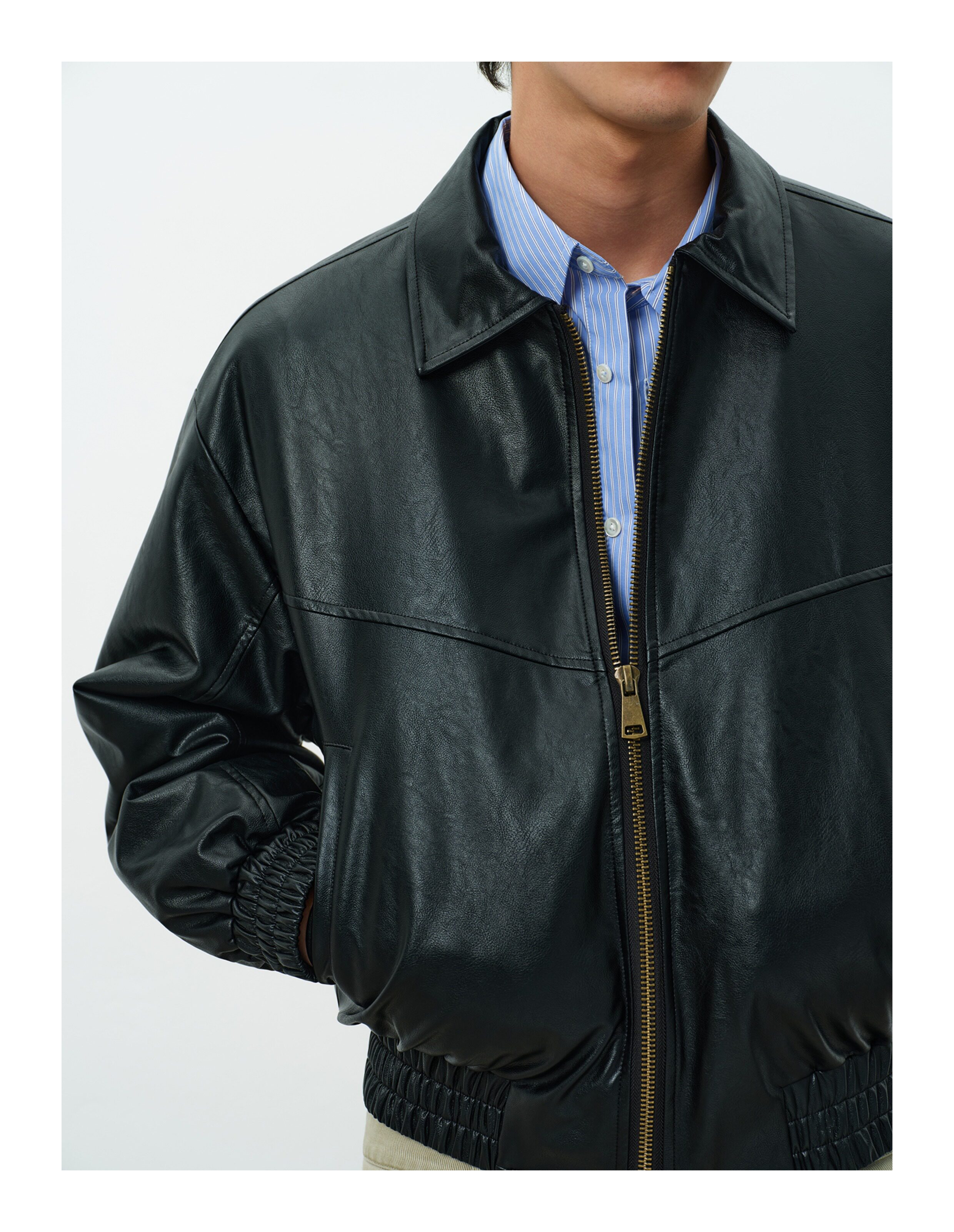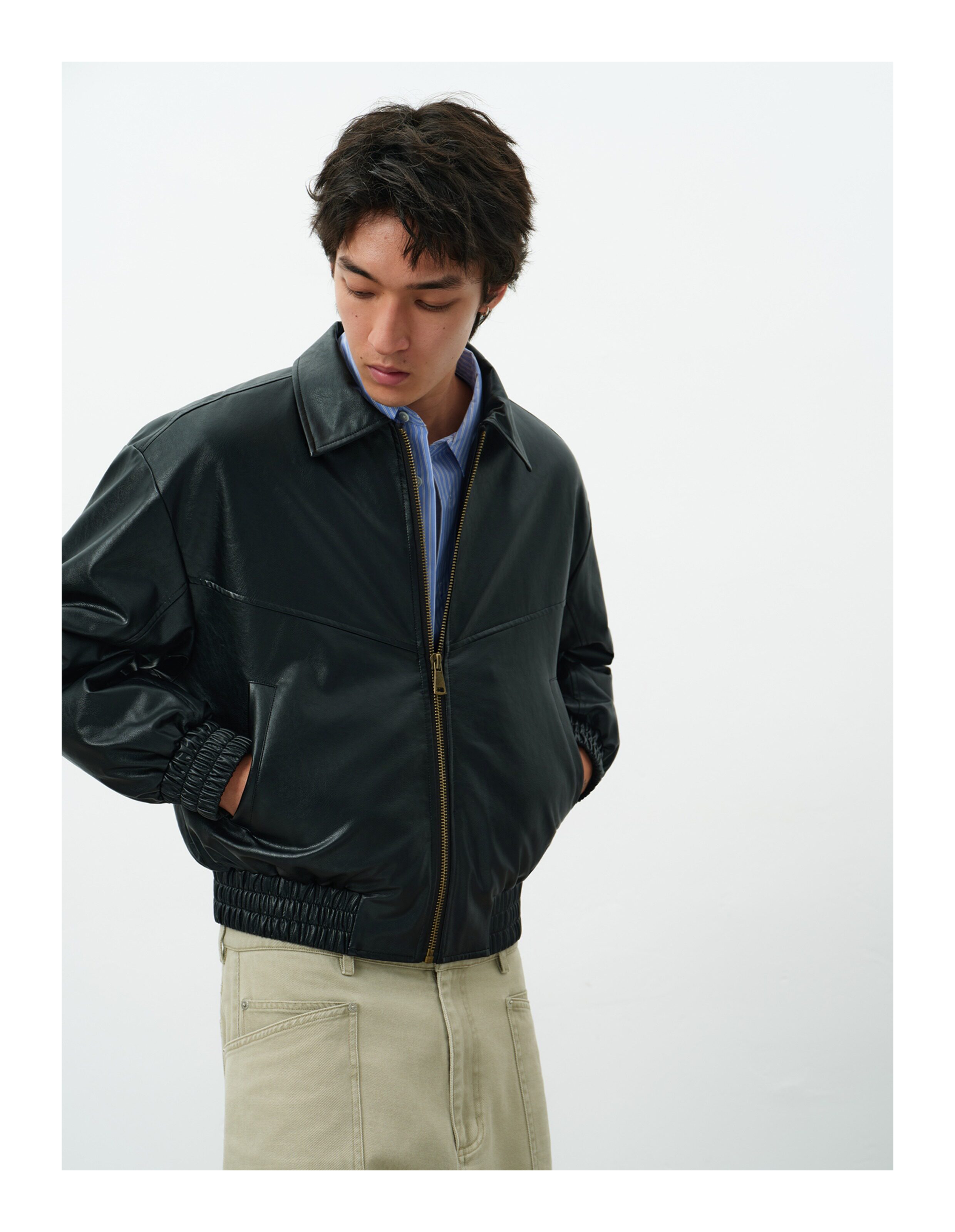 Rawrage|Oil-Waxed Black Vintage Lapel Zipper Biker Leather Jacket with Cuffed Sleeves and Padded Cotton Lining for Warmth