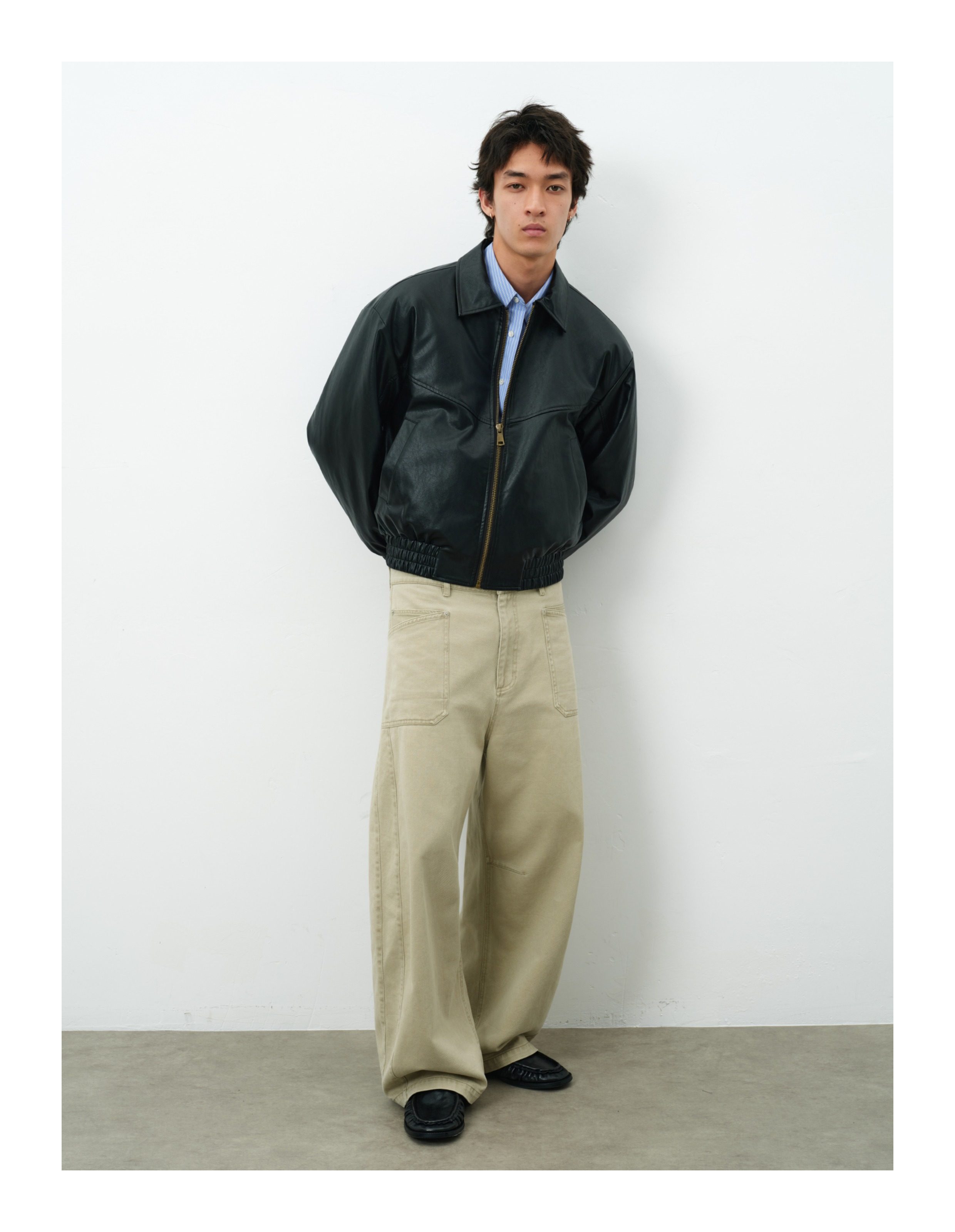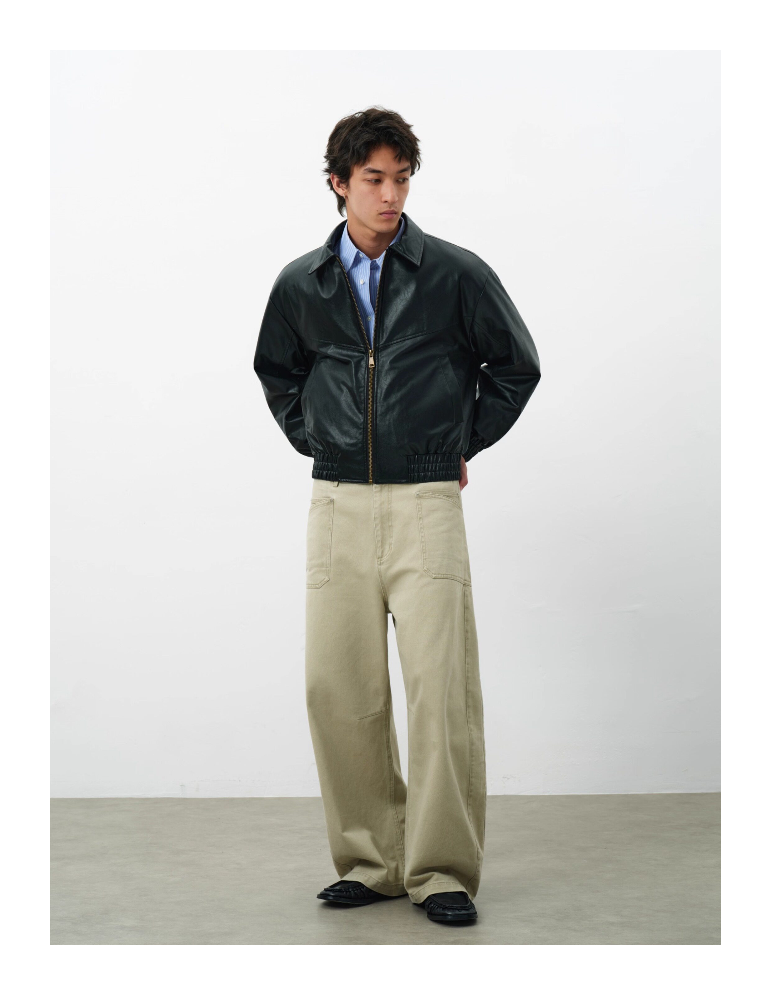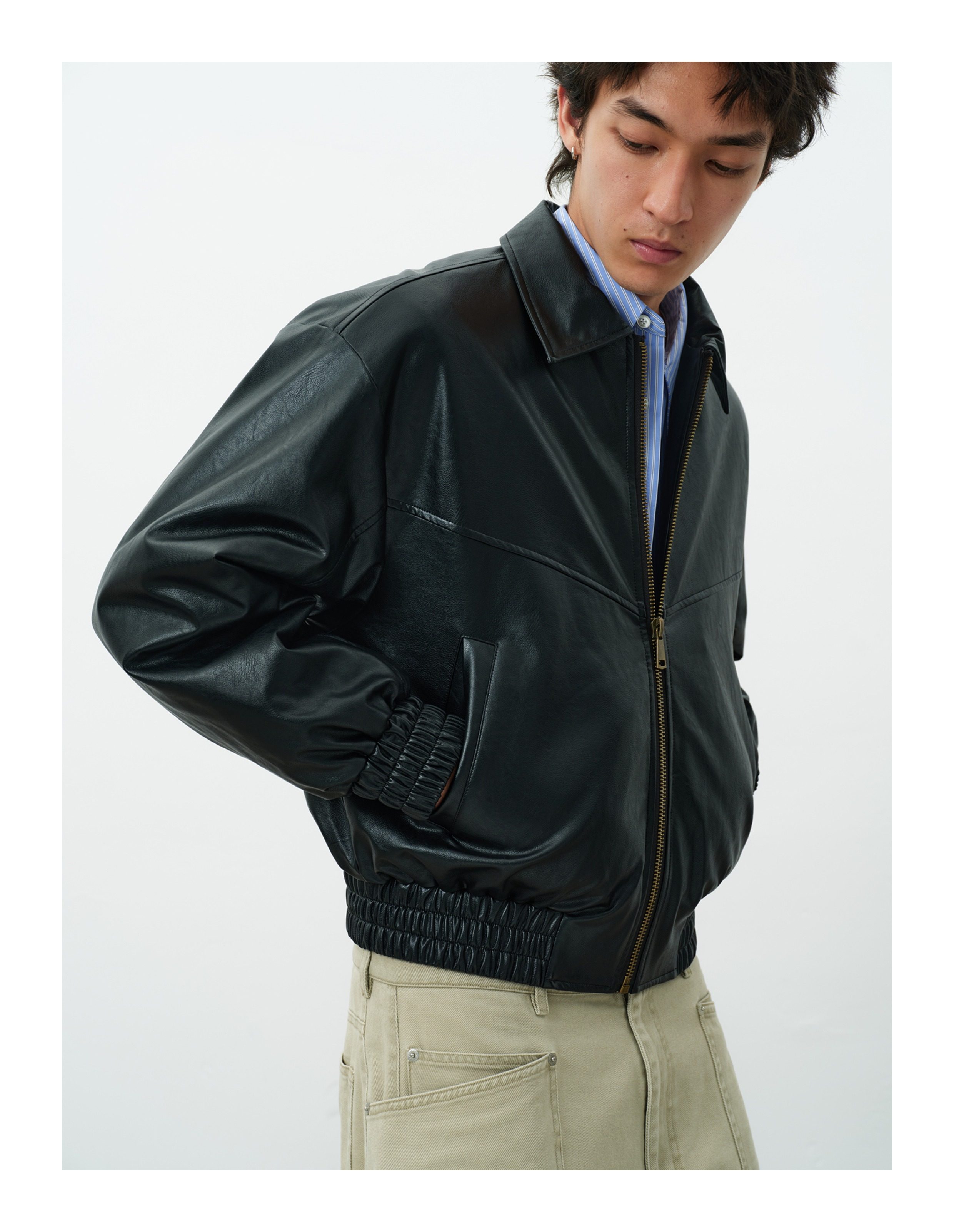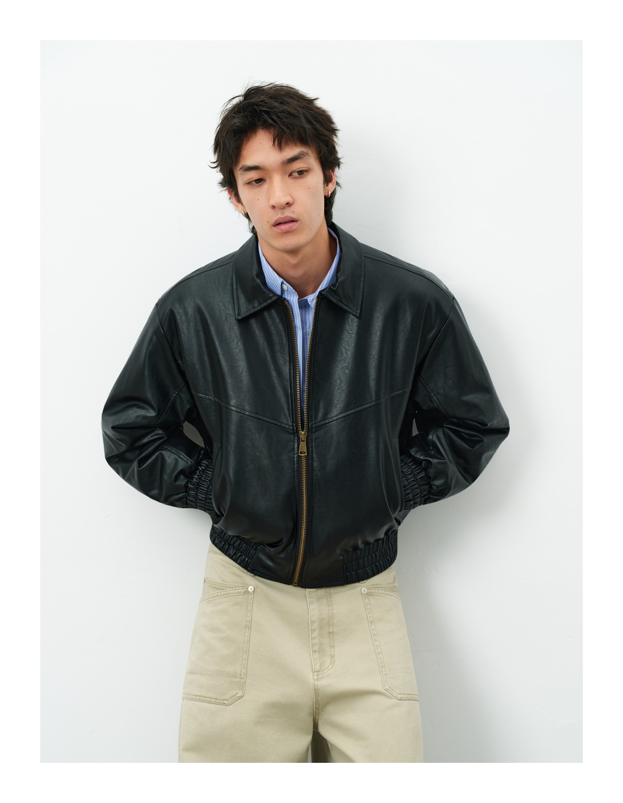 Rawrage|Oil-Waxed Black Vintage Lapel Zipper Biker Leather Jacket with Cuffed Sleeves and Padded Cotton Lining for Warmth