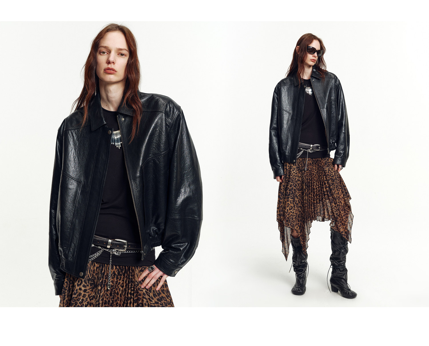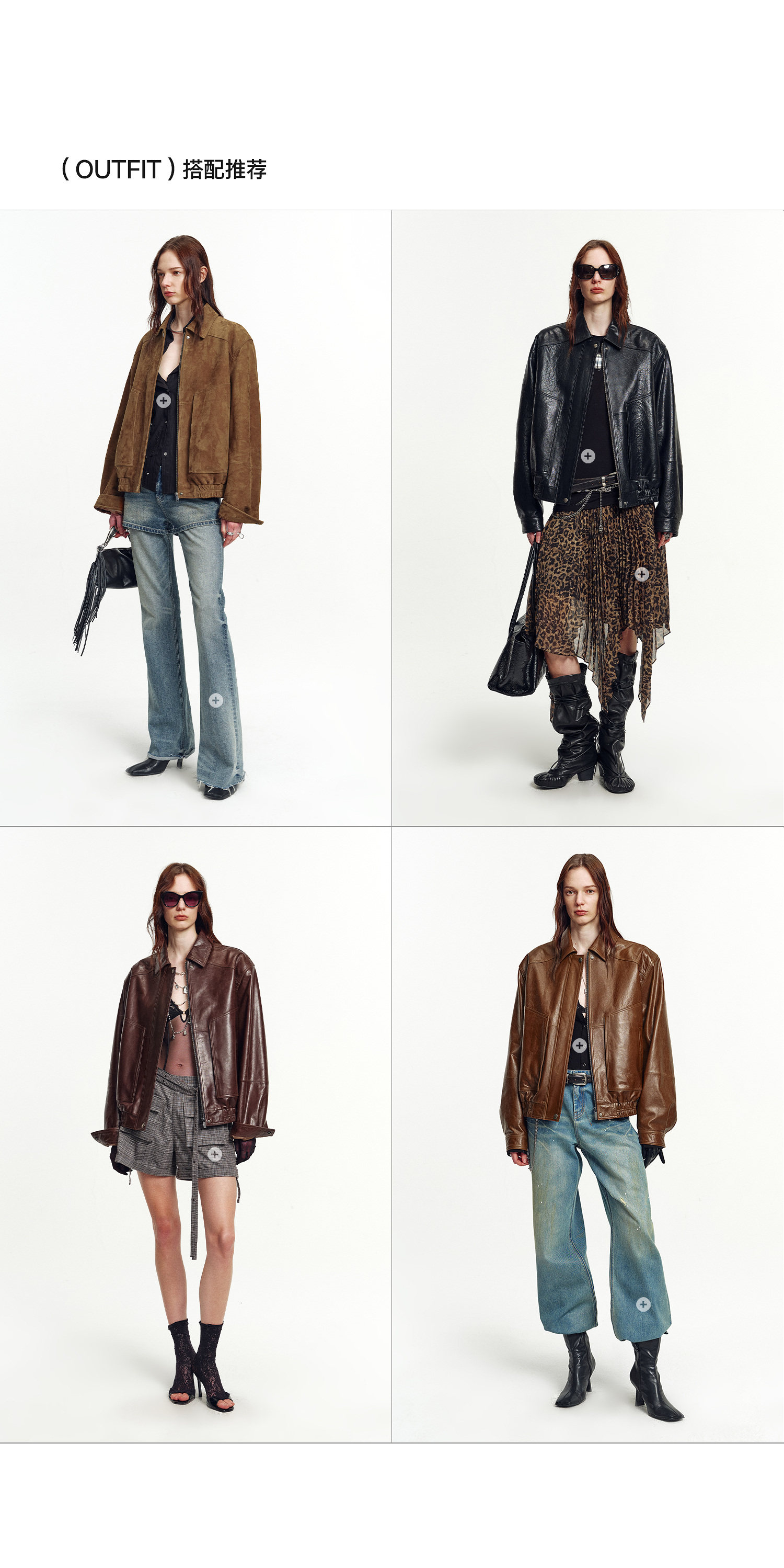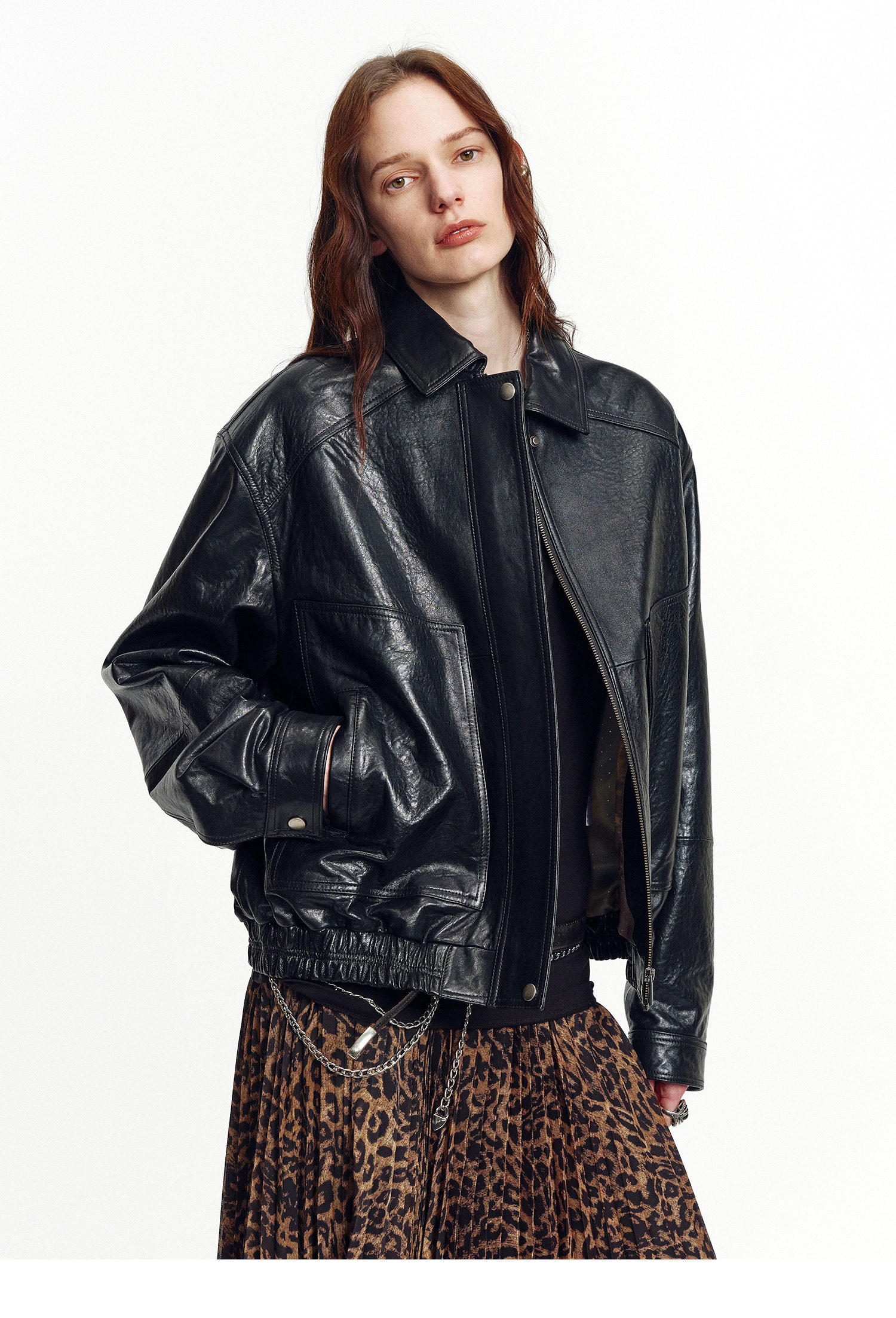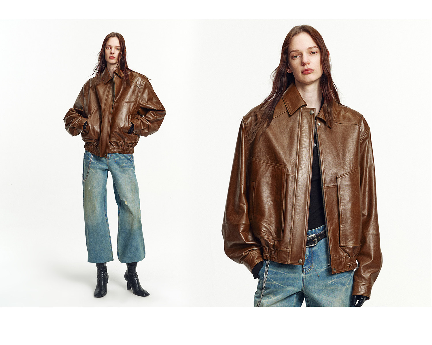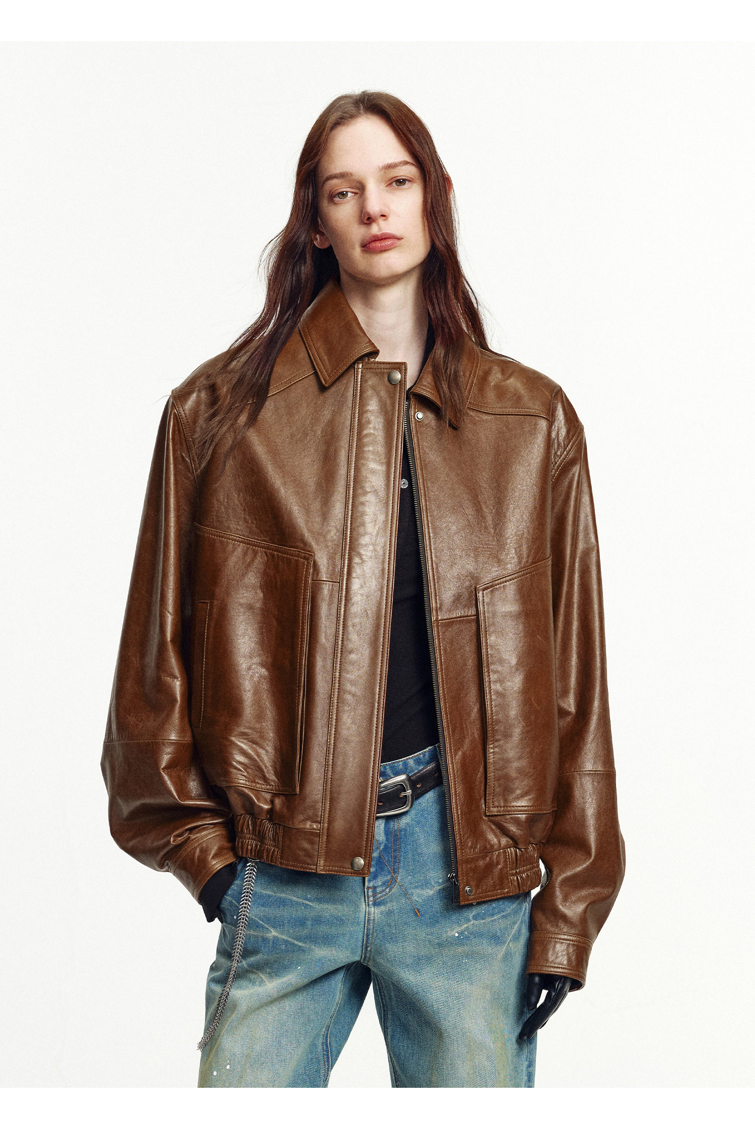 [Same Style as Huang Baobao] Fu Zhi'En Fashion Recorder Imported Waxed Vegetable-Tanned Sheepskin Genuine Leather Jacket
