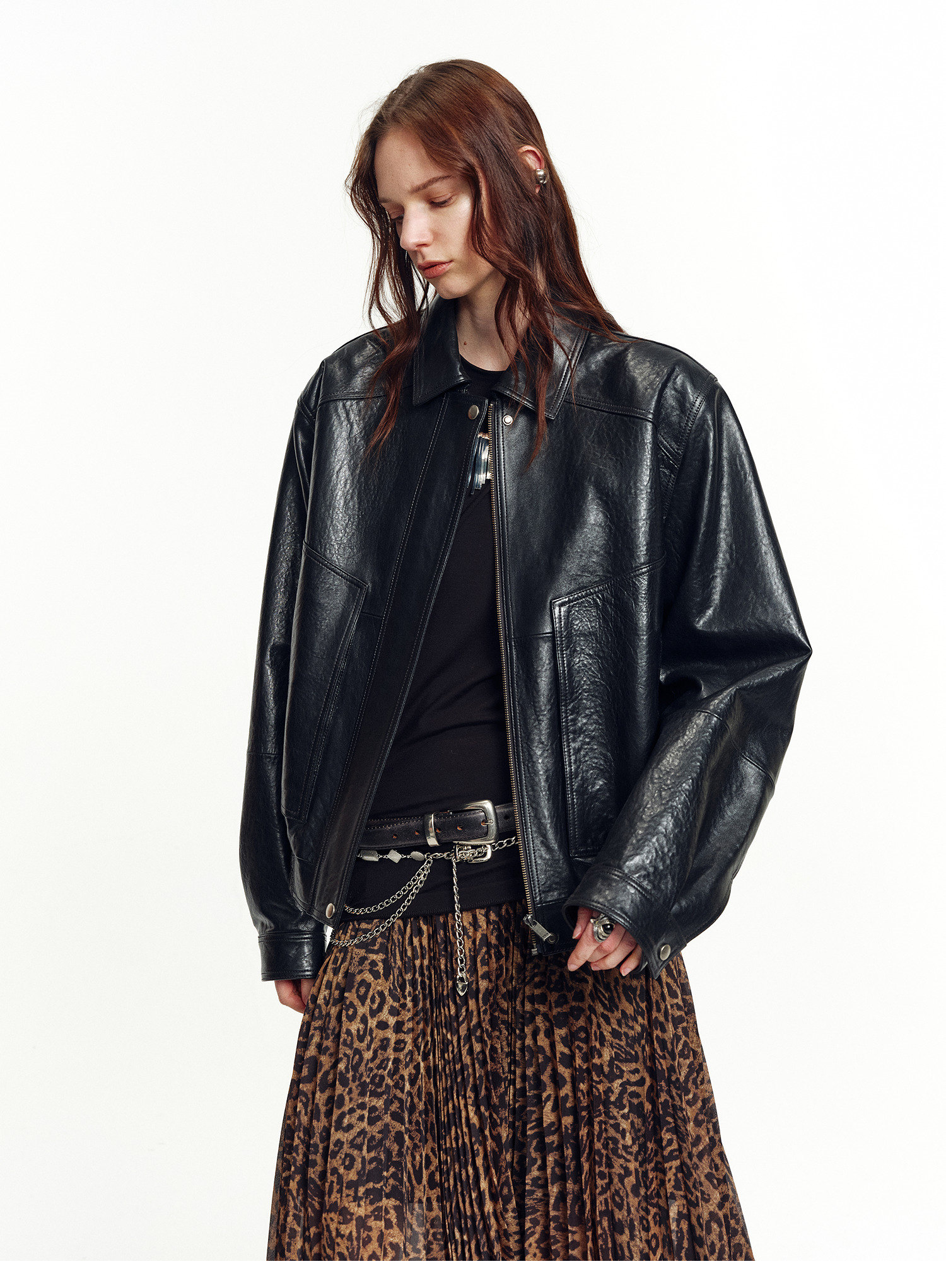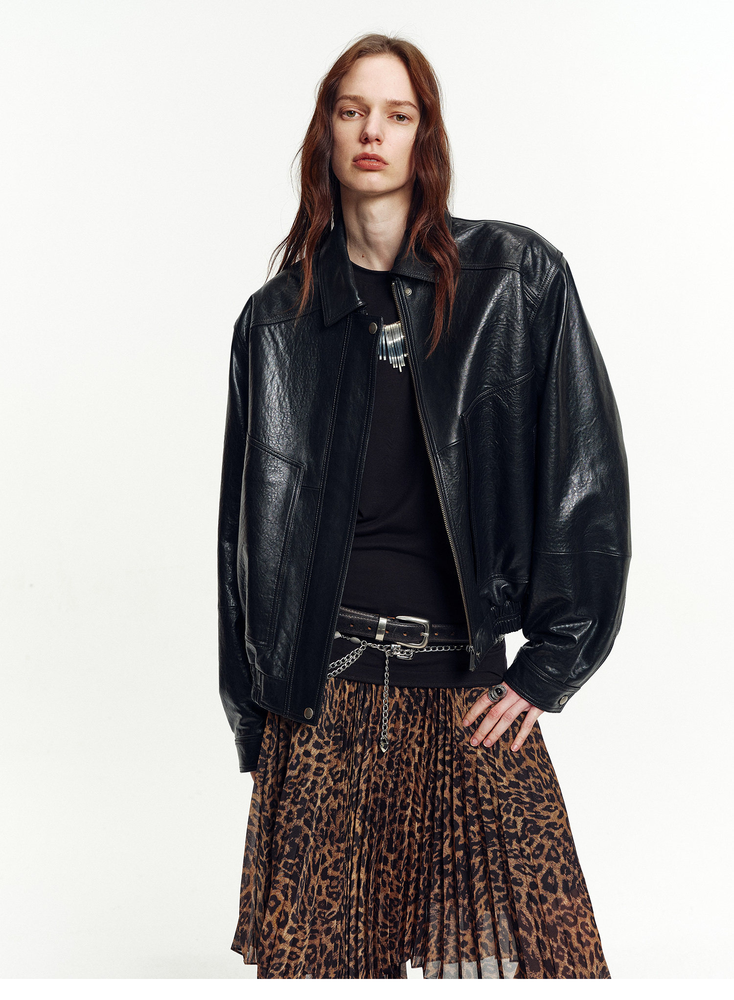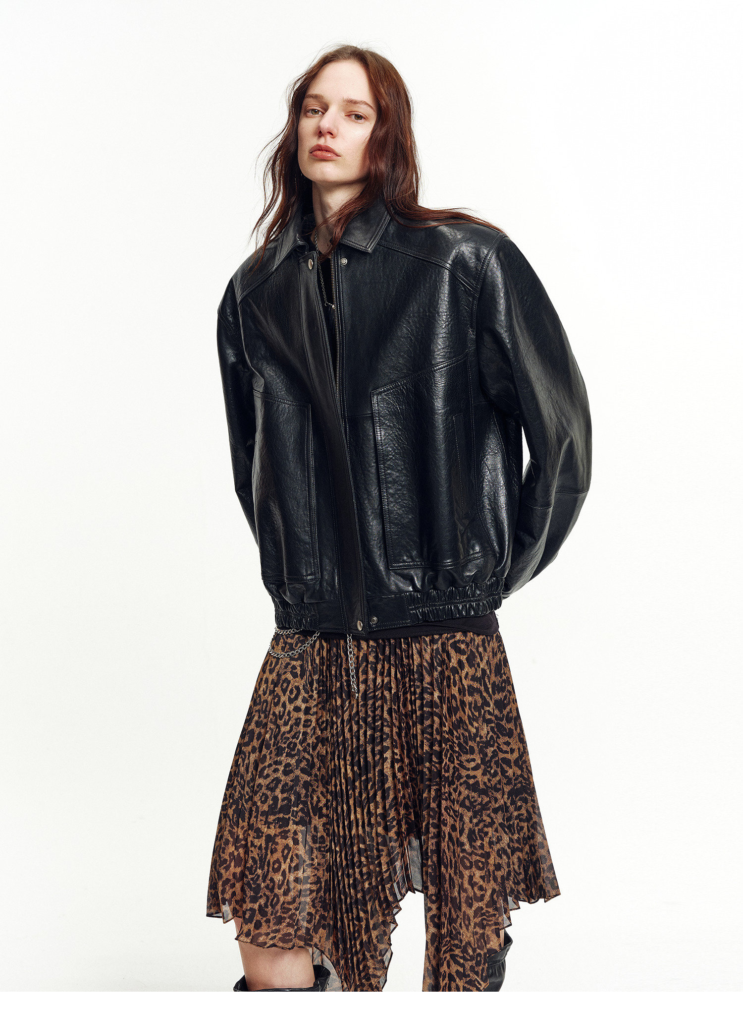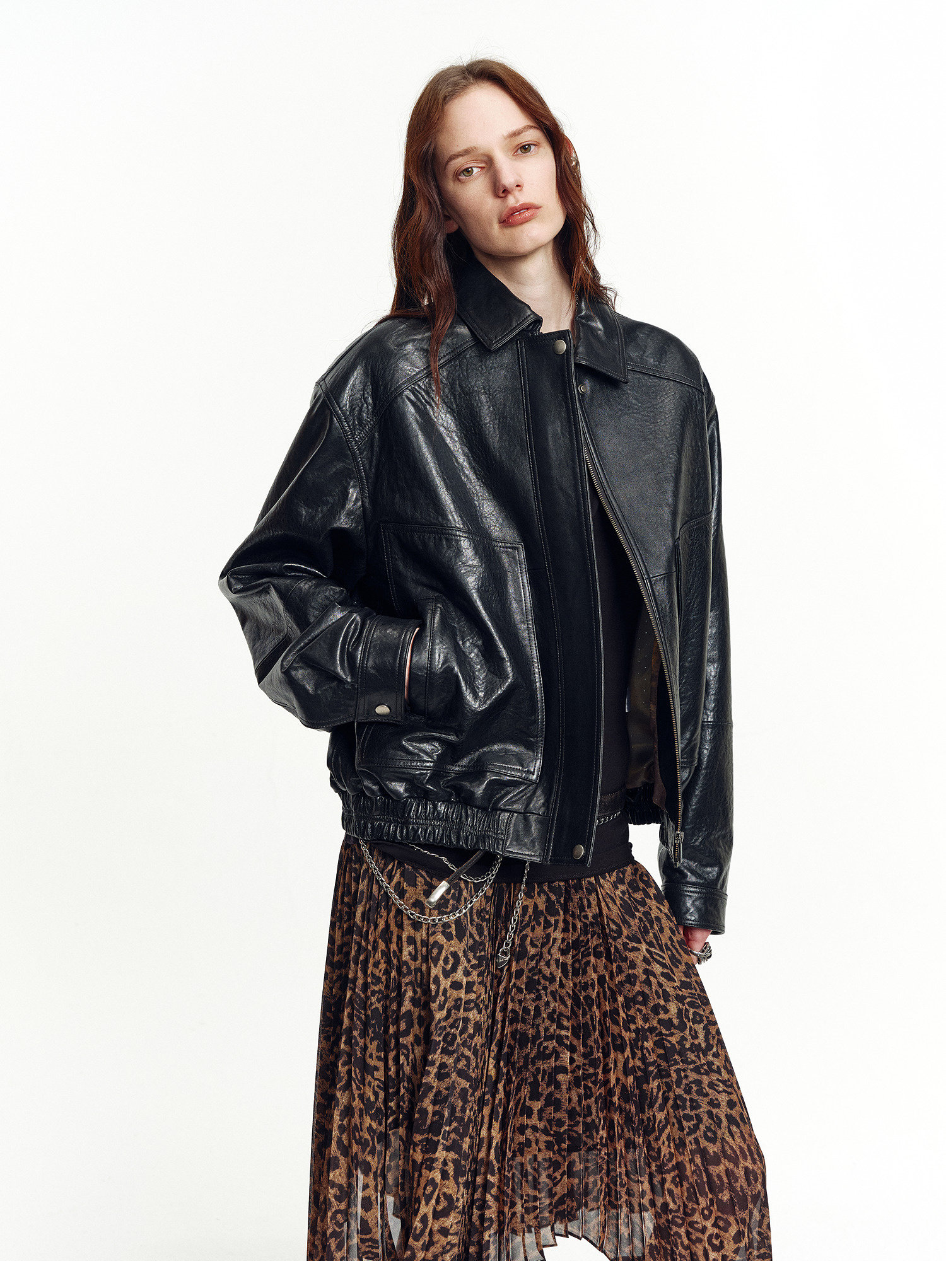 [Same Style as Huang Baobao] Fu Zhi'En Fashion Recorder Imported Waxed Vegetable-Tanned Sheepskin Genuine Leather Jacket