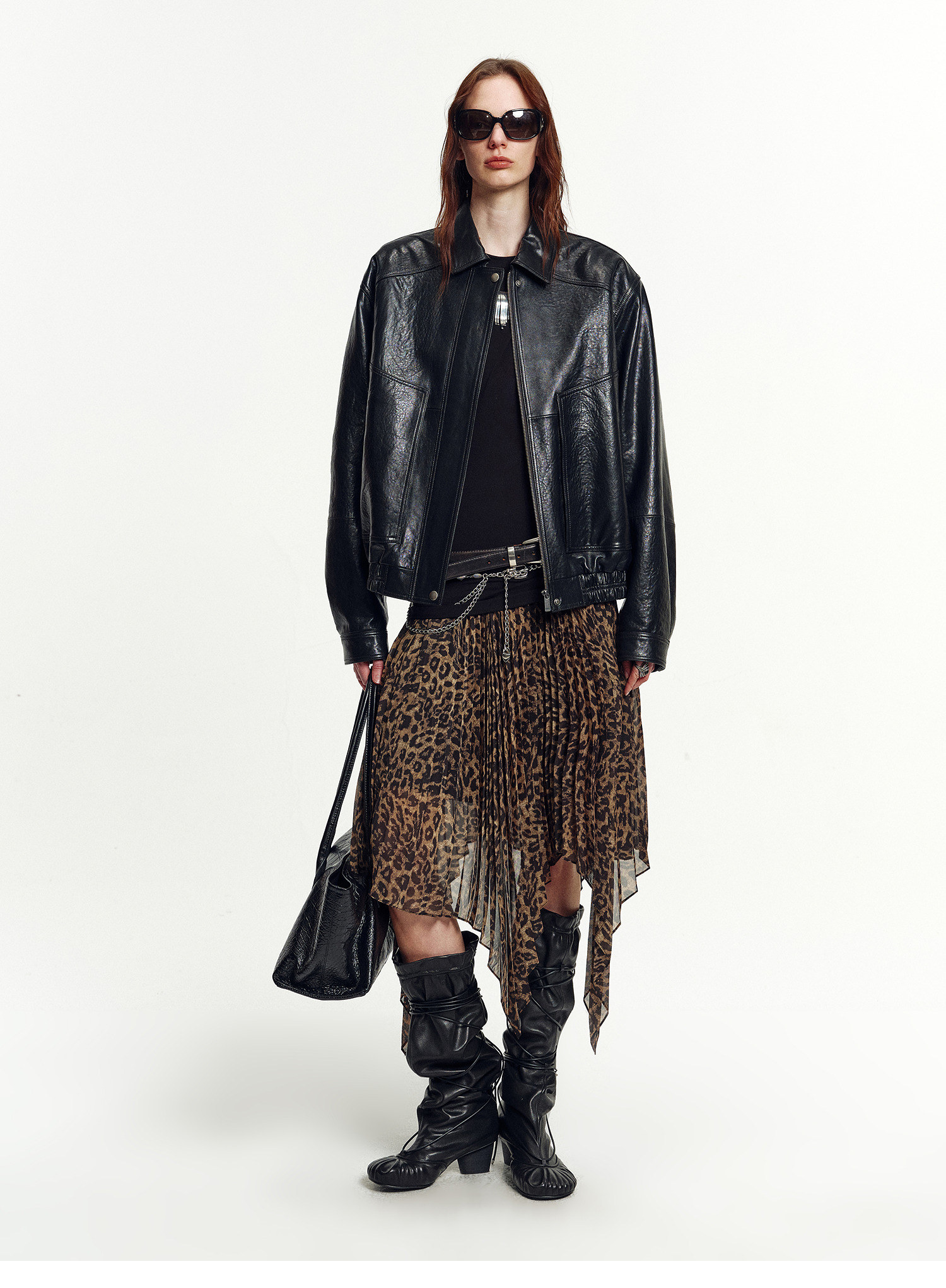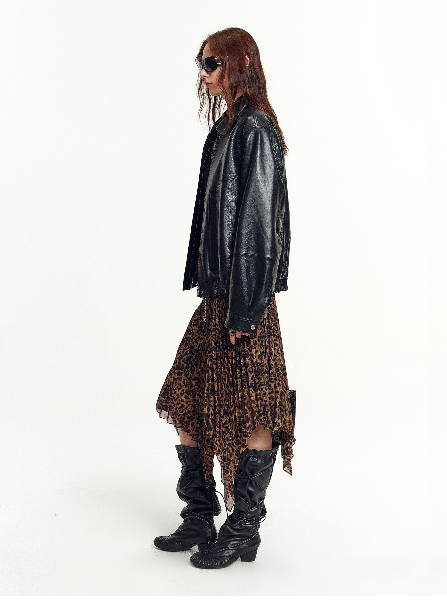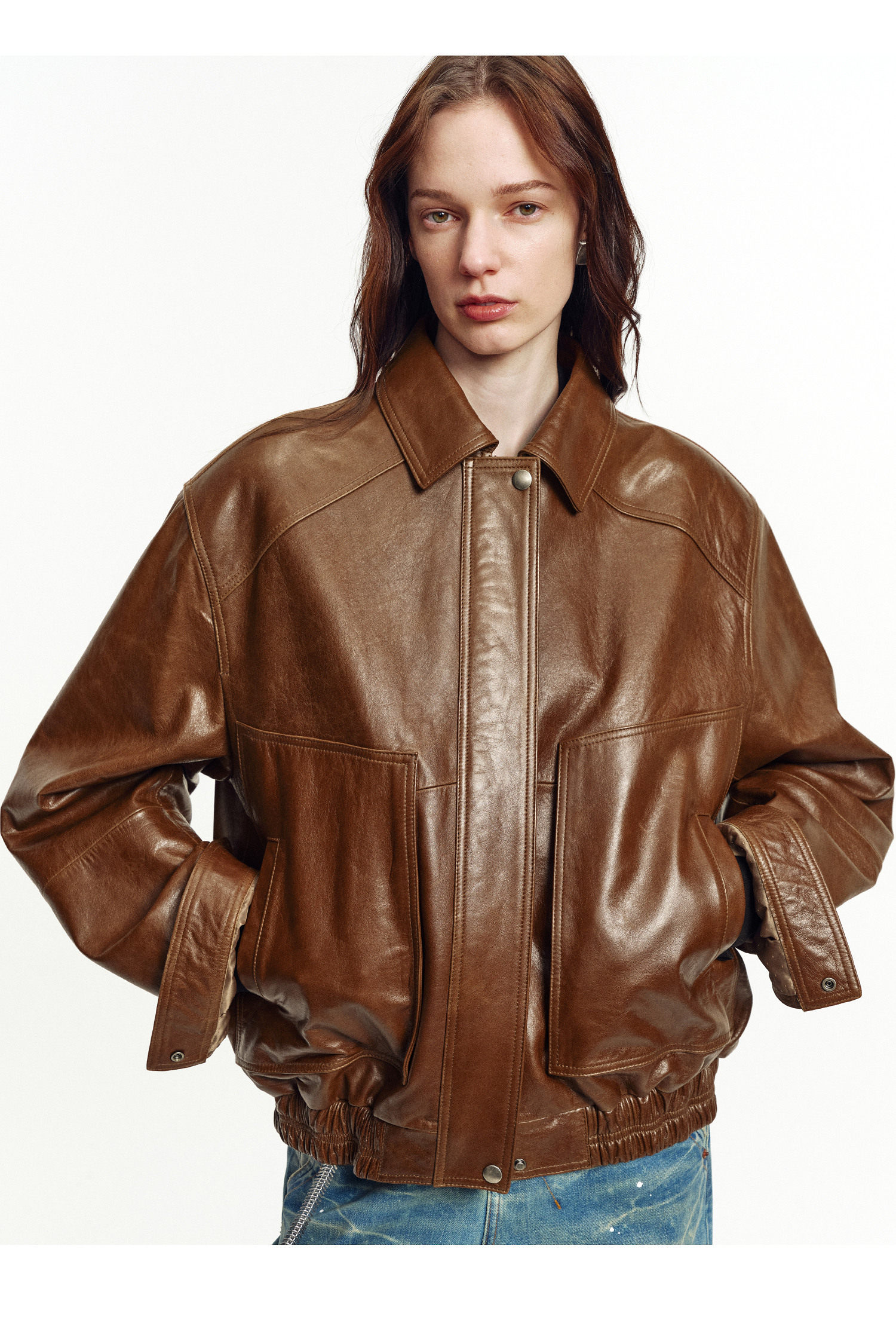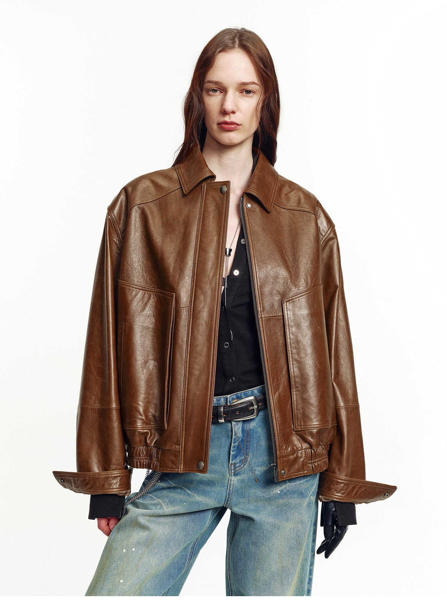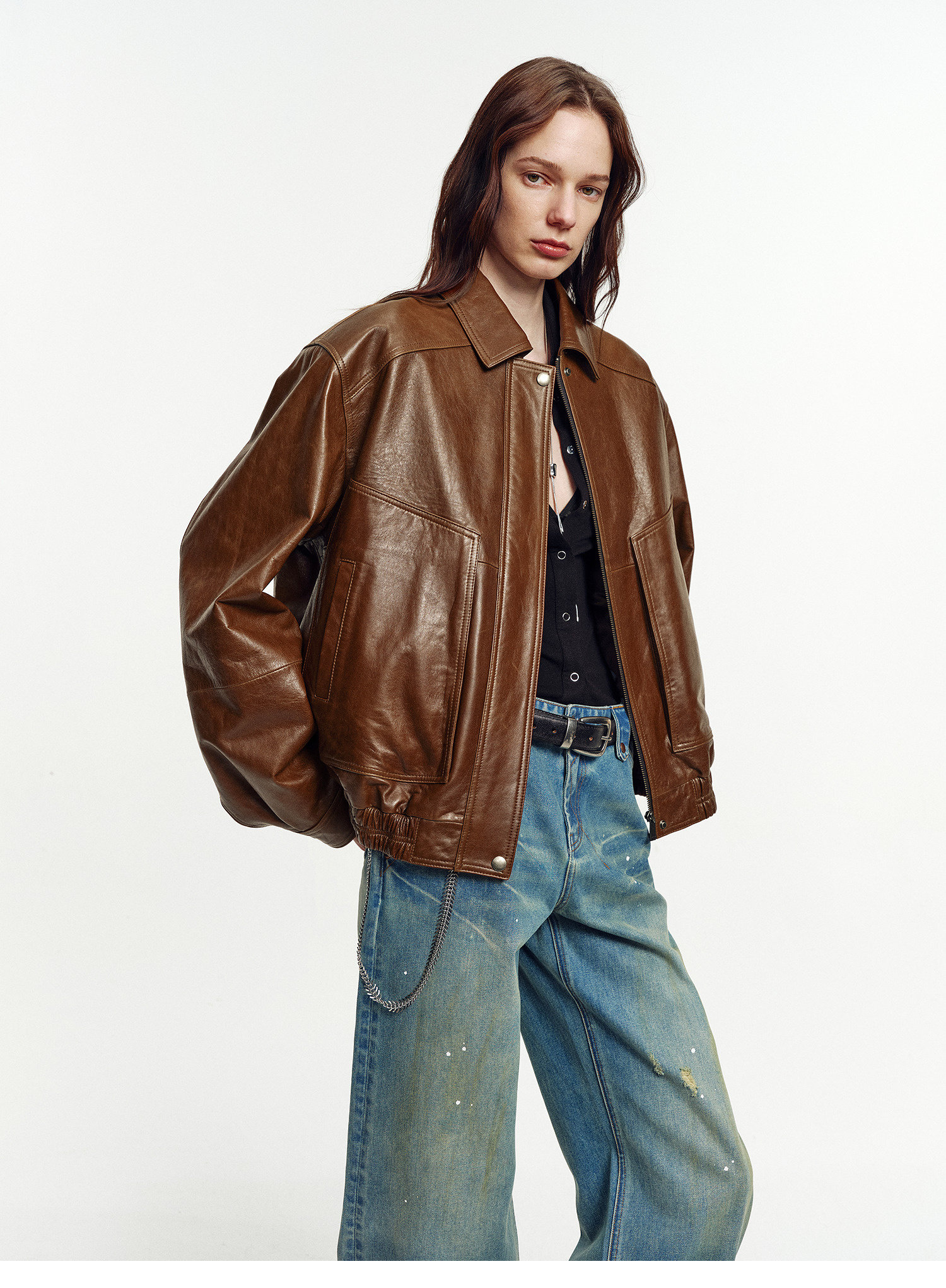 [Same Style as Huang Baobao] Fu Zhi'En Fashion Recorder Imported Waxed Vegetable-Tanned Sheepskin Genuine Leather Jacket