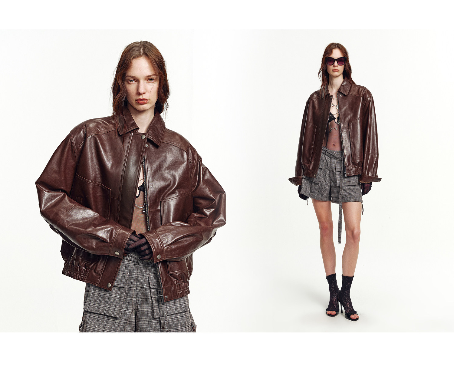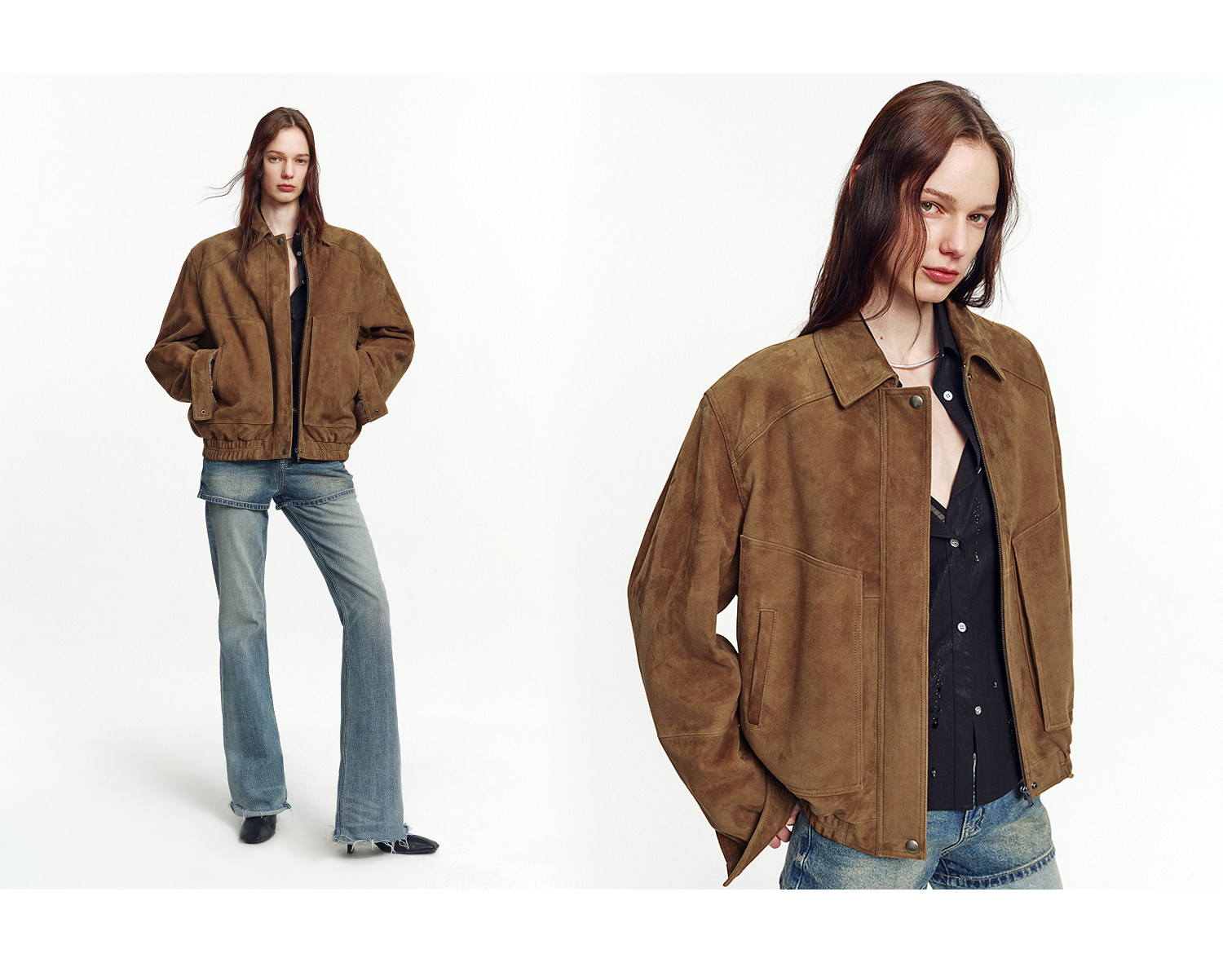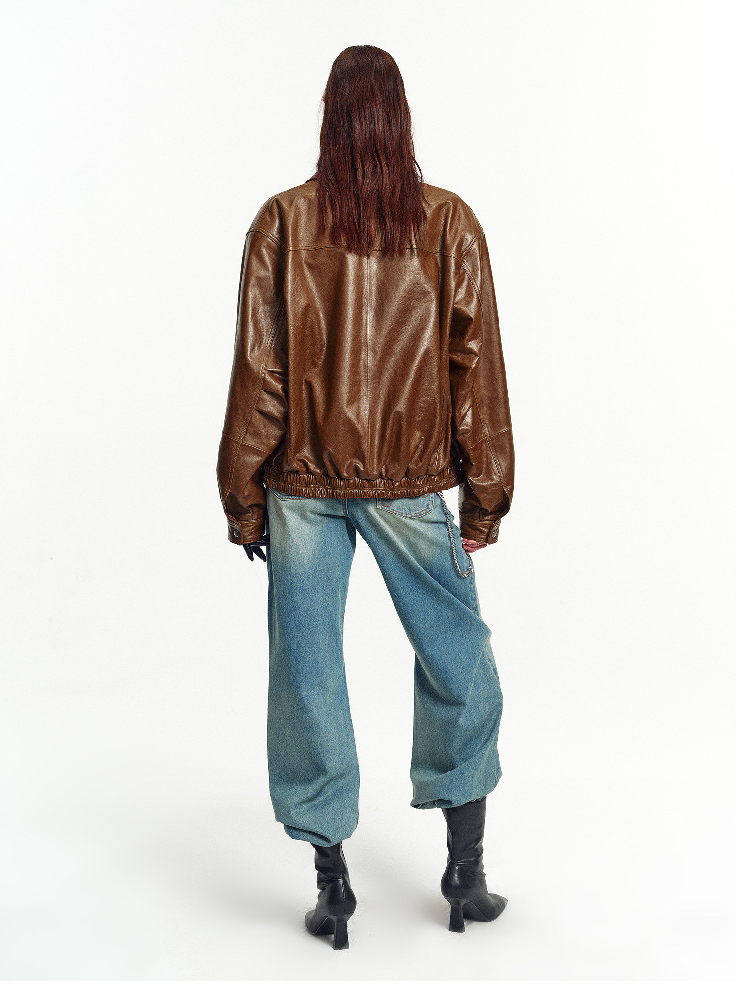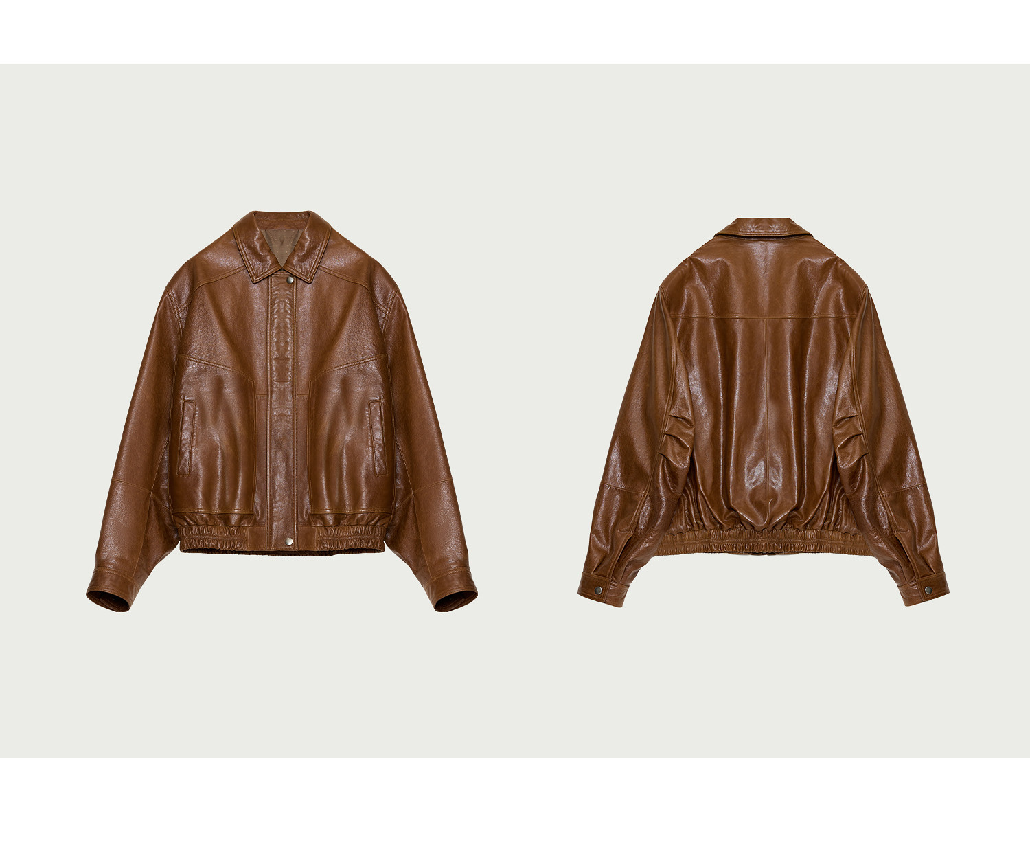 [Same Style as Huang Baobao] Fu Zhi'En Fashion Recorder Imported Waxed Vegetable-Tanned Sheepskin Genuine Leather Jacket